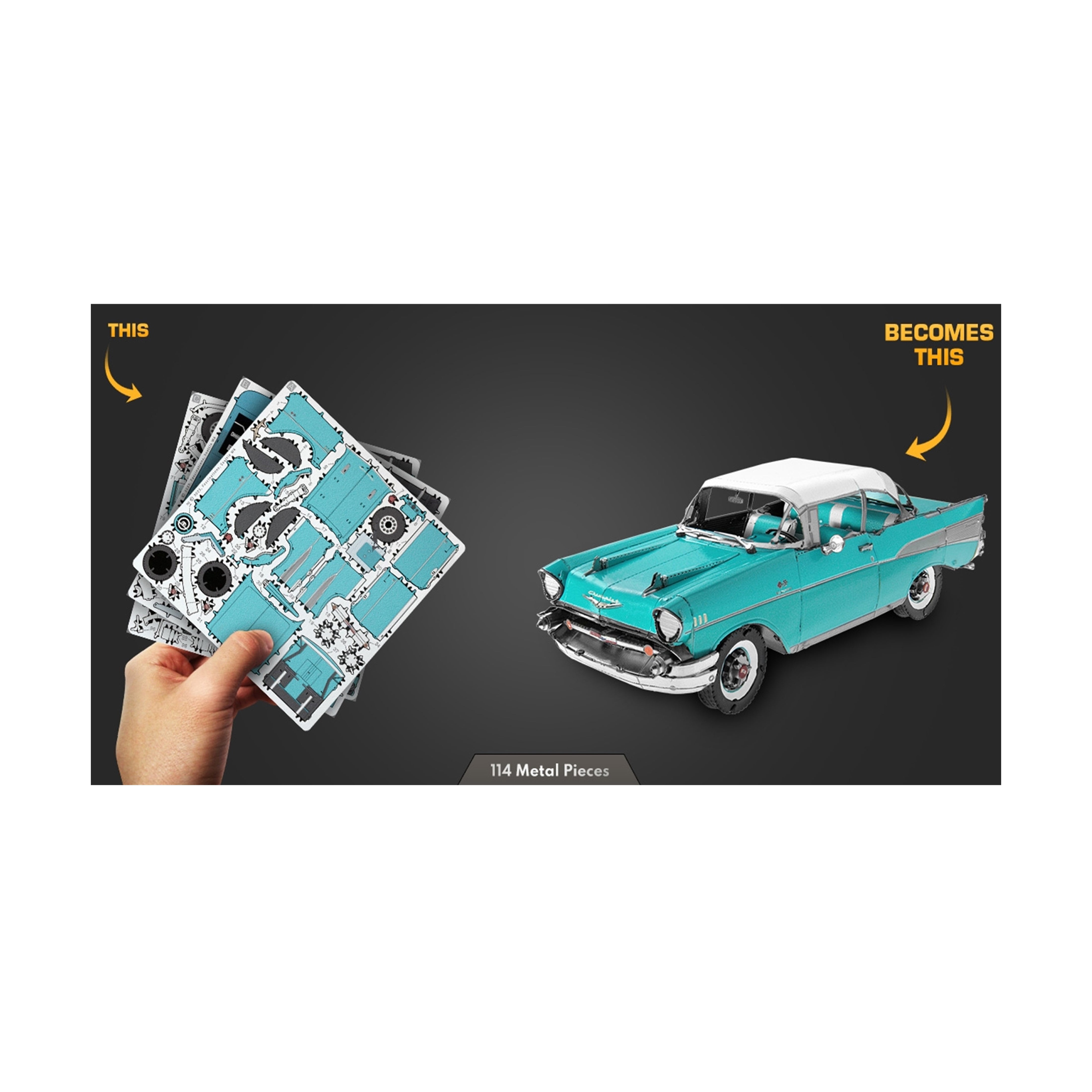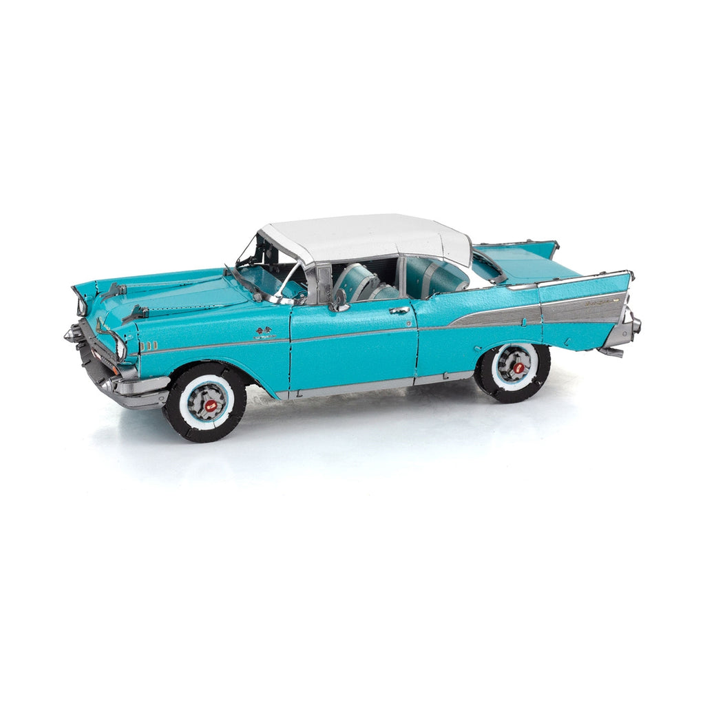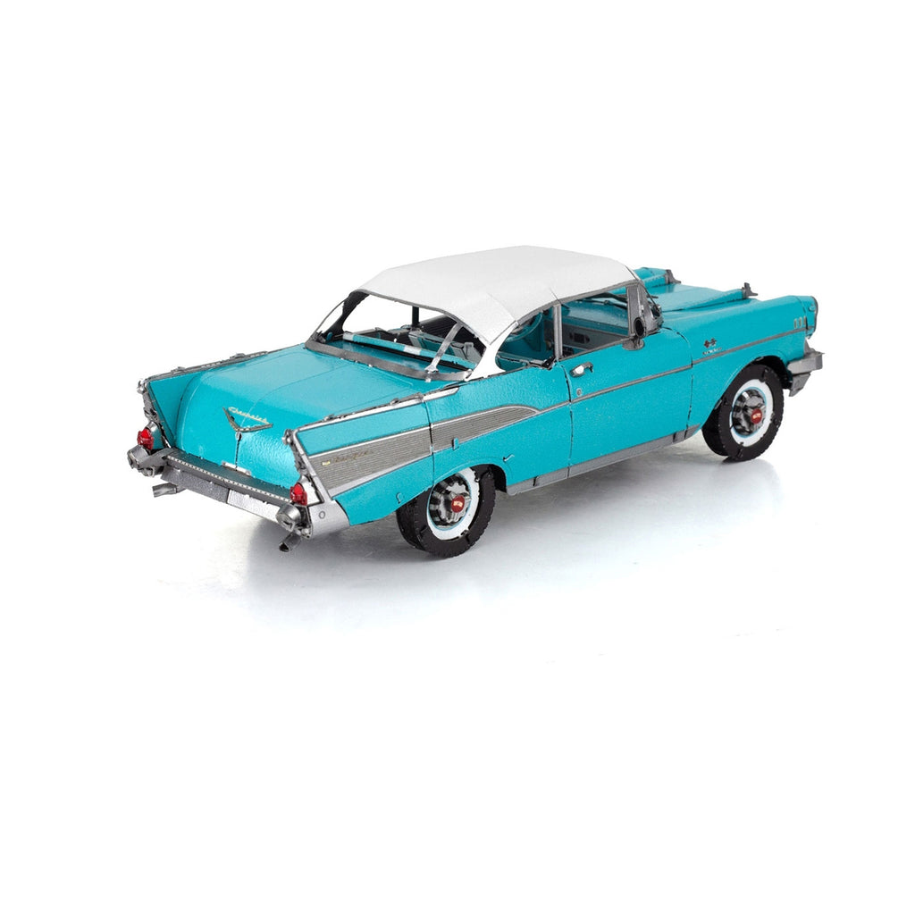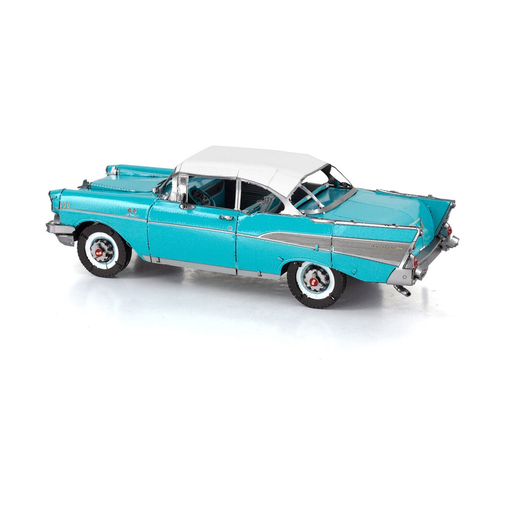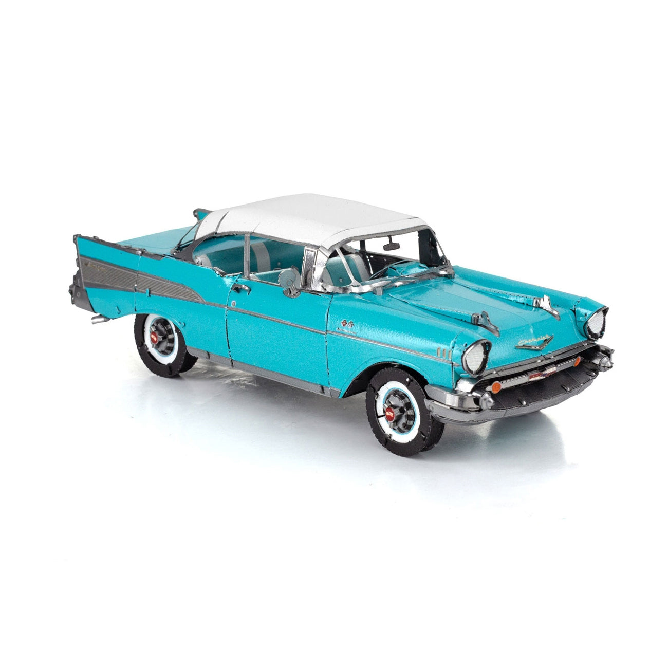 Perhaps no vehicle represents Americana more than the classic '57 Chevy. This iconic automobile is at the heart of many American stories and has been memorialized in song, motion pictures, and television. Chevrolet designed the 1957 Bel Air as a luxury trim, featuring an optional Ramjet fuel injection V8, prominent vertical tail fins, and a chrome front bumper with stylish torpedo accents under the headlamps. The new bold look and unique features such as signal seeking radio that was usually reserved for highly expensive luxury cars, made this model's popularity soar.
