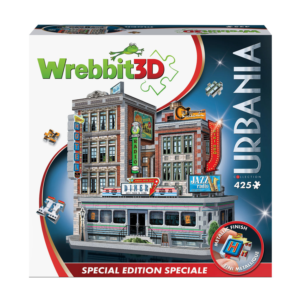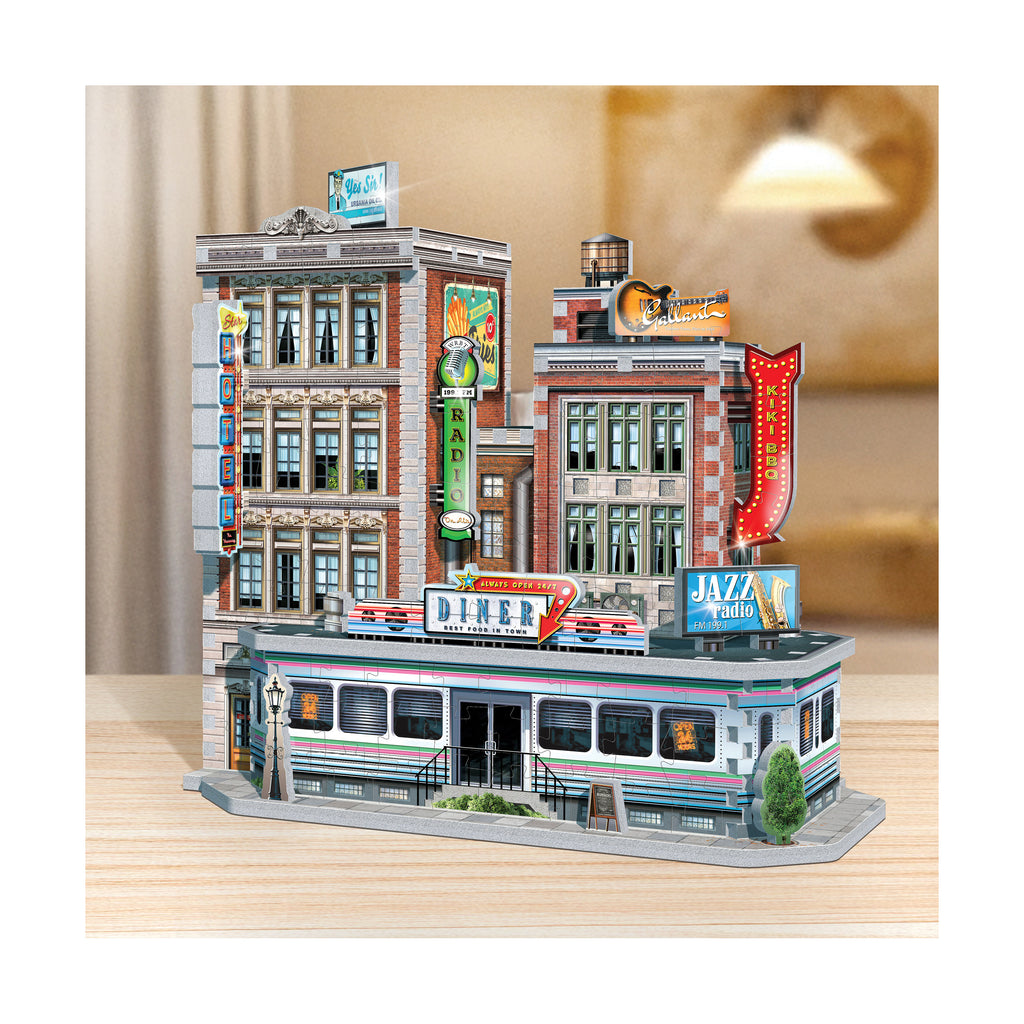 Serve up authentic Americana with the 1950s Diner Special Edition 3D jigsaw puzzle, a 425-piece retro showpiece finished with metallic accents on chrome trims and neon-inspired signage.