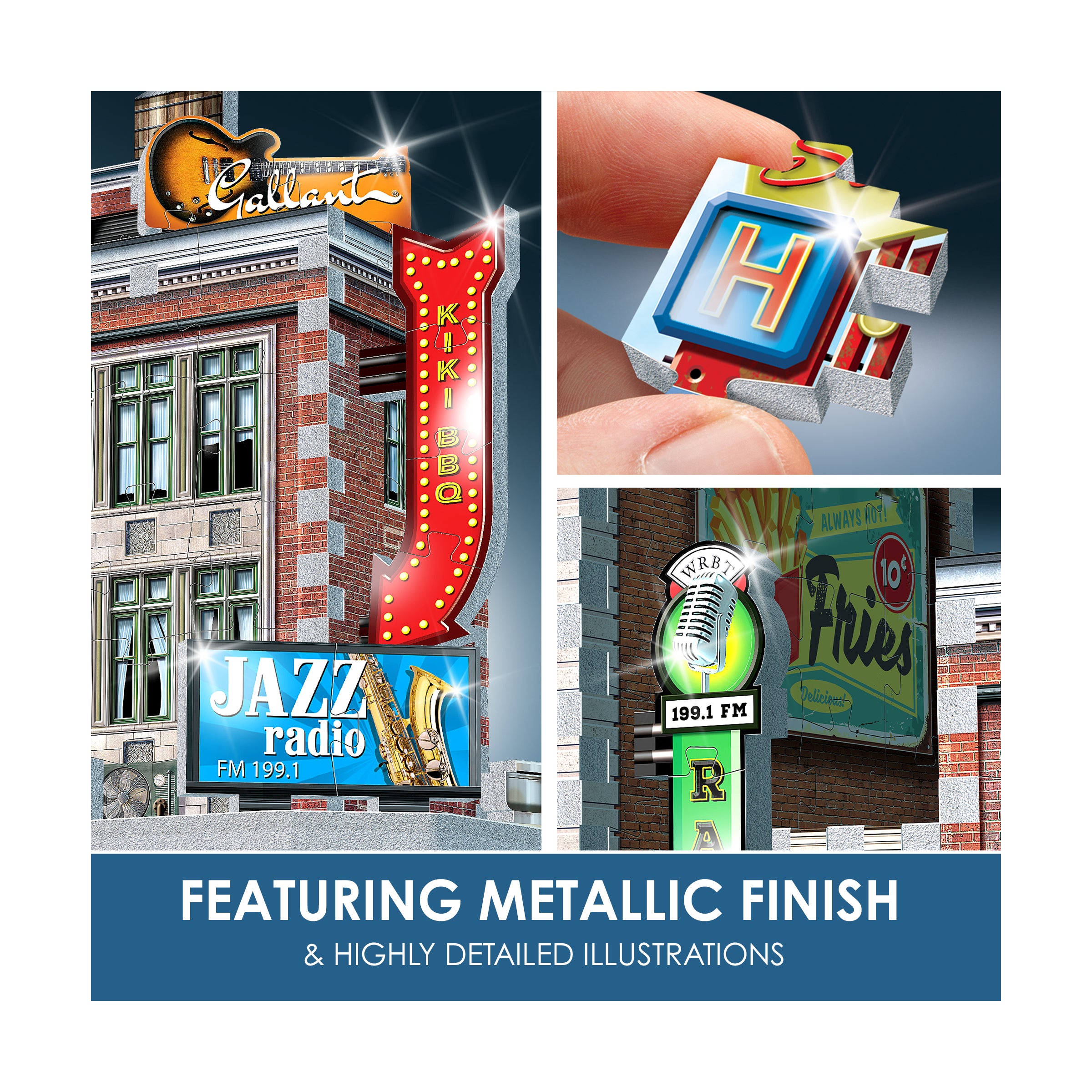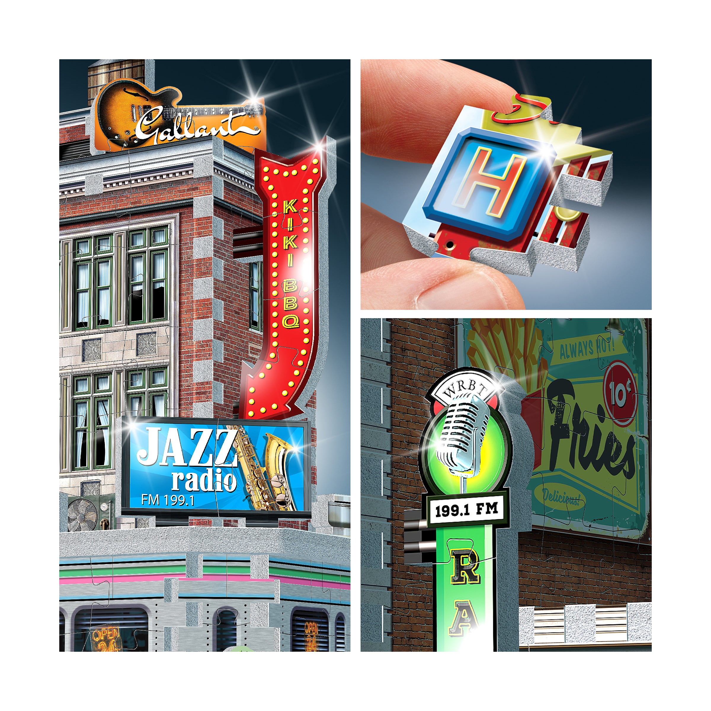 Perfect for nostalgia lovers and hobbyists looking for top 3D puzzles for adults, this model is packed with period charm. Assemble chrome-striped railcar panels, a classic diner marquee, and billboard ads for Jazz Radio, Kiki's BBQ, Gallant Guitars, and the glowing Star Hotel. Each precision-cut piece draws you deeper into a hands-on, immersive build.