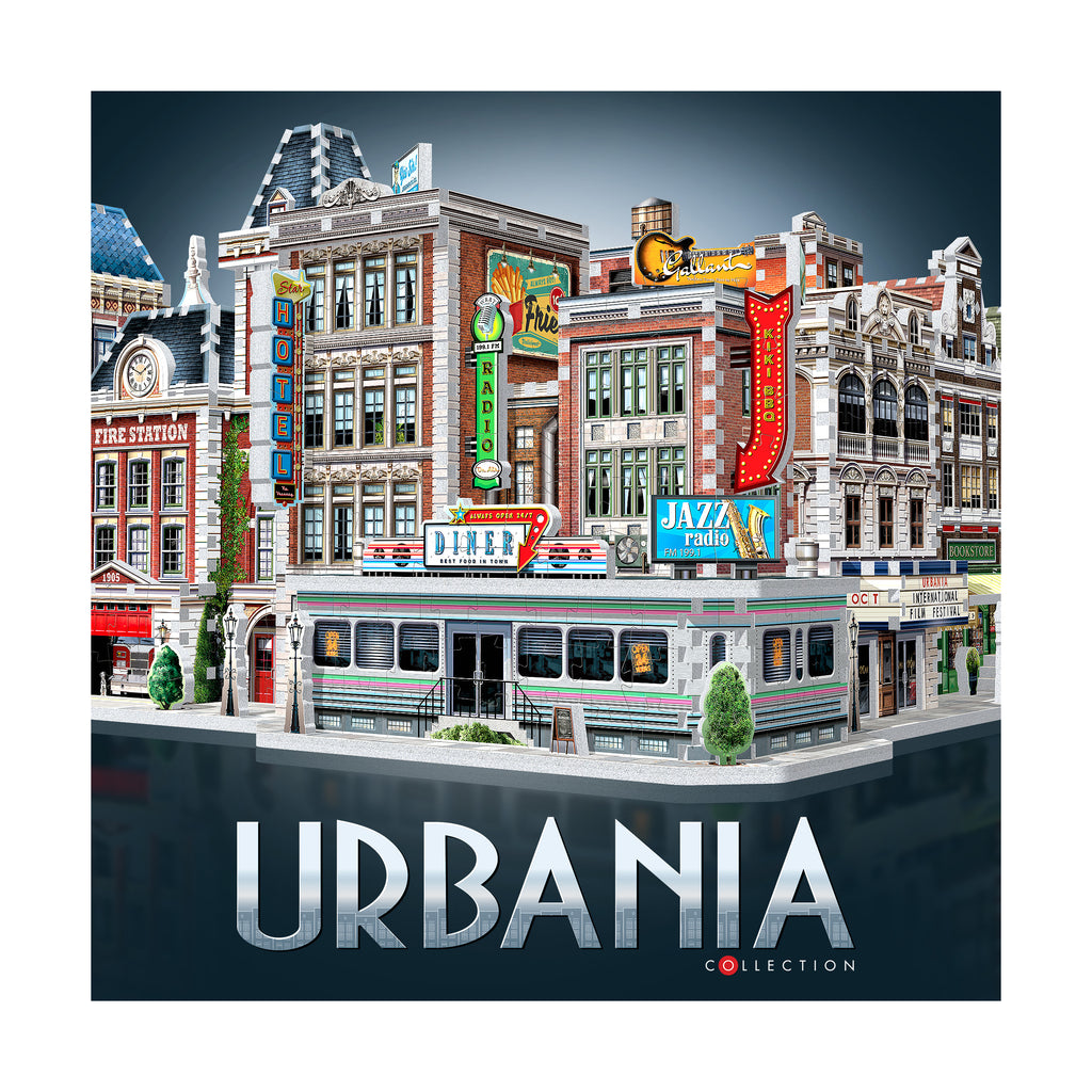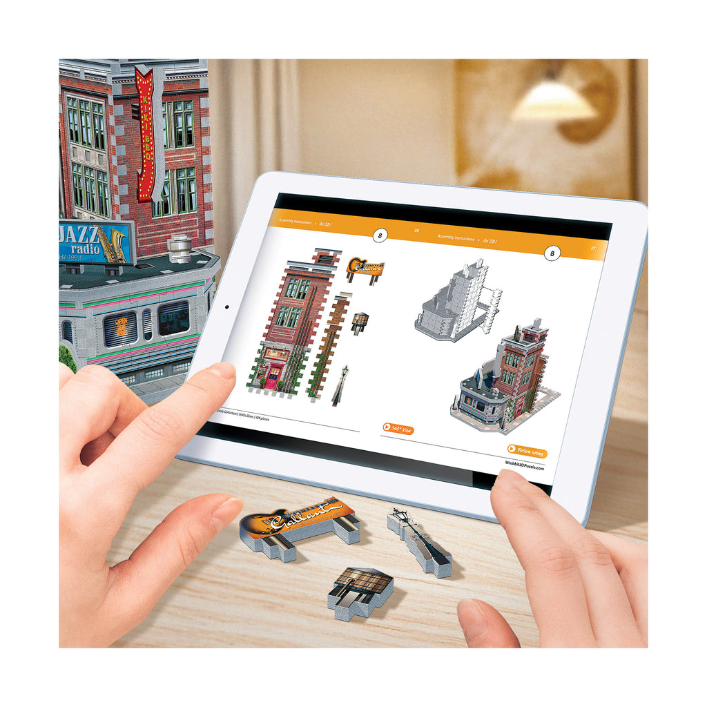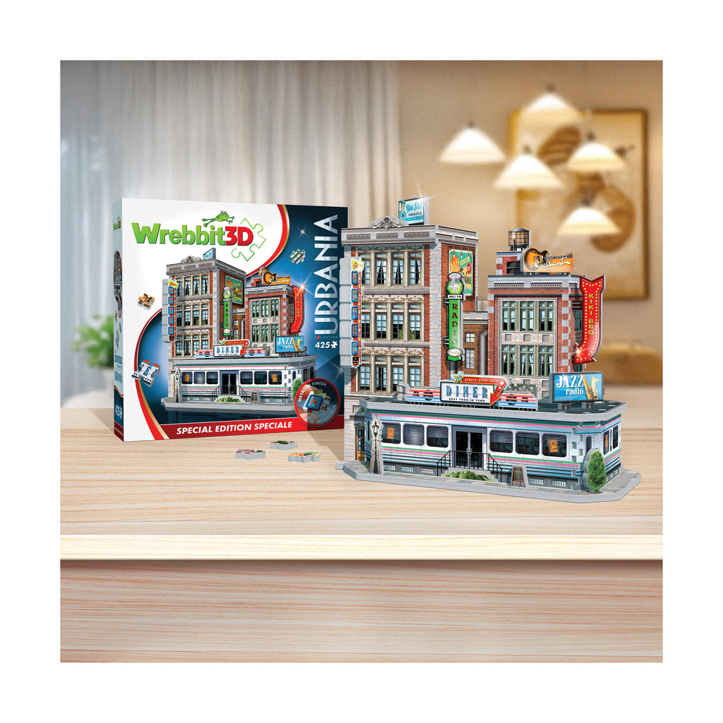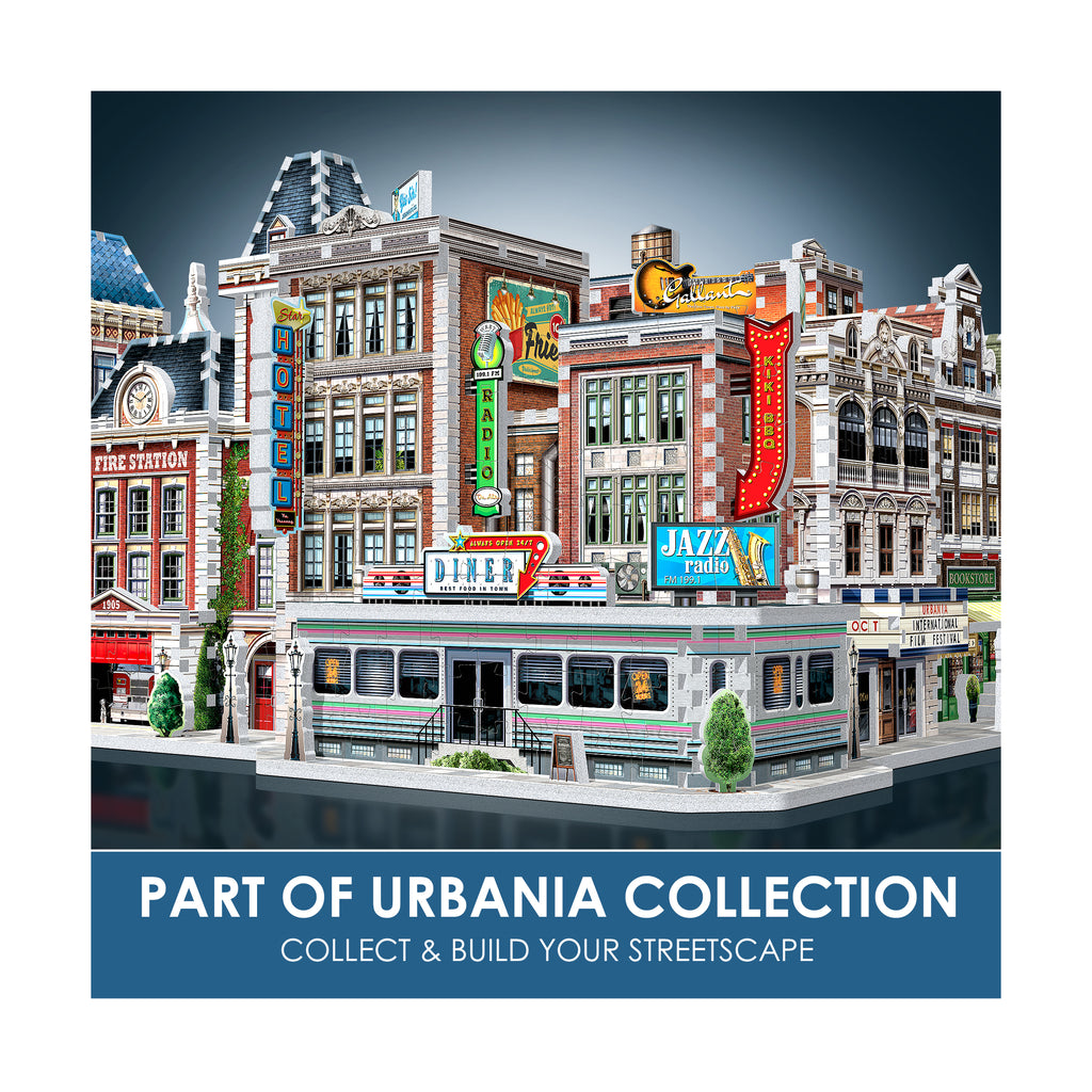 Display the diner on its own as eye-catching vintage decor, or connect it with the modular Urbania Collection - the Cinema, Hotel, Cafe, and Fire Station - to create a customizable downtown streetscape. However you show it off, the 1950s Diner 3D jigsaw puzzle delivers a rewarding challenge and a timeless slice of rock and roll history in one collectible kit.