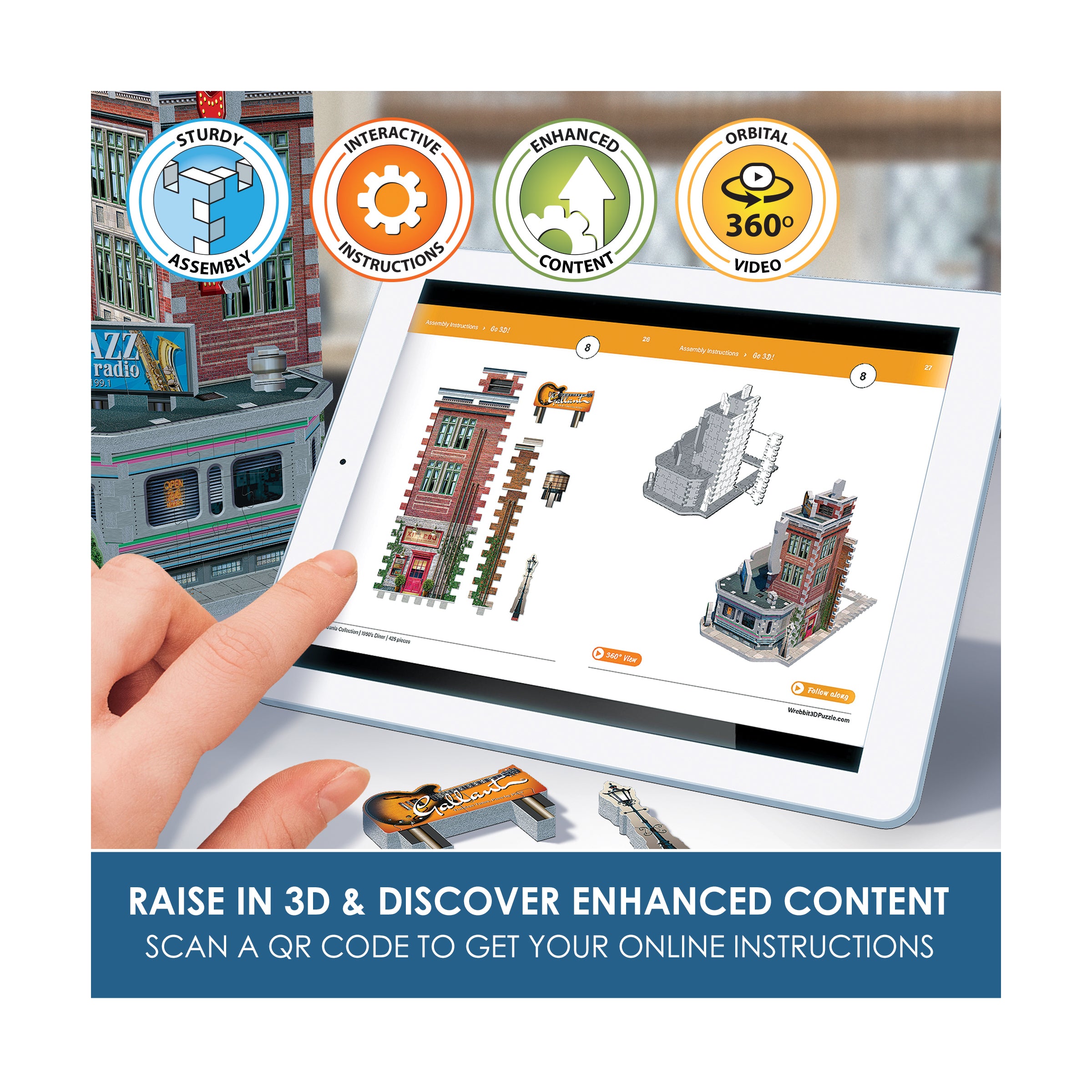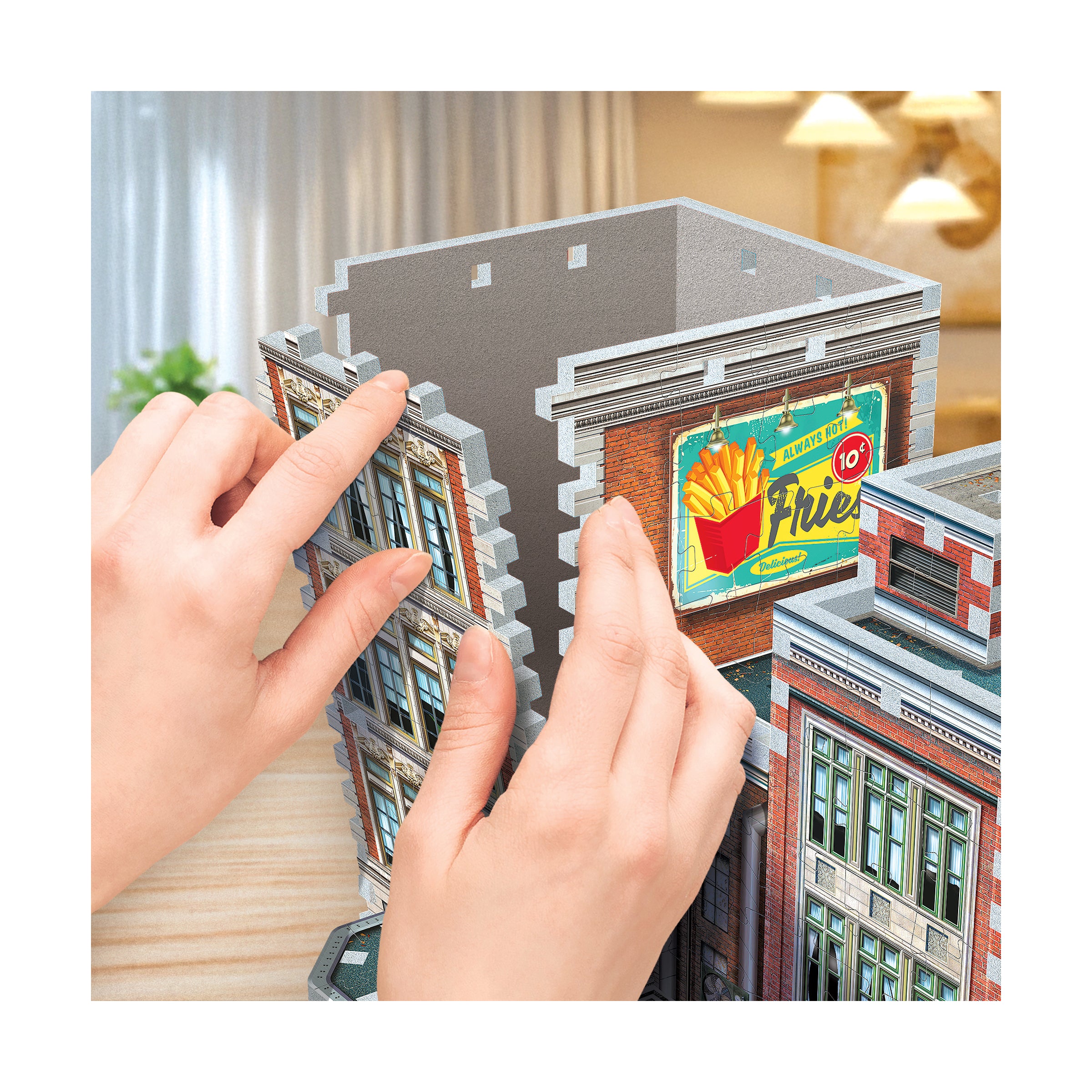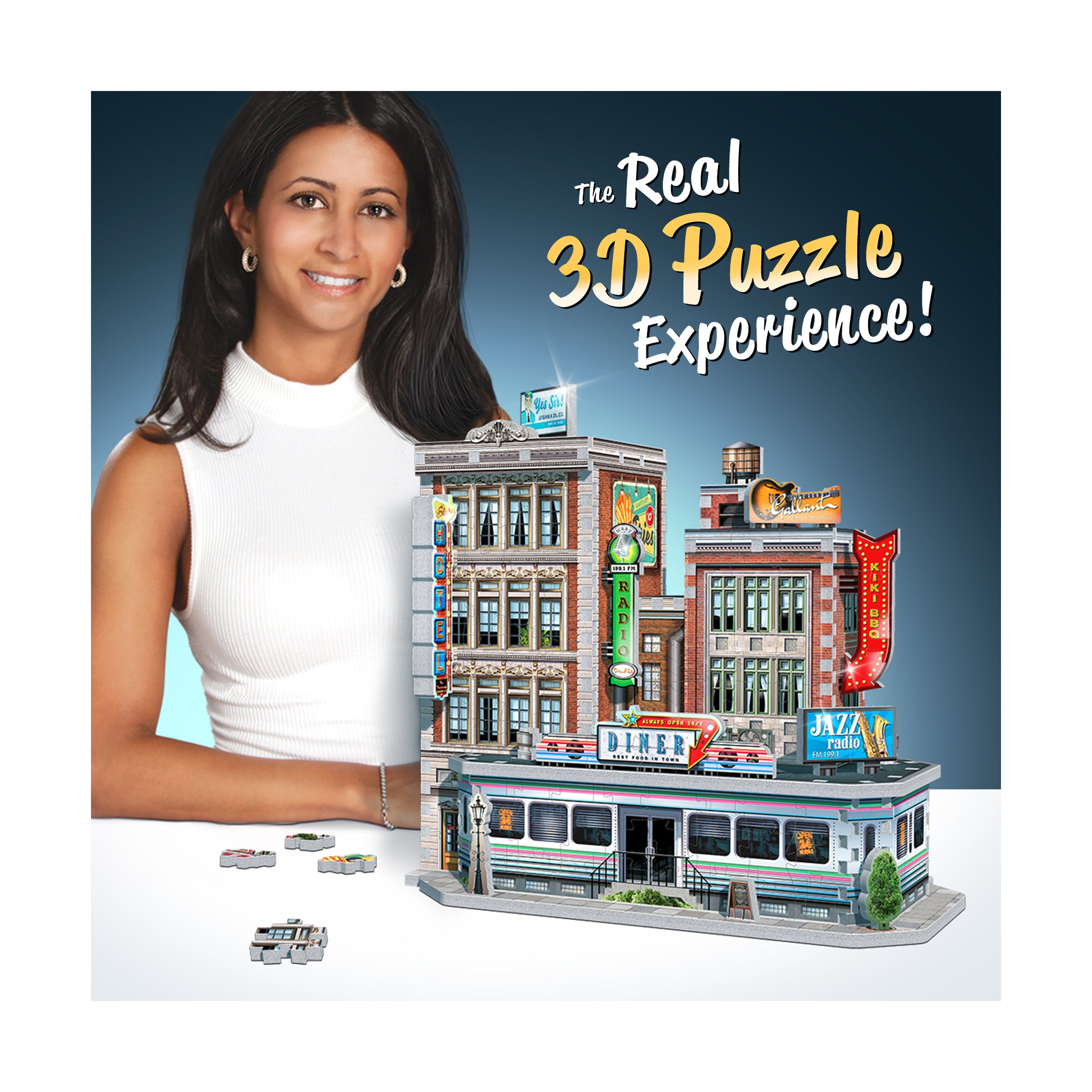 Display the diner on its own as eye-catching vintage decor, or connect it with the modular Urbania Collection - the Cinema, Hotel, Cafe, and Fire Station - to create a customizable downtown streetscape. However you show it off, the 1950s Diner 3D jigsaw puzzle delivers a rewarding challenge and a timeless slice of rock and roll history in one collectible kit.
