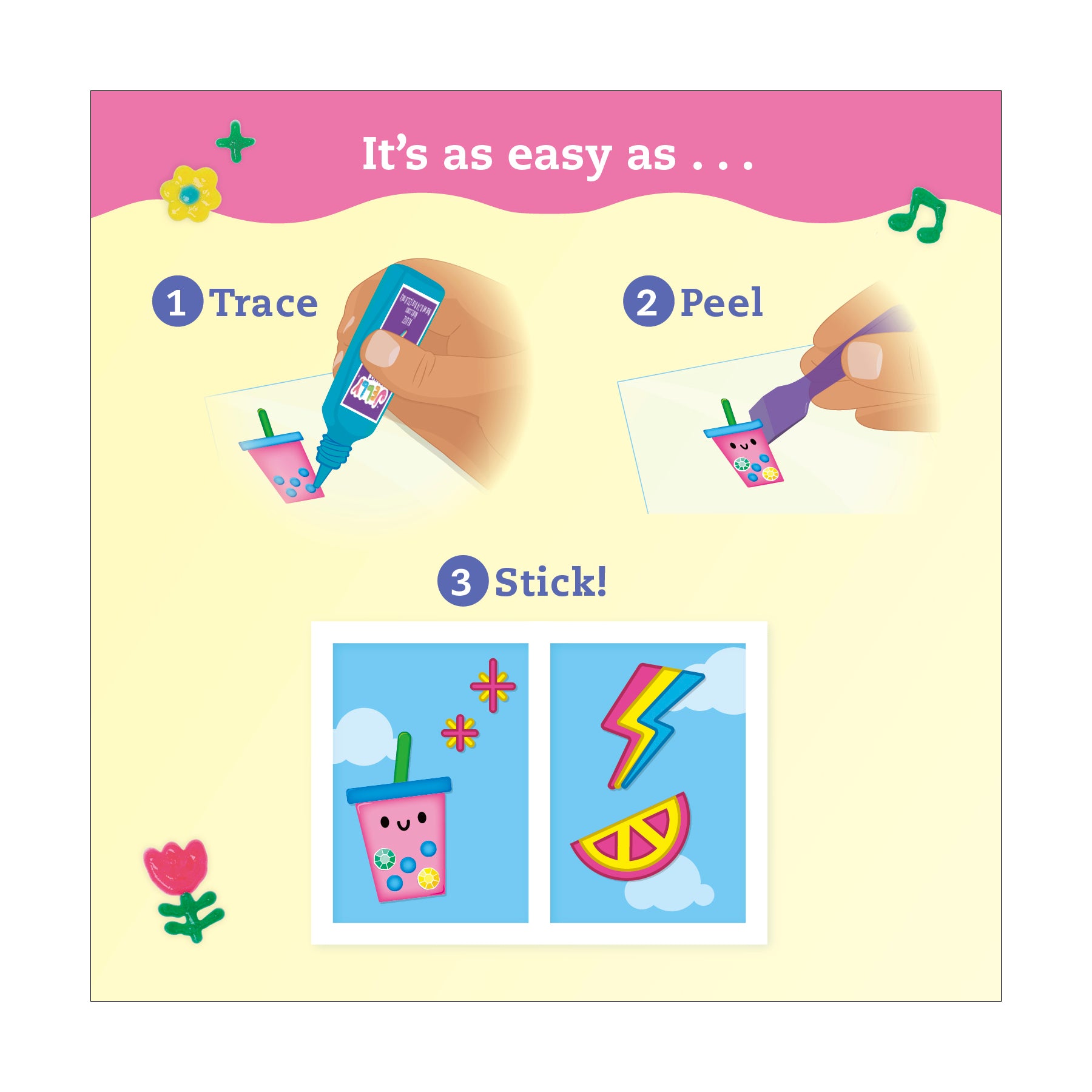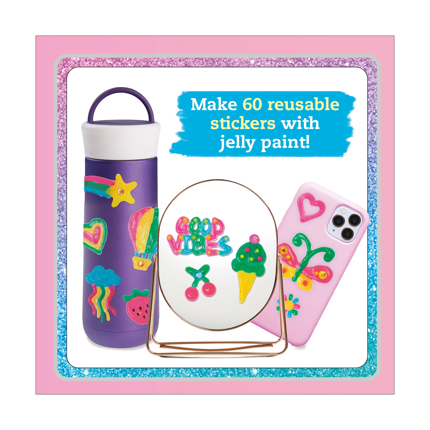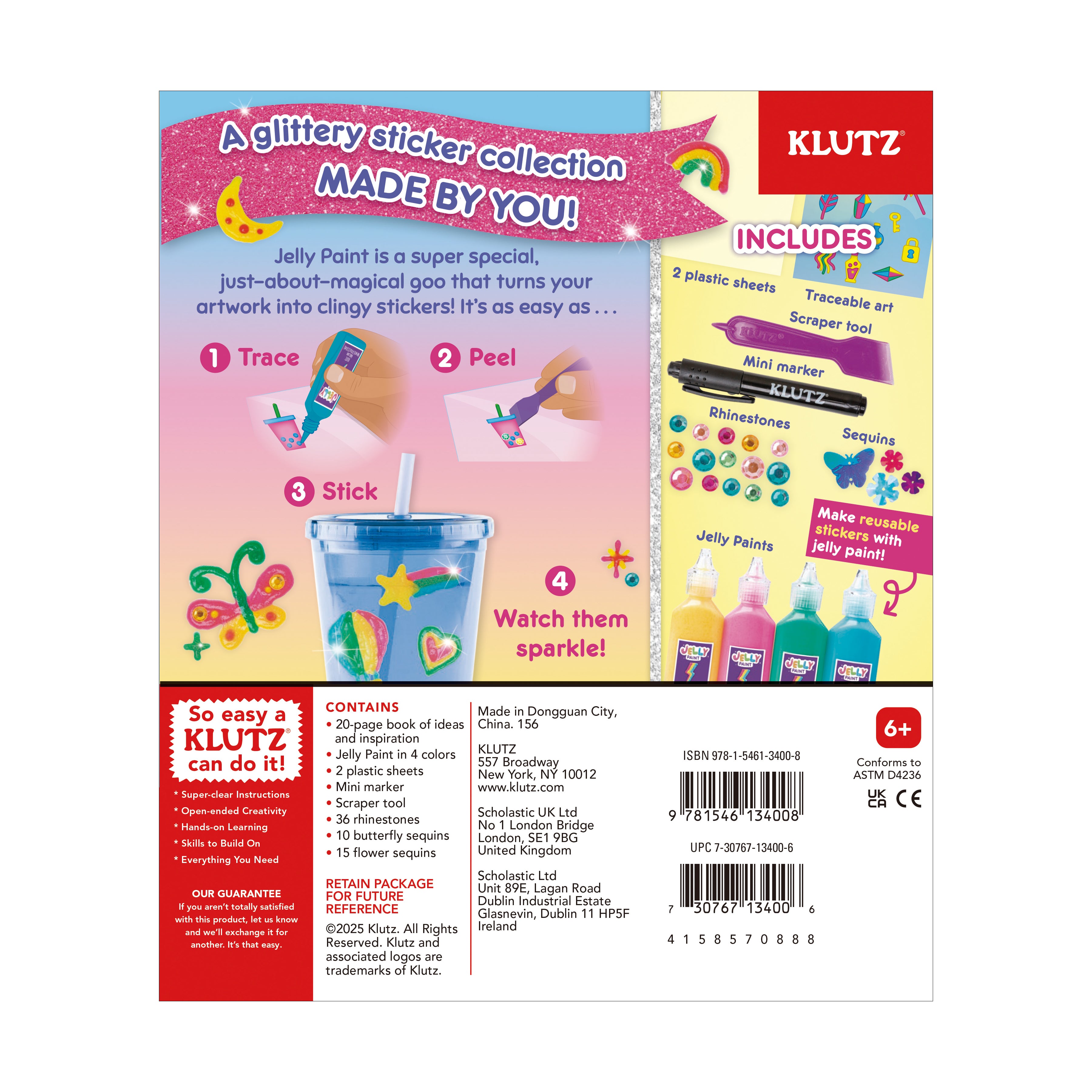 This new twist on the bestselling Klutz Paint & Peel Jelly Stickers now comes with glitter jelly paint! Use glitter jelly paint to trace sticker designs from frogs to flowers to flamingos, and more! These stickers are removable and reusable, making it easy to style and re-style your stuff again and again. Use them to glitter up your gadgets, phone cases, and tech screens. They also make great window clings that sparkle in the sun!