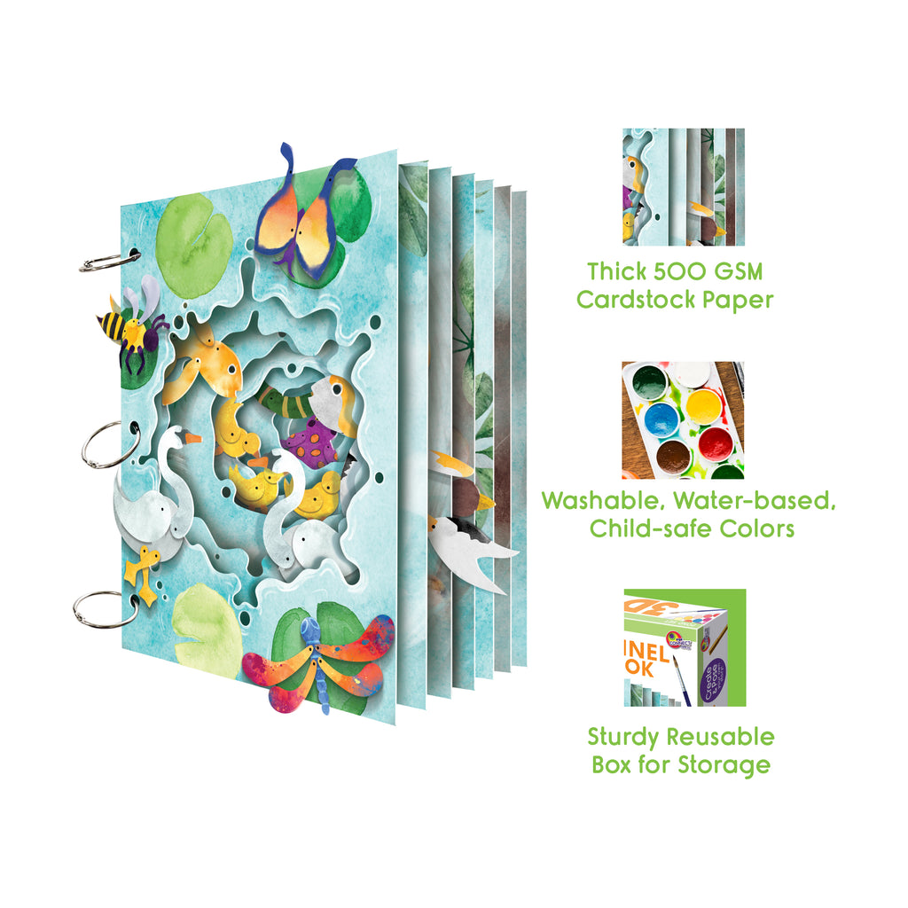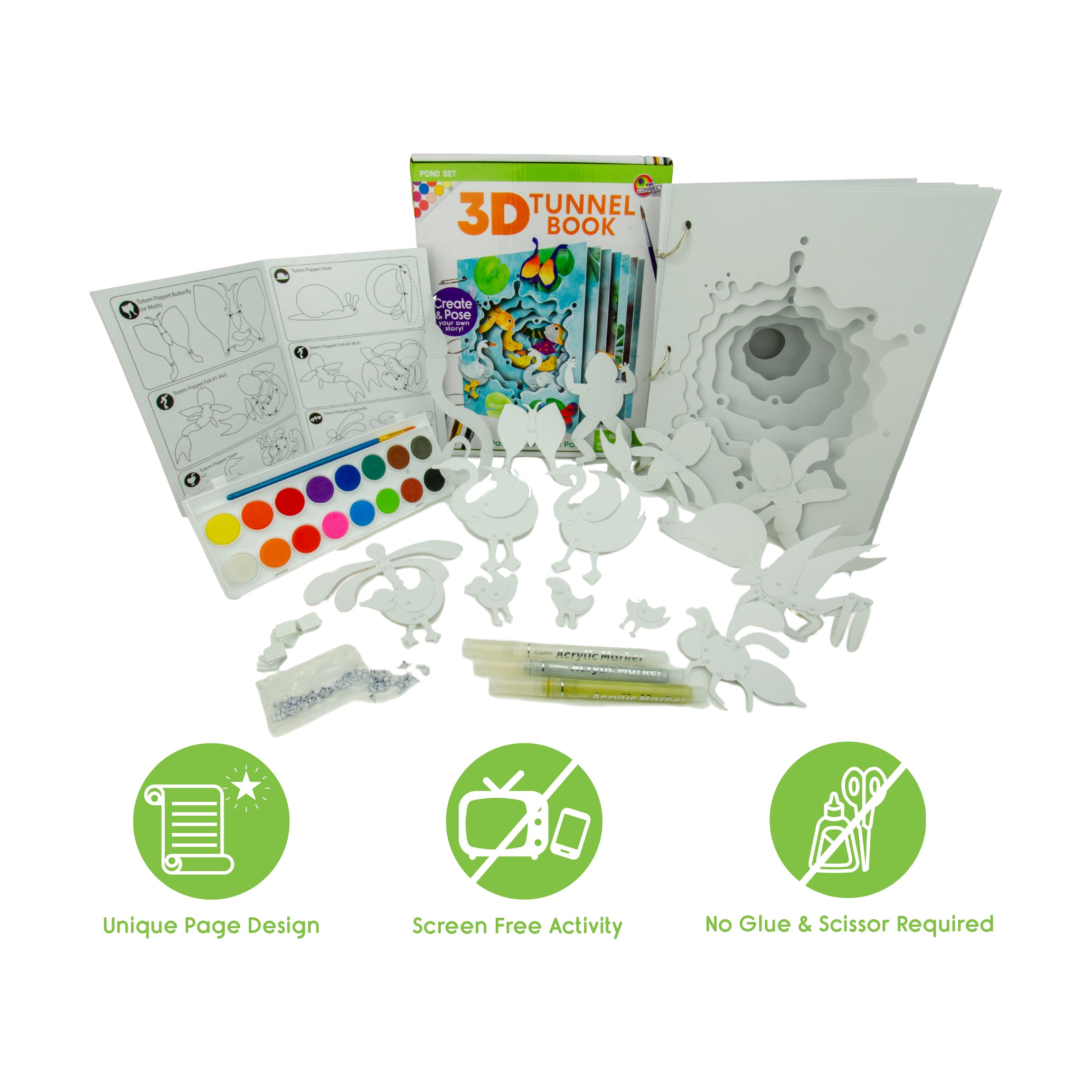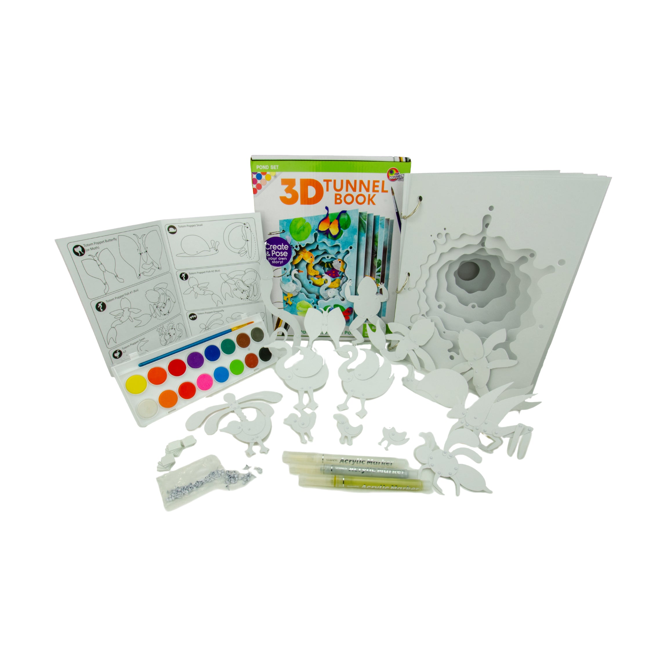 The 3D Tunnel Book is a beautiful book featuring your or your children's artistic talent. Show off your finished 3D Tunnel Book. It makes a great coffee table book and will be a cherished keepsake! Ready to add your own amazing 3D book to your book collection? Get your Pond Set 3D Tunnel Book art and craft kit and start creating your very own 3D Tunnel Book today!