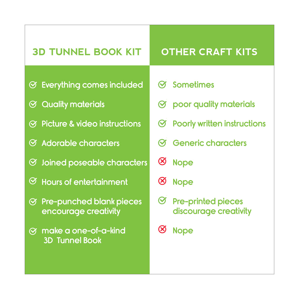 Putting the 3D Tunnel Book together is easy, with no need for glue or scissors. It's great for kids and grown-ups too! If you love books and enjoy DIY, you will love this craft project. Or if you're a parent looking for a unique creative idea for a birthday, this craft kit makes a fantastic gift! It'll keep your kids busy creating for hours.