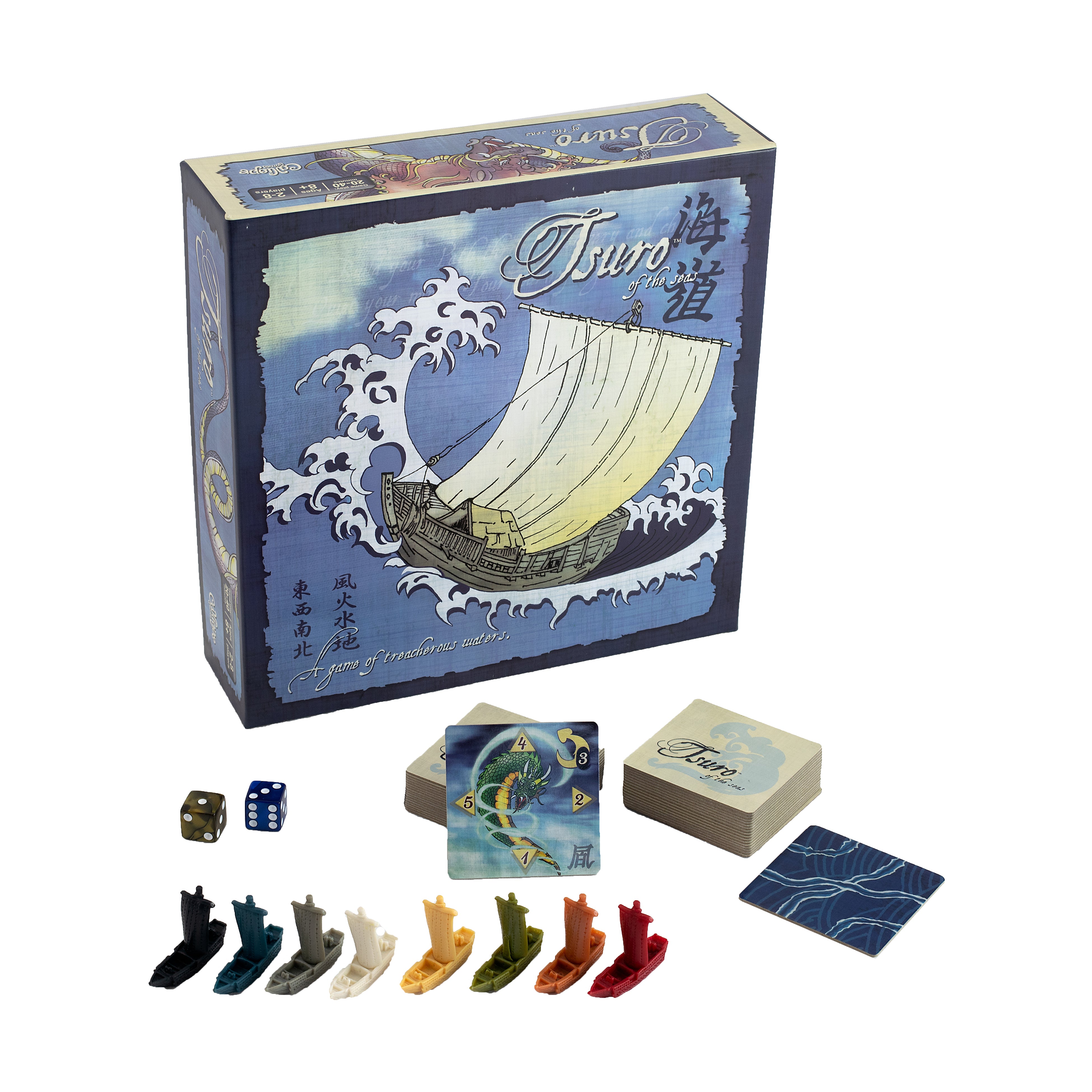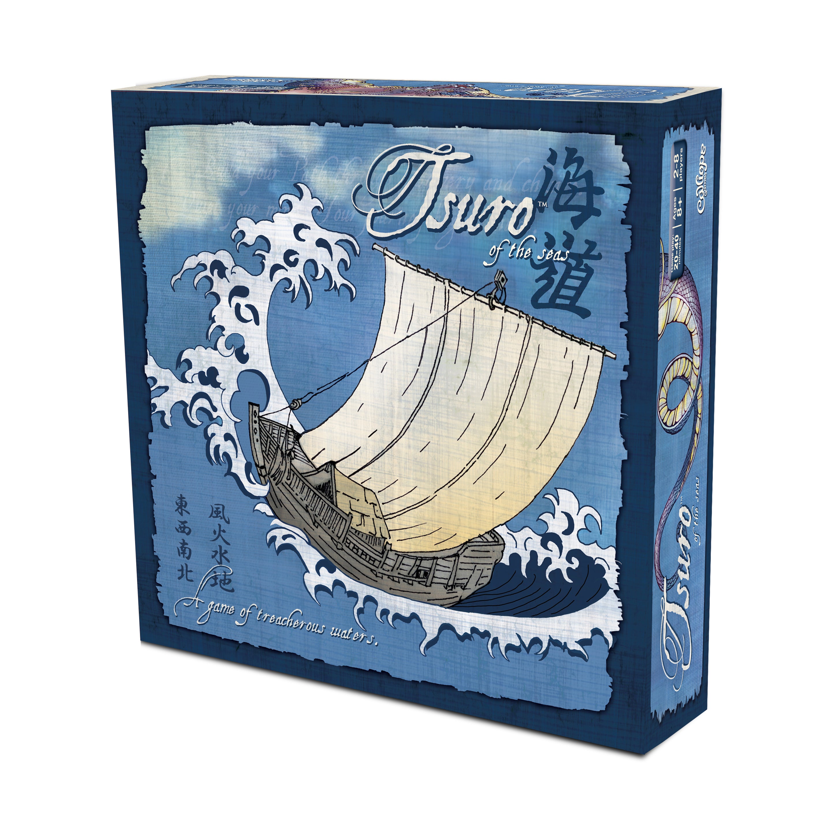 In Tsuro of the Seas you will sail the treacherous waters of the Mystic Seas in an engaging game of adventure and suspense! As the captain of one of the Emperor's mighty Red Seal ships, you will navigate the seas by placing Tsuro wake tiles to direct your vessel. Take great caution to avoid your opponents' ships... and those mysteries lurking on the horizon and under the sea. Guide your ship with a steady hand and be the last captain sailing to survive the Mystic Seas and win!