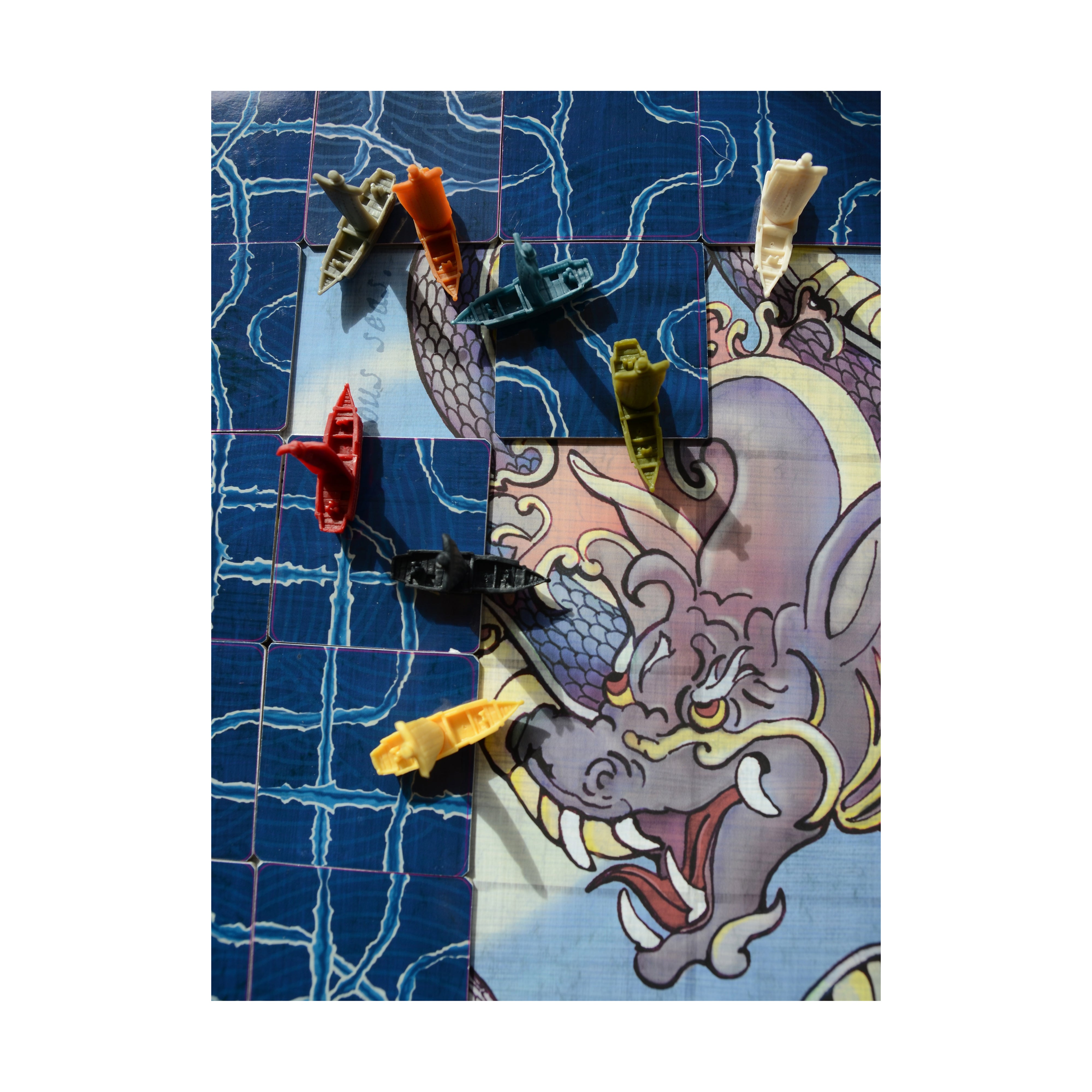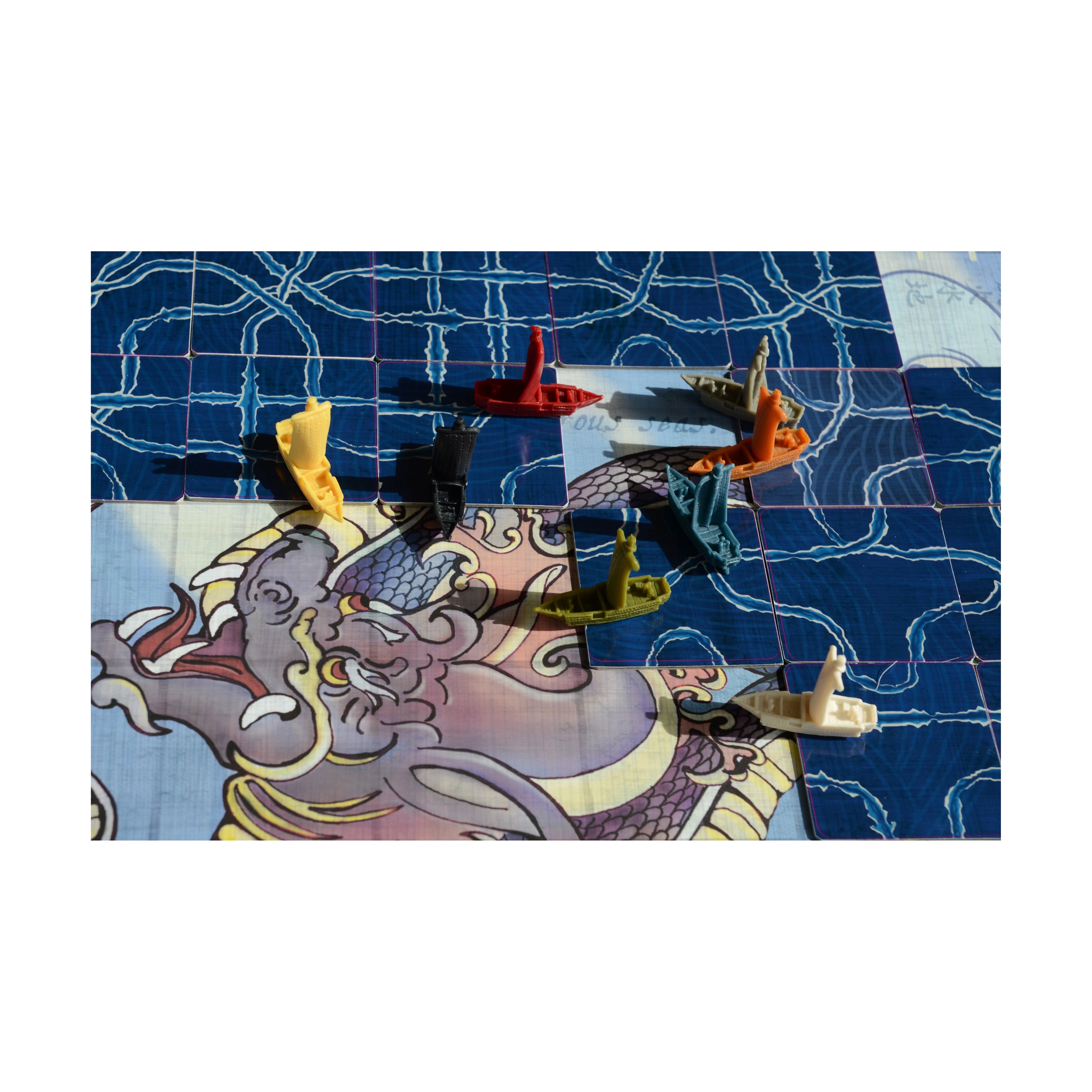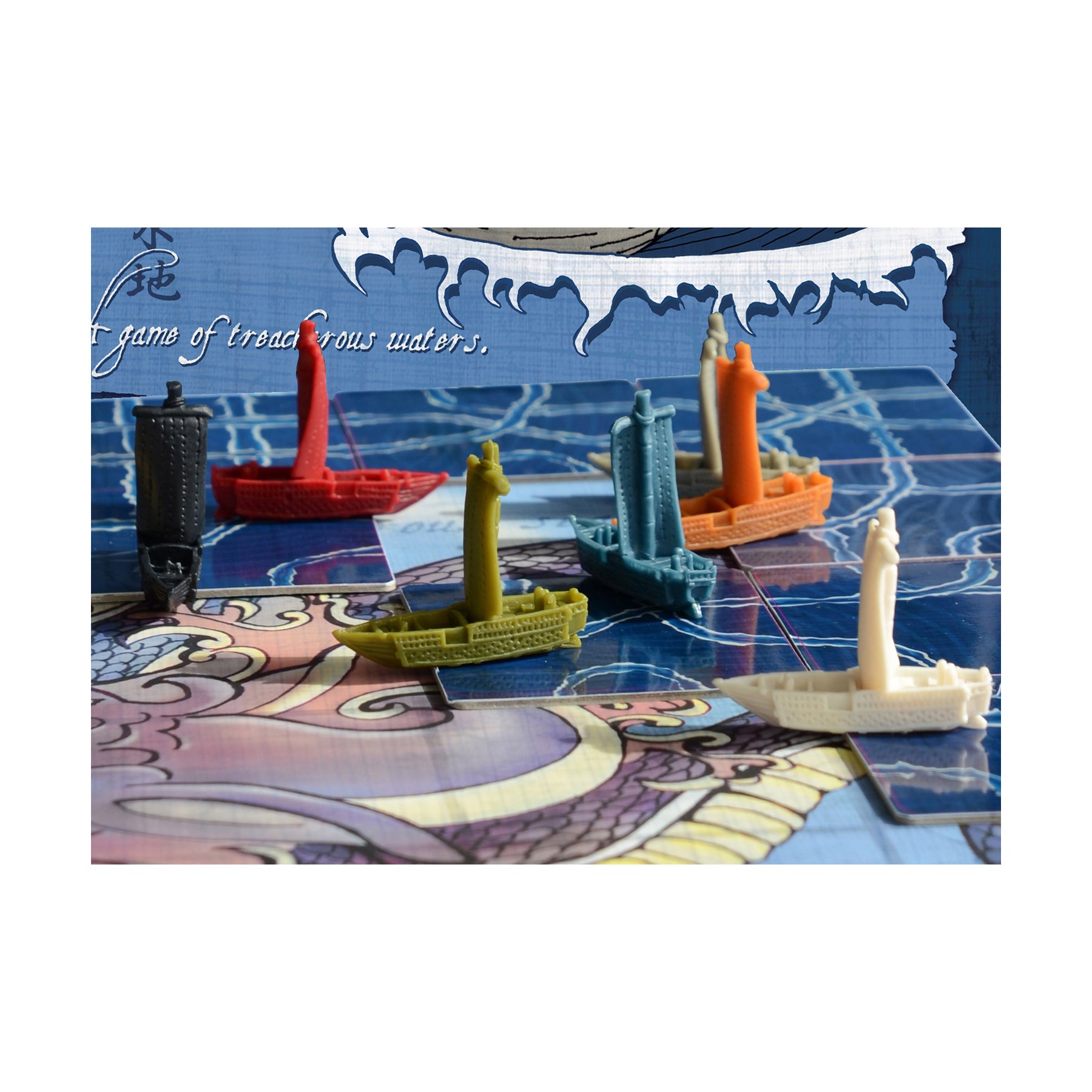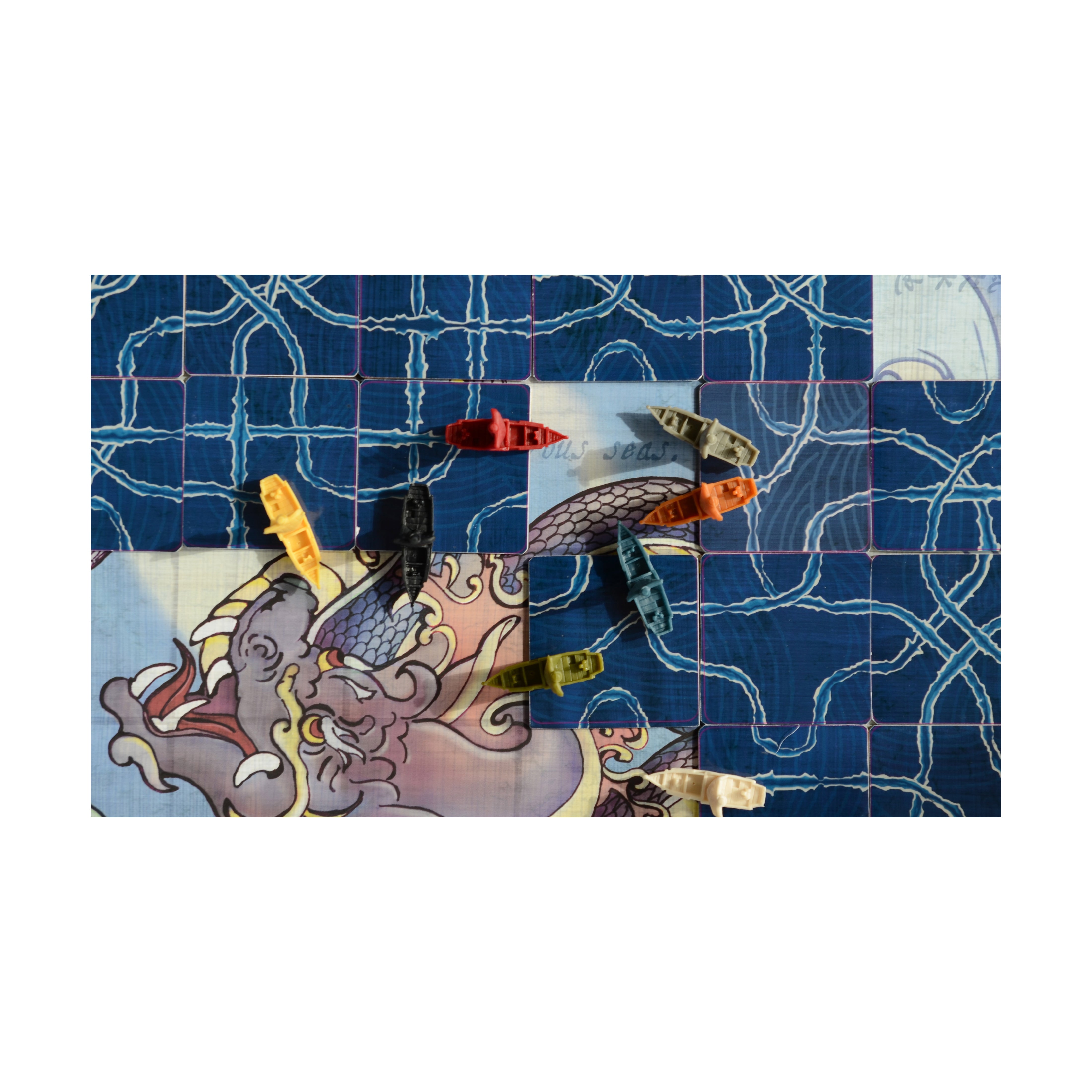 Set sail on a treacherous adventure in Tsuro of the Seas, the sequel to the classic path-building game Tsuro. The rules are simple: place a tile, move your ship, draw a new tile - but this time, the ocean is alive with danger. Massive daikaiju (sea monsters) roam the waters, consuming ships, tiles, and even each other! Can you chart your path and outlast the chaos, or will your ship be swallowed by the depths? Set sail at once! You have a mighty quest to fulfill for the Emperor!