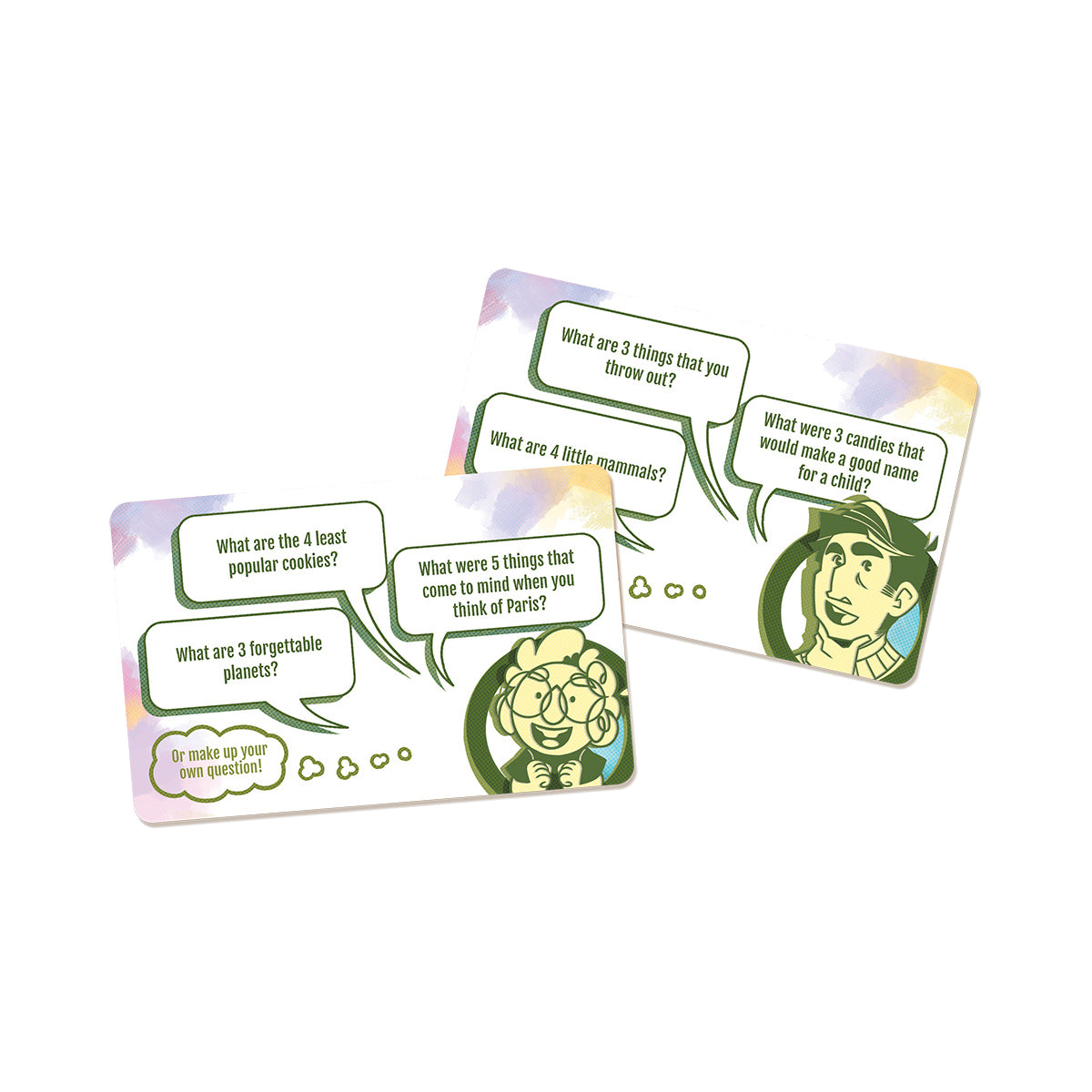 In Hive Mind, players answer trivia and opinion questions trying to match their answers with other players, scoring points for each match they achieve. They don't have to be correct! They just have to be the same as what other players think. Each round, players will roll the die to determine how many lowest scoring answers move down the player board. Then a question will be asked, and answers given and scored. Once one or more players moves lower than level six, they are eliminated from the Hive Mind and everyone else wins!