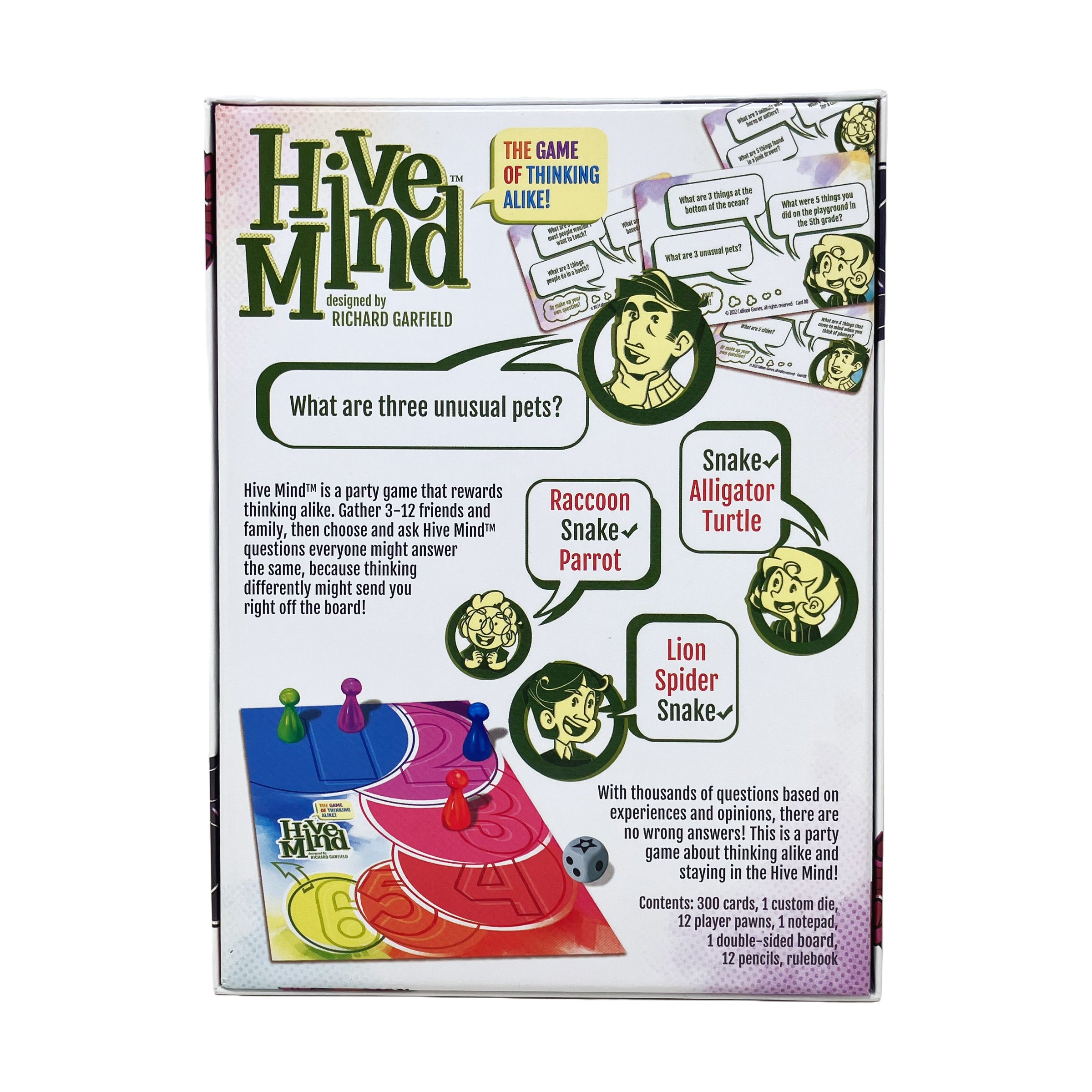 From legendary designer Richard Garfield, Hive Mind is the classic party game that rewards thinking alike, and there are no wrong answers! Gather 3-12 friends and family, then choose and ask Hive Mind questions everyone might answer the same, because thinking differently might send you right off the board! With thousands of questions based on experiences and opinions, this is a party game about thinking alike and staying in the Hive Mind!