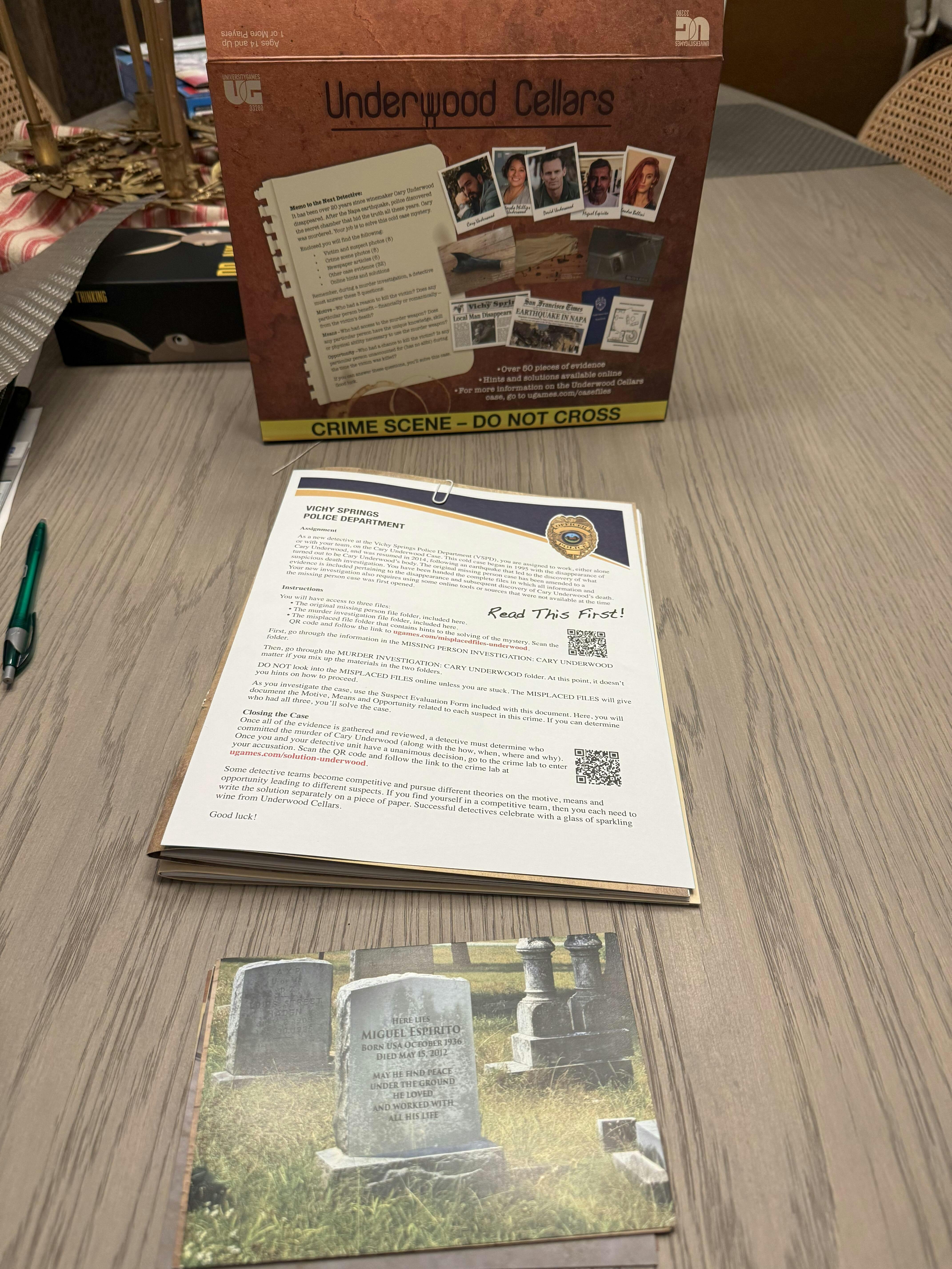 Murder Mystery Party Case Files: Underwood Cellars