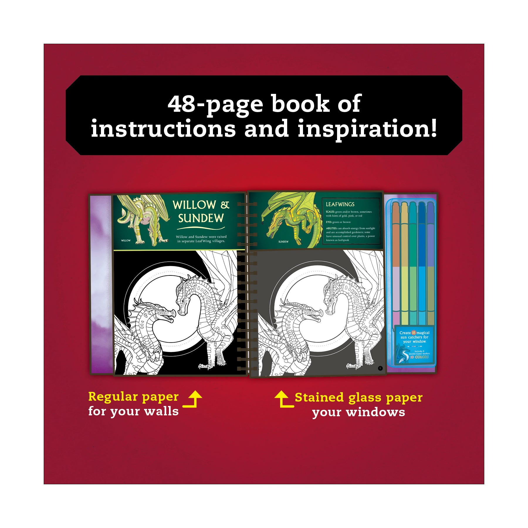 Color and create sun catchers for your window featuring some of your favorite dragons from the Wings of Fire series by #1 New York Times bestselling author Tui T. Sutherland. Use the custom double-tipped markers in 10 shades to color 18 pieces of special vellum paper that look like stained glass. Then, hang your artwork in a window and watch it light up! Each design is double the magic. Color the stained glass vellum pages for your windows, and the paper pages for your walls. The beautiful artwork features Glory, Tsunami, Sunny, and many more. Plus, learn fun facts about some of your favorite dragons!