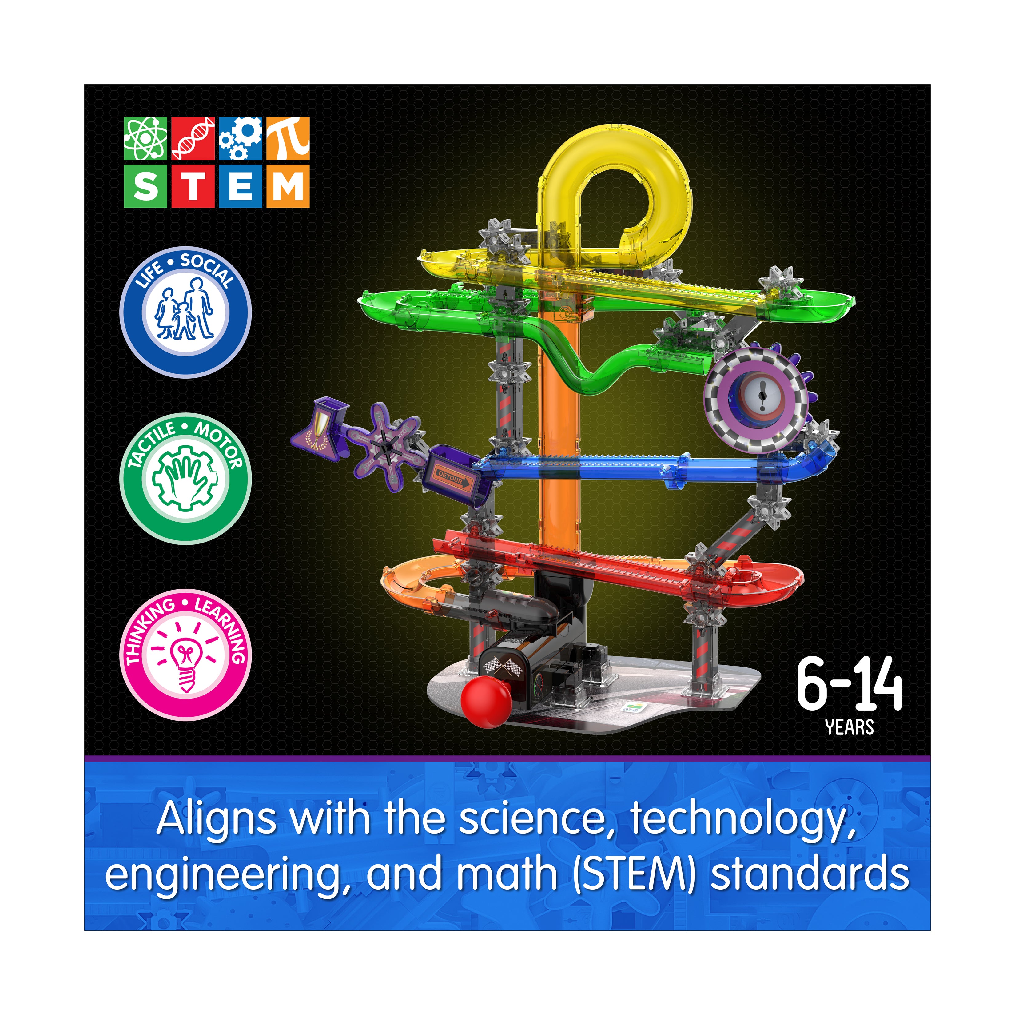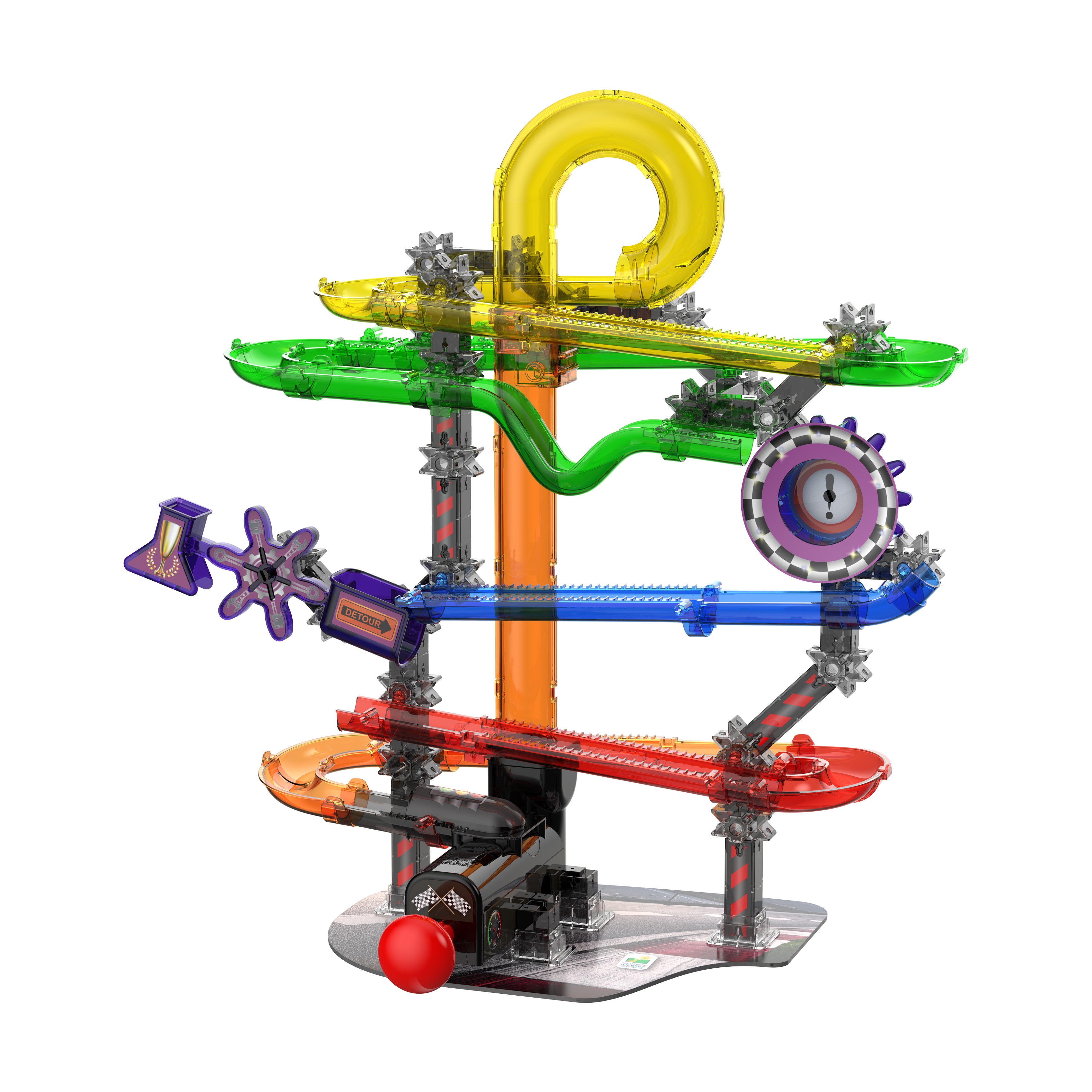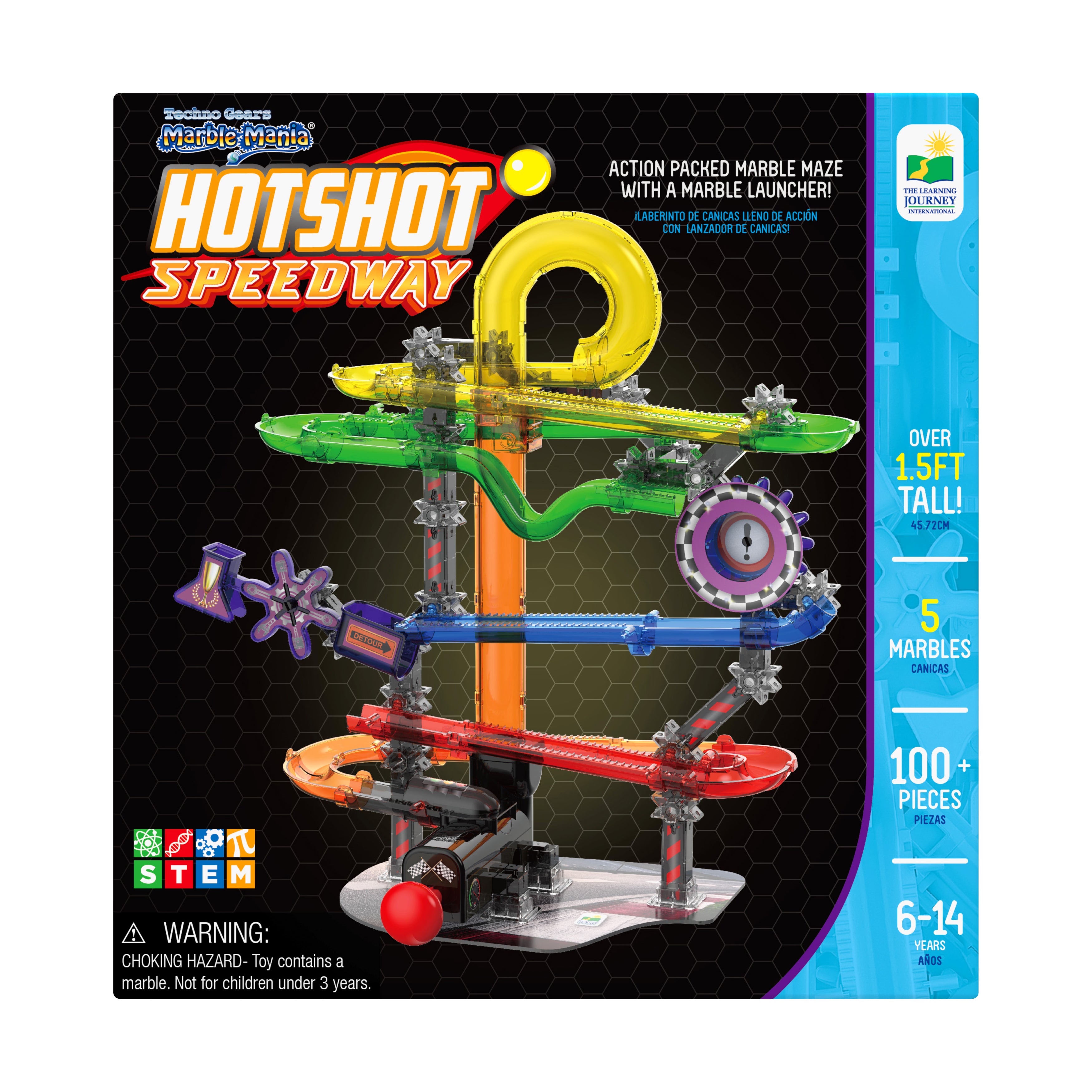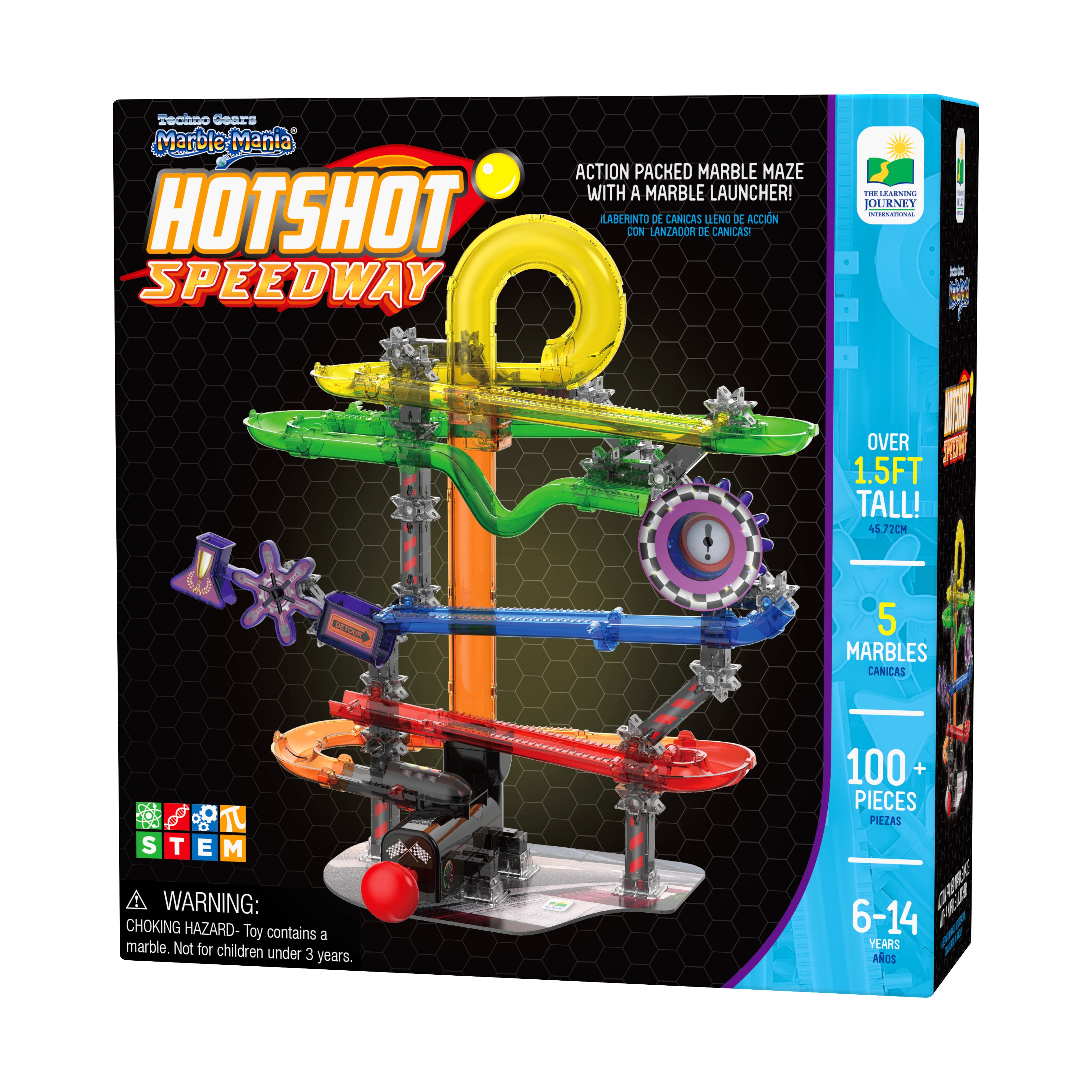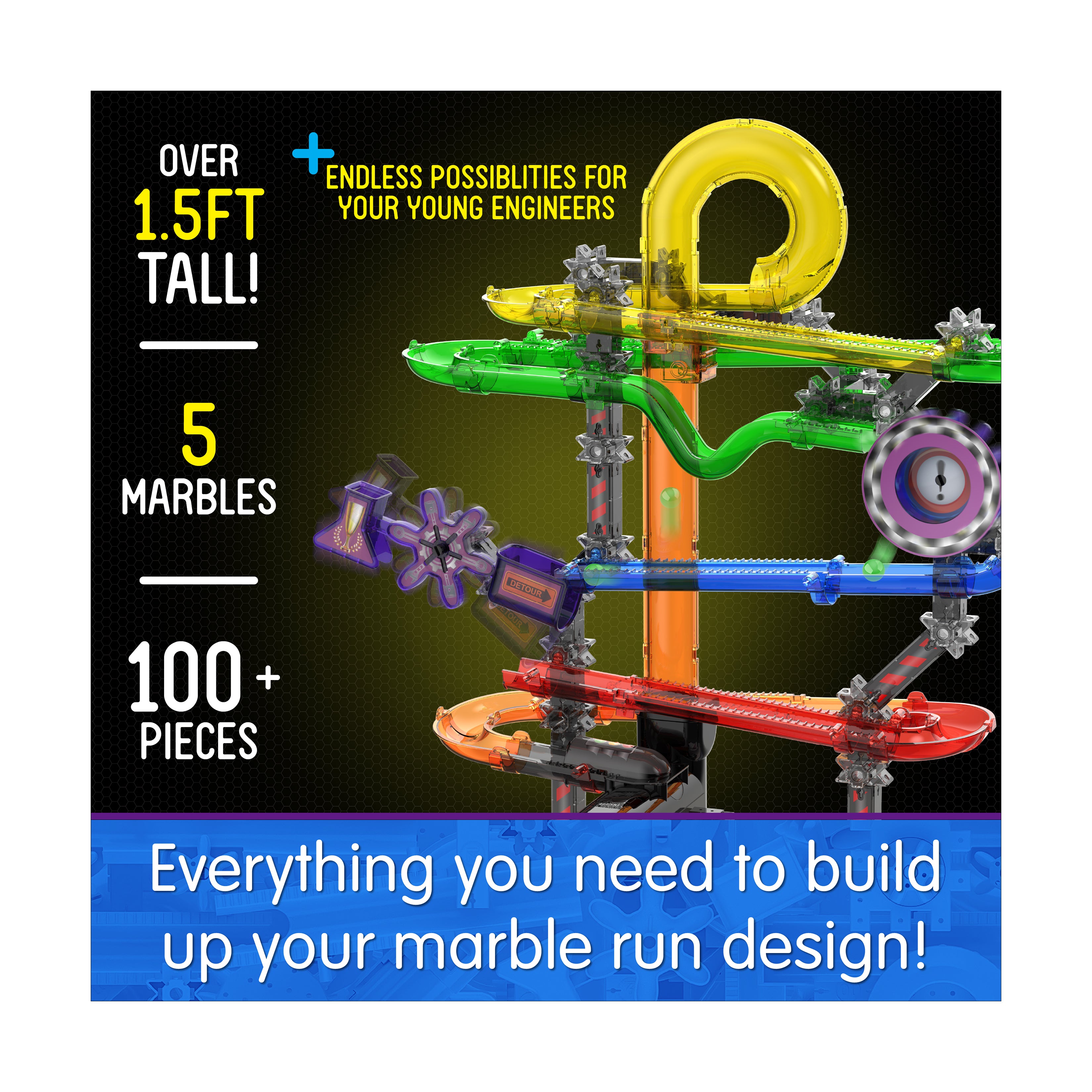 Rev up your excitement with Techno Gears Marble Mania HotShot Speedway! This high-energy construction set fuels creativity and curiosity with 80+ colorful translucent pieces designed for action-packed marble racing. Follow the detailed, step-by-step instructions to build a thrilling marble maze that launches your child into the fast-paced world of STEM (Science, Technology, Engineering, and Mathematics) learning. Once complete, watch marbles race, spin, and roll through twisting tracks and daring drops for nonstop excitement!