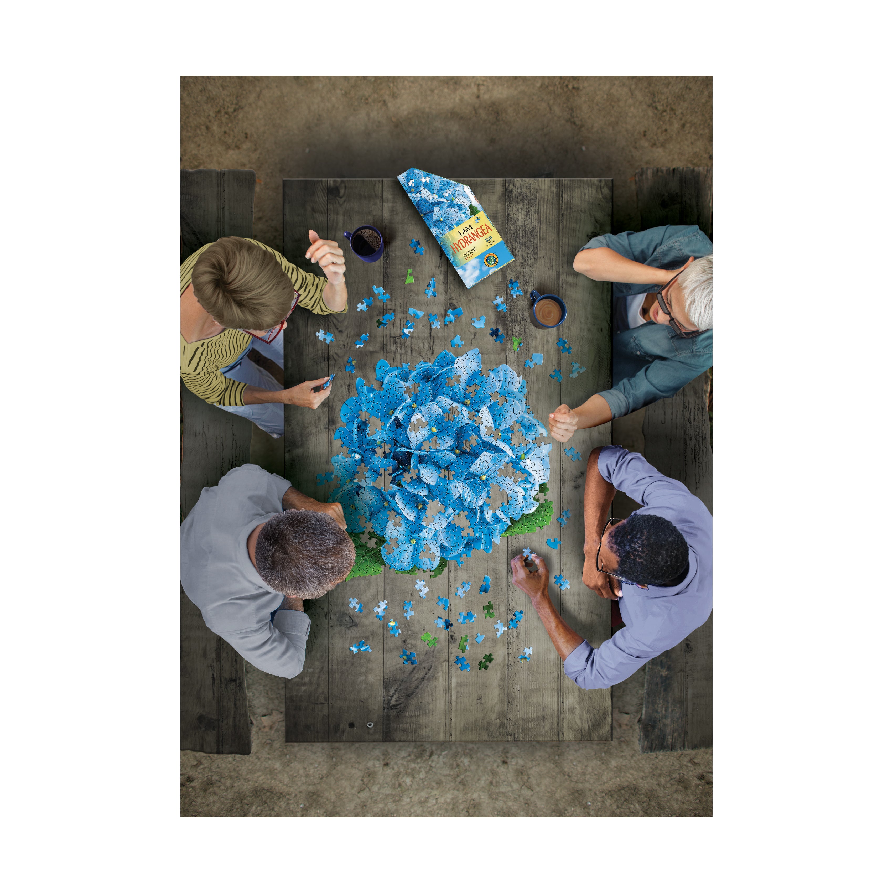 Packaged in Madd Capp's signature five-sided box, this puzzle is perfect for gifting or storage. More lasting than a bouquet, the I Am Hydrangea puzzle makes a thoughtful gift for flower lovers, puzzle fans, and nature enthusiasts alike.