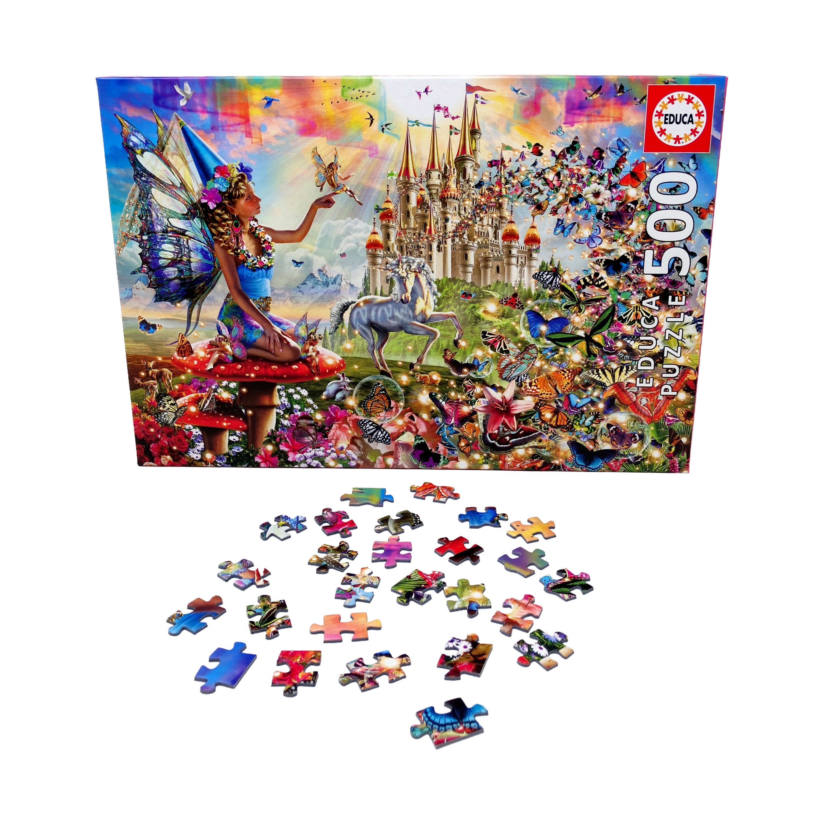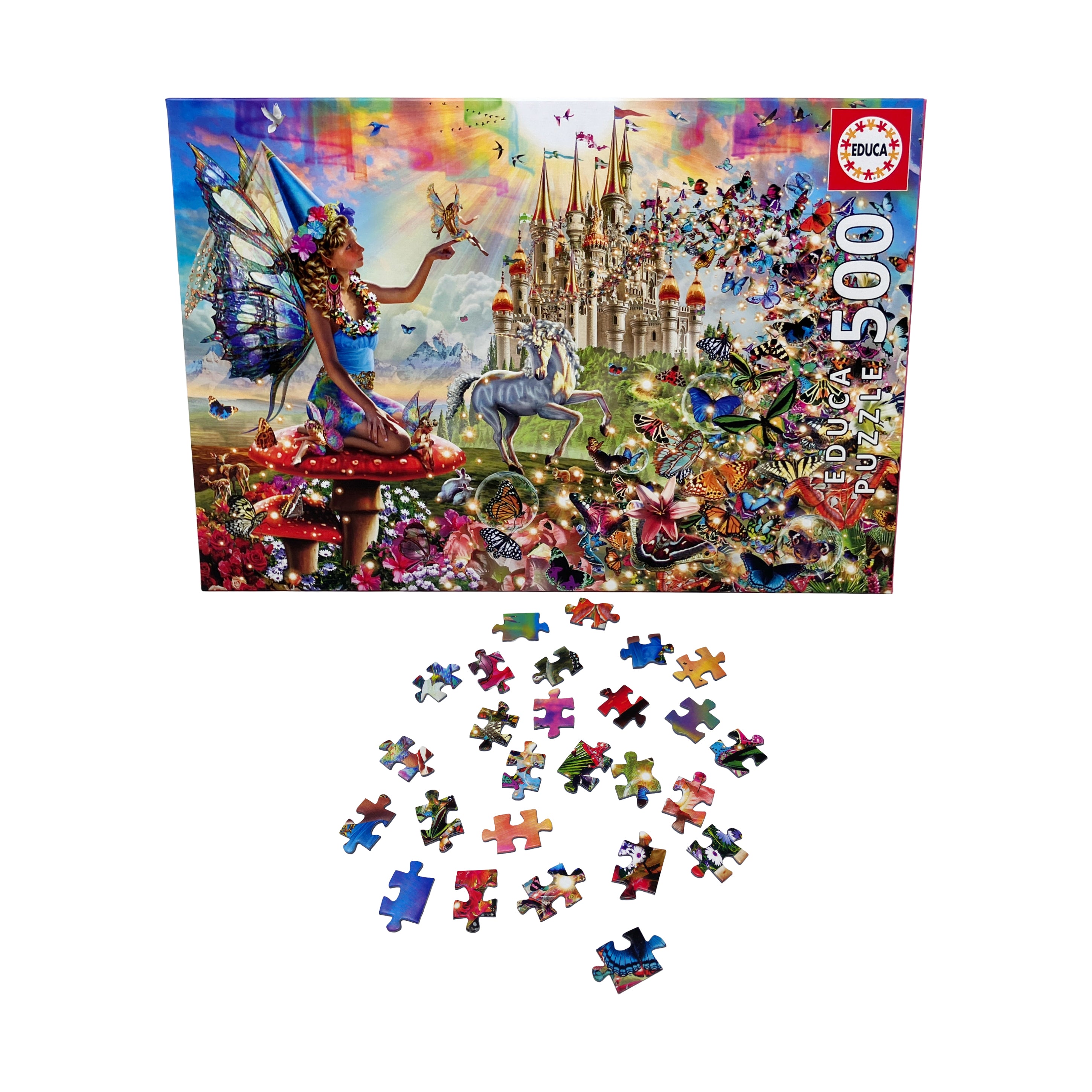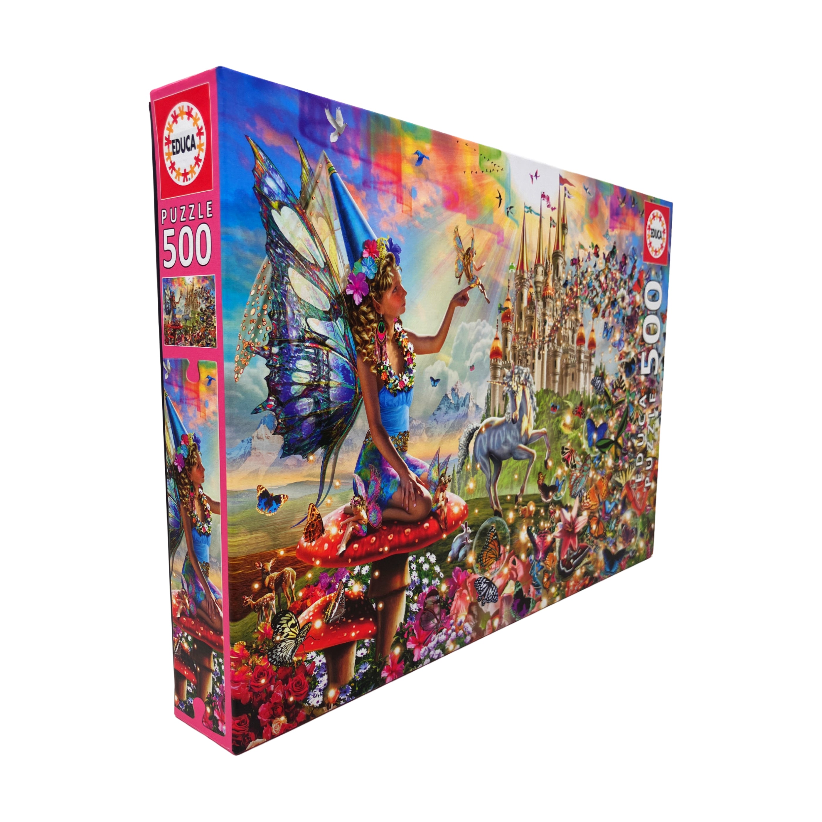 Dive into a world of magic and imagination with the Educa Fairy & Butterflies 500-piece jigsaw puzzle! This beautifully illustrated puzzle captures a whimsical scene where delicate fairies flit among colorful butterflies in a lush, enchanted garden. Perfect for both kids and adults, it provides hours of engaging entertainment while promoting focus, patience, and problem-solving skills. The 500 high-quality interlocking pieces ensure a satisfying assembly experience, and it comes with puzzle glue to preserve your finished masterpiece.