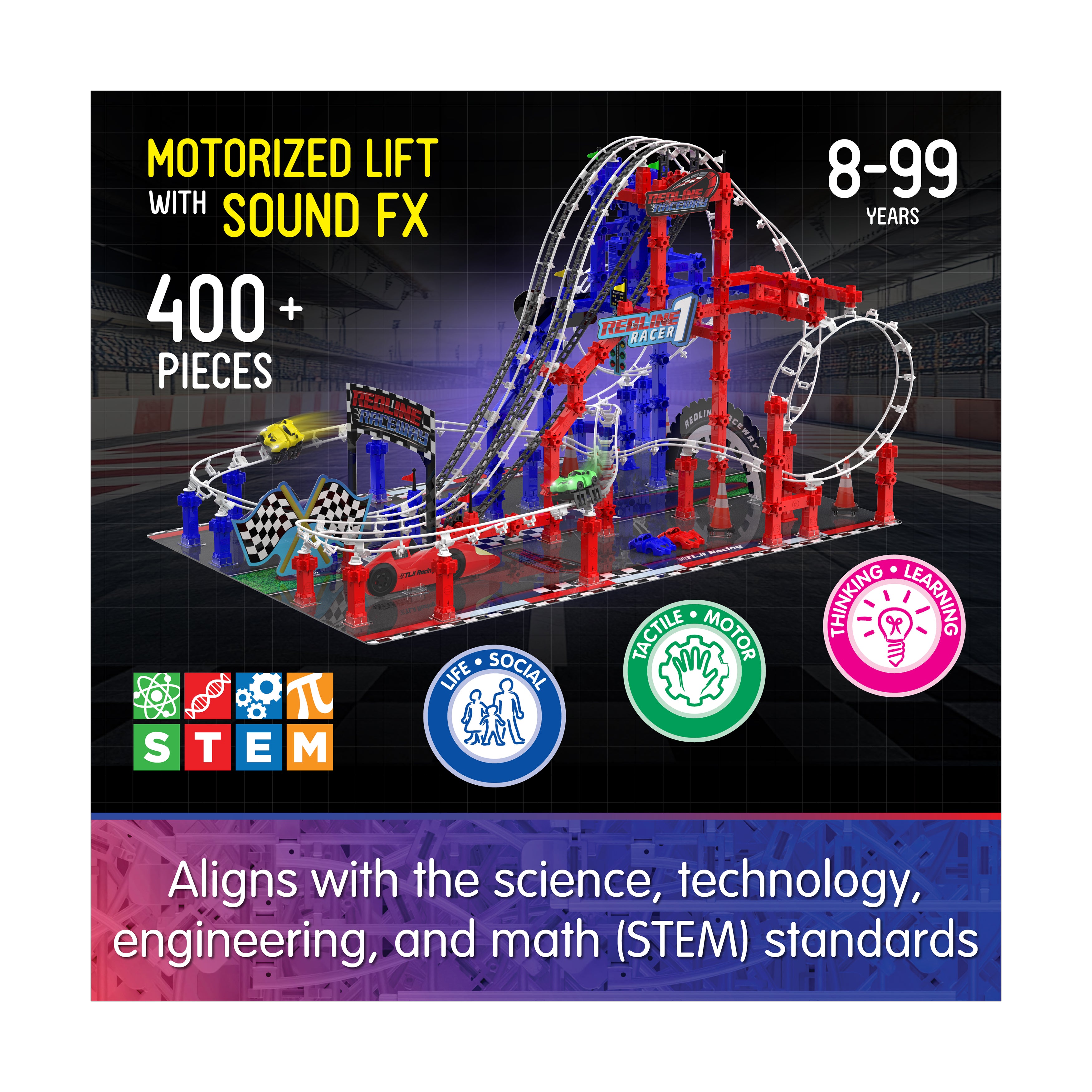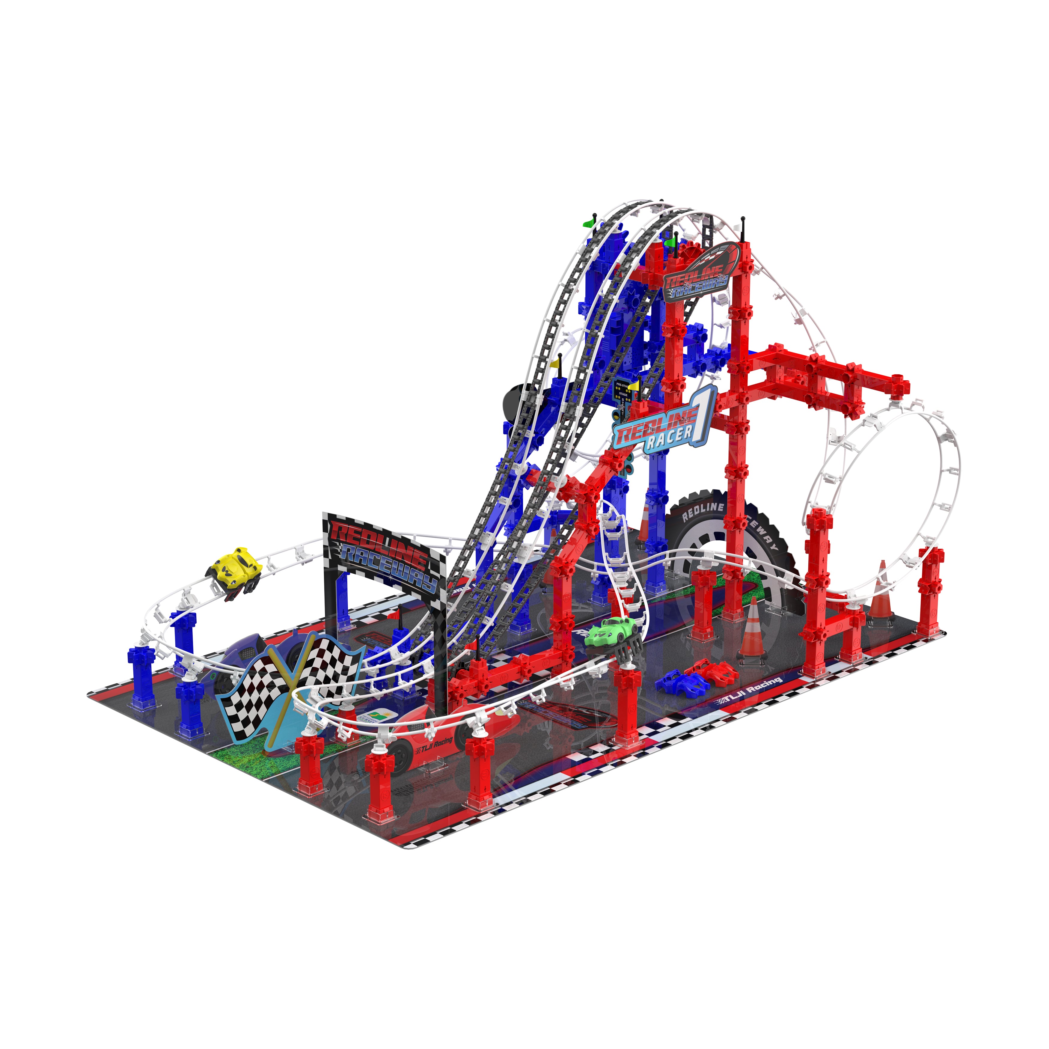 Packed with 400+ colorful parts, Redline Raceway challenges builders to explore engineering through hands-on play. Perfect for kids and adults alike, this dynamic set supports STEM (Science, Technology, Engineering, and Mathematics) education, teaching mechanical design, motion, and problem-solving in an exciting way. Includes two extra race cars so players can swap designs anytime! Start your engines and race to the top! Requires 3 AA batteries (not included).