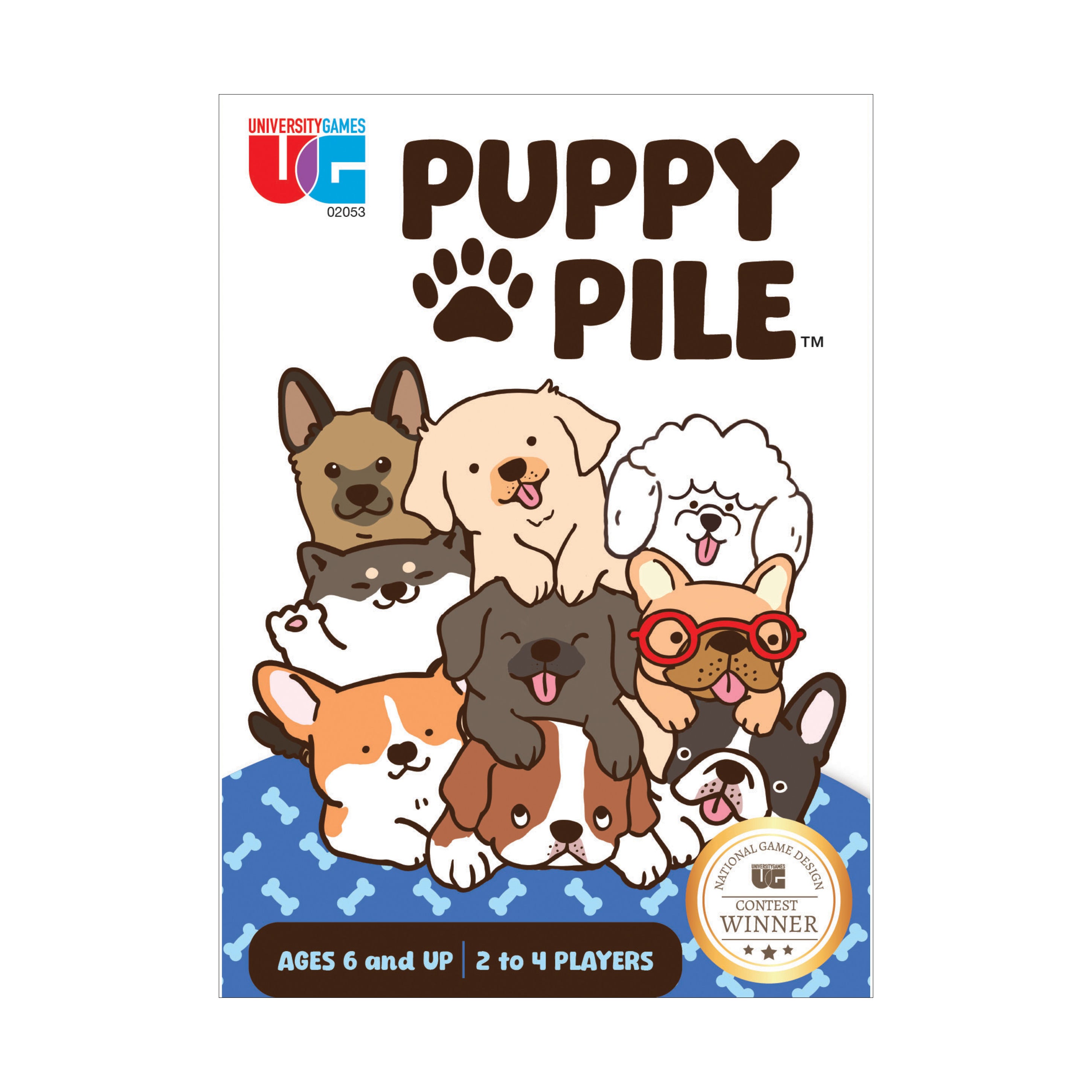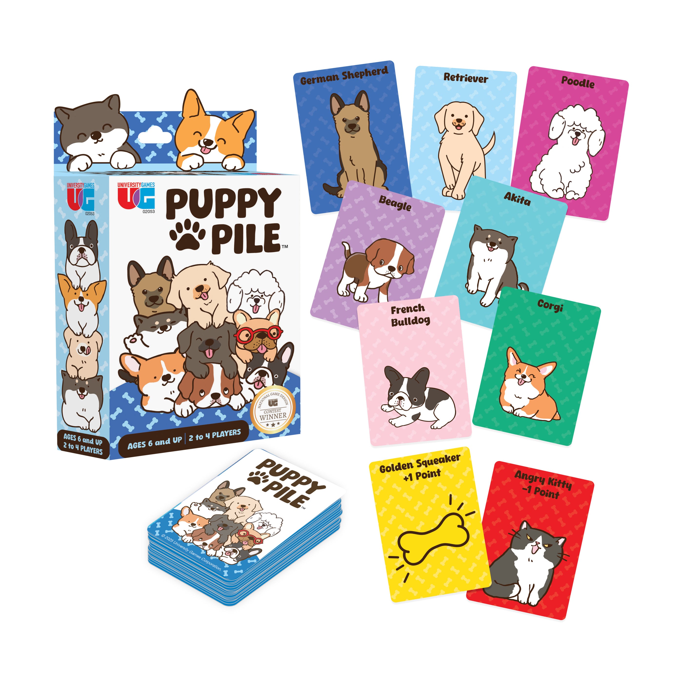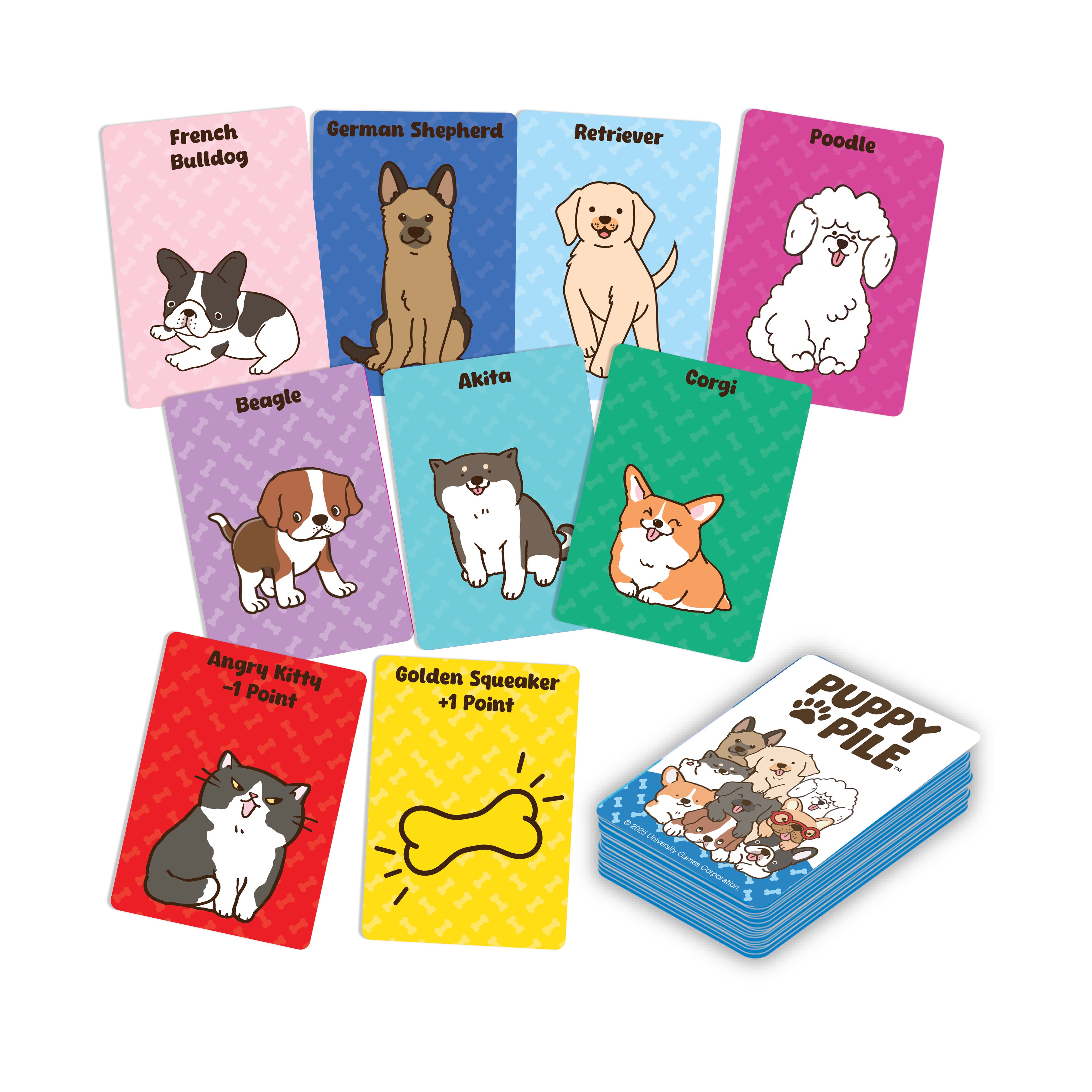 Puppy Pile brings giggles, competition, and plenty of puppy love to your next family game night. Puppy Pile comes with 150 cards featuring 7 different puppy breeds: French Bulldog, German Shepherd, Poodle, Retriever, Beagle, Akita and Corgi. It's easy and fun for everyone - with simple rules and a focus on fun, kids can dive right in and play.