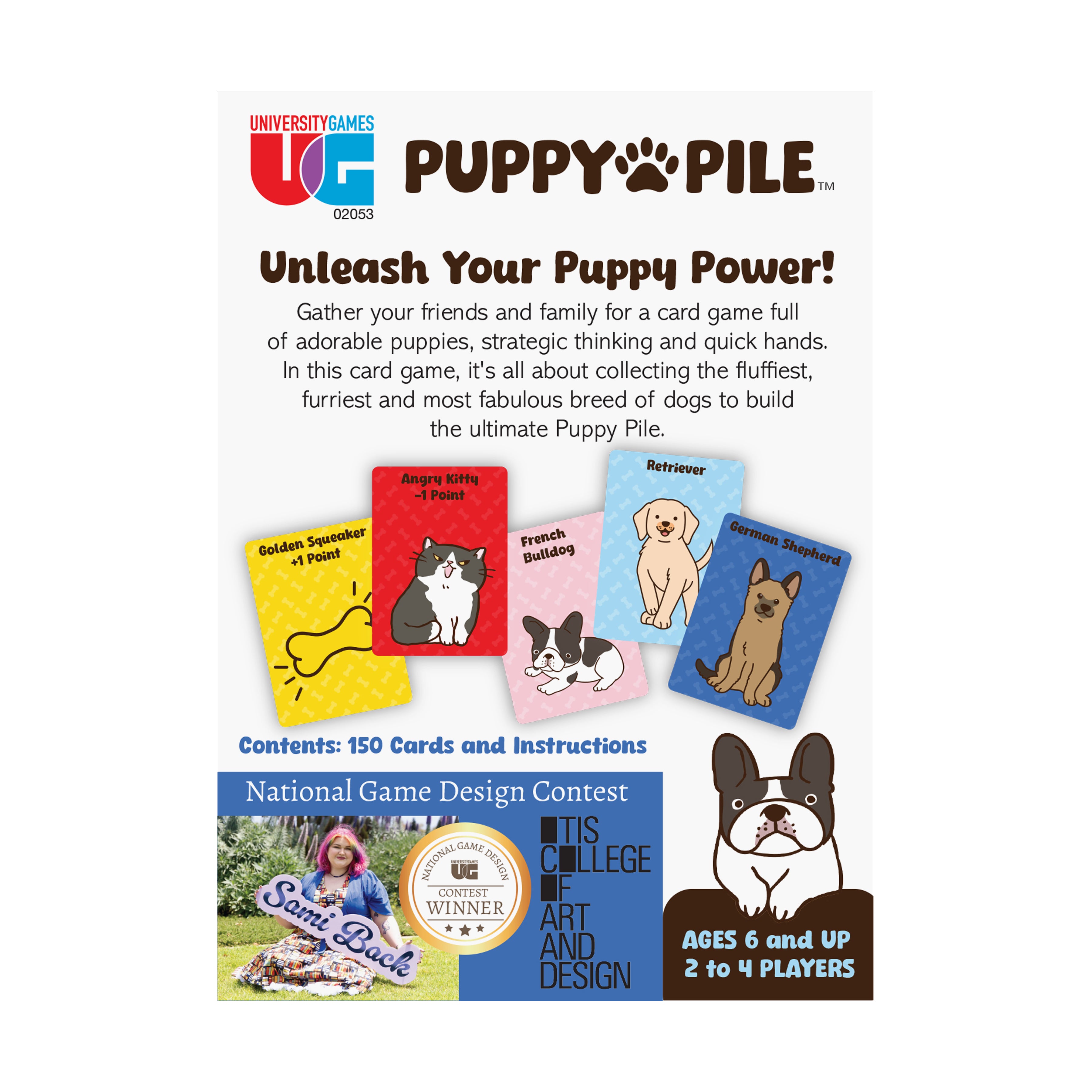 Puppy lovers, this one is for you! Puppy Pile, the winner of the 2025 National Game Design Contest at Otis College of Art and Design, is a fast-paced card game that unleashes your puppy power! Gather friends and family to compete in collecting the fluffiest, furriest, and most fabulous breeds. With adorable puppies, quick thinking, and speedy hands, it's a race to build the ultimate puppy pile!