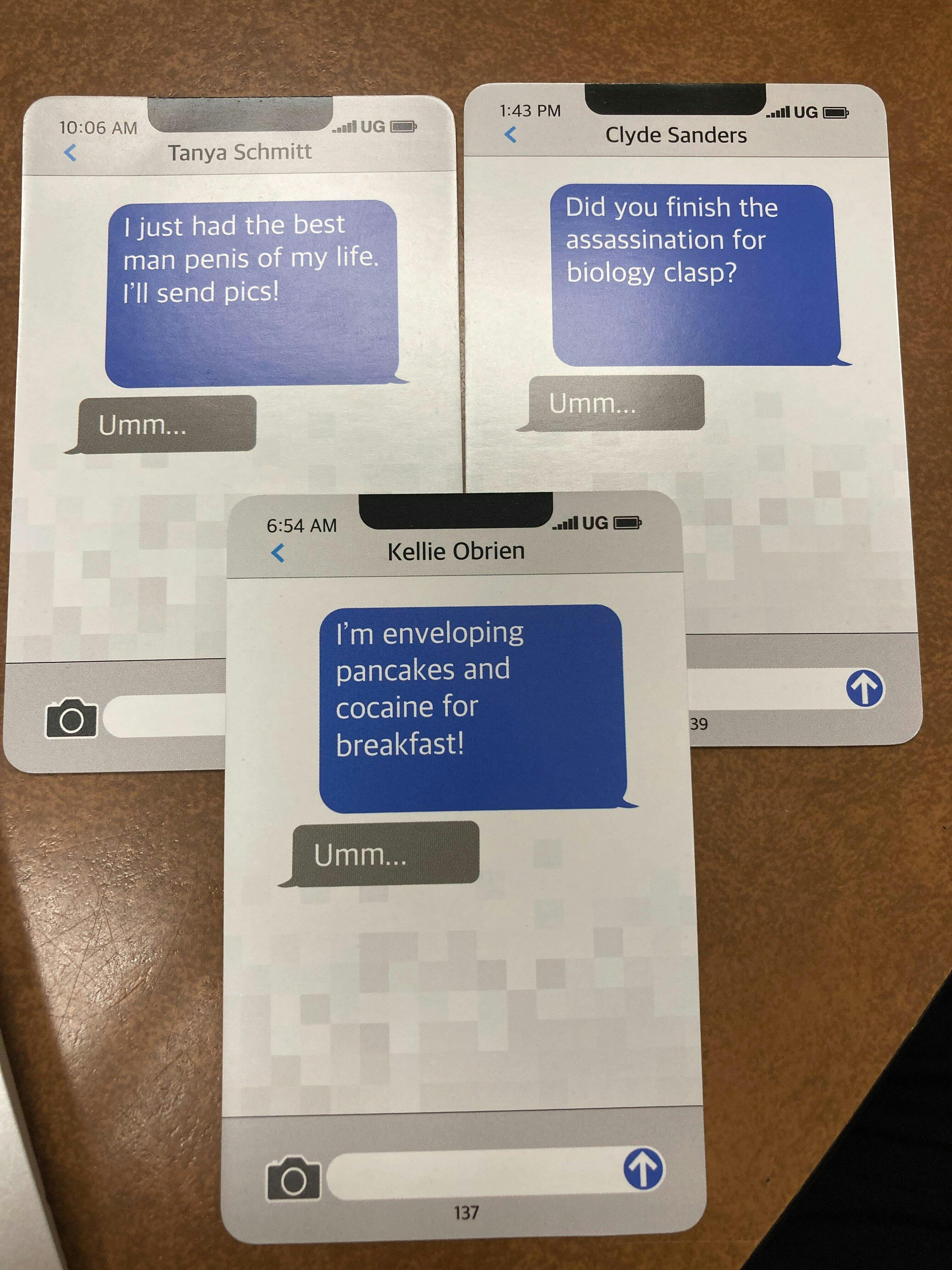 I purchased this game for my middle school class from a teacher's store. The first time I gave this game to my students, they brought to my attention the inappropriate content. These cards were filled with sexually explicit and suggestive language! I began sorting through the cards to remove the vulgar content, but after sorting through half of the deck, I had a larger pile of inappropriate cards than acceptable cards. This is an atrocity and illegal to label a game containing adult content as appropriate for minors!