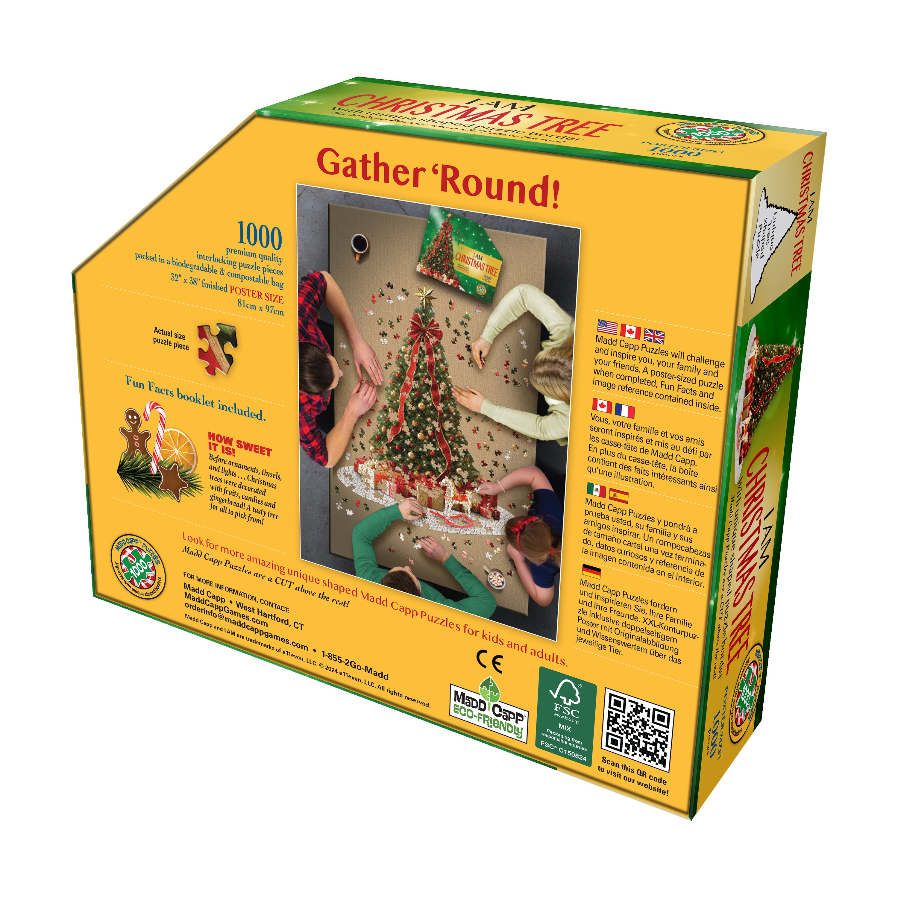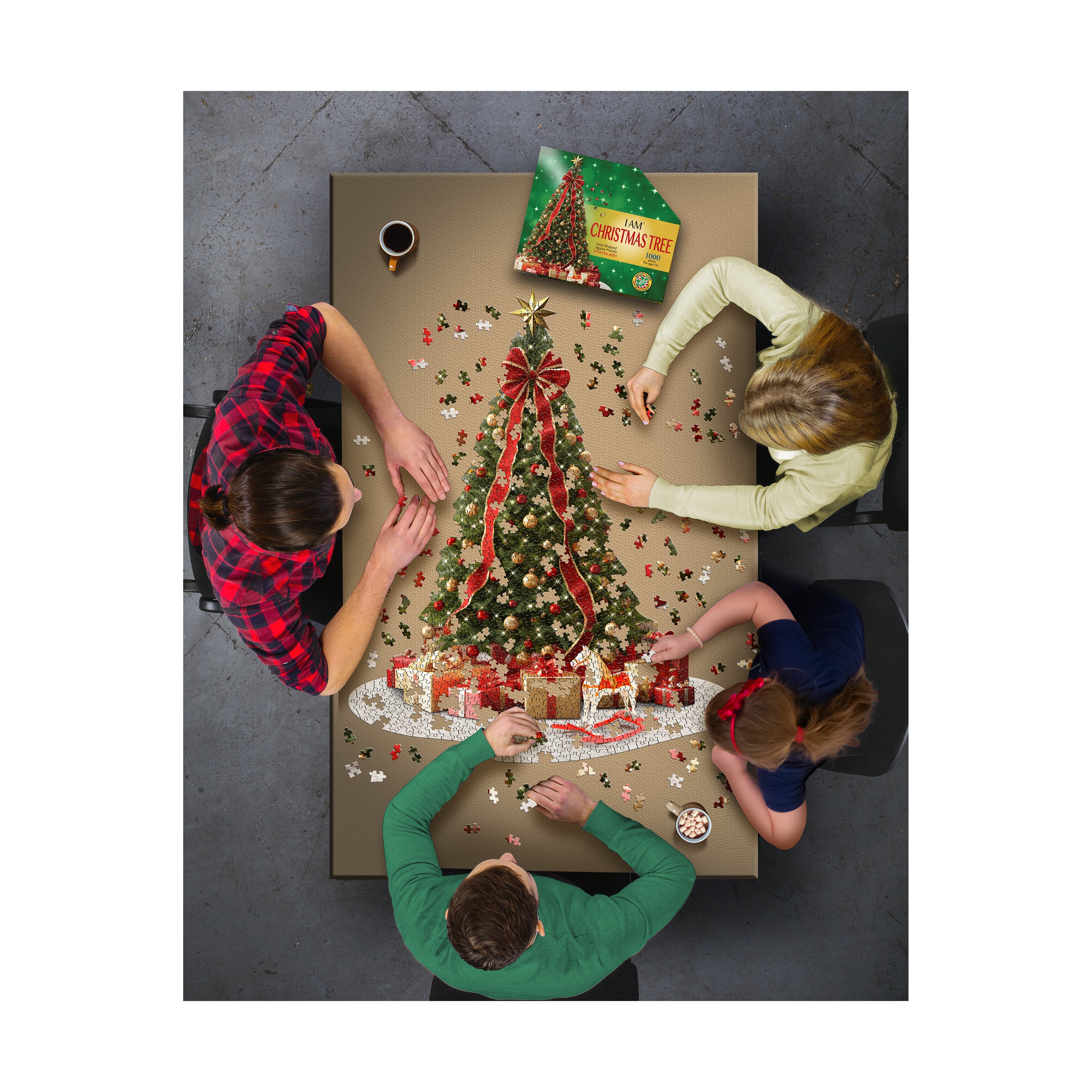 Gather 'Round and celebrate the holidays with the I Am Christmas Tree 1000-piece jigsaw puzzle! Designed for ages 12 and up, this unique tree-shaped jigsaw puzzle challenges enthusiasts with 1000 thick, interlocking pieces featuring a semi-gloss, festive image. Unlike traditional puzzles, it has no square corners or straight edges, offering extra challenge and hours of fun.