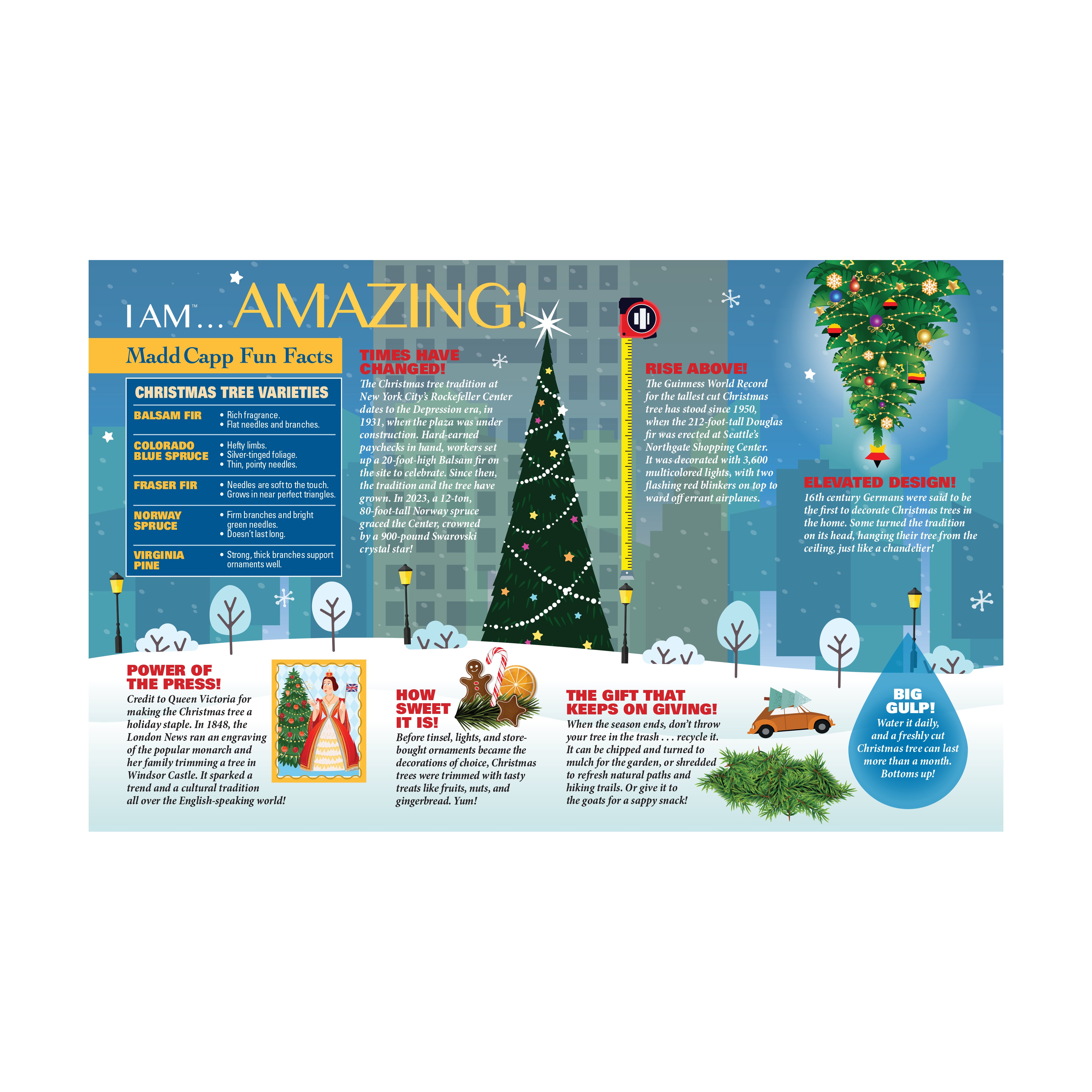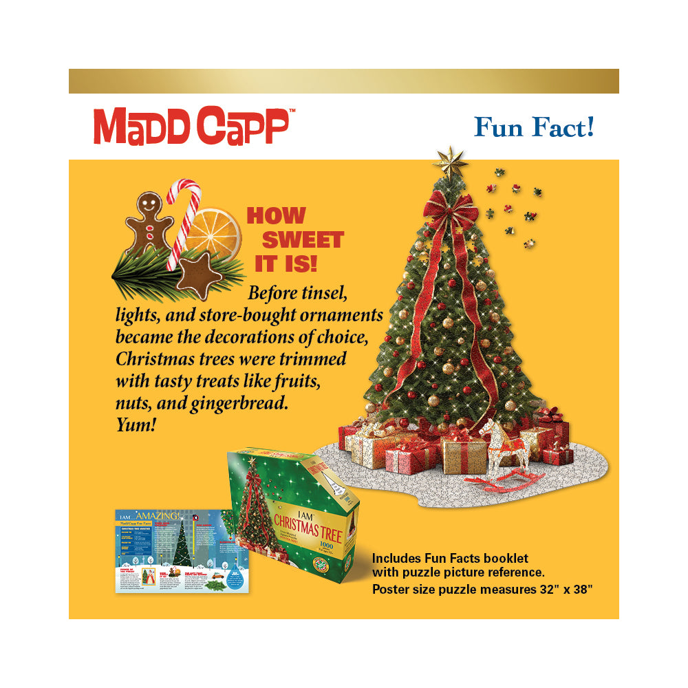 Each puzzle comes with a Madd Capp Fun Facts booklet, full of interesting Christmas history. Did you know that before tinsel, lights, and store-bought ornaments, Christmas trees were trimmed with fruits, nuts, and gingerbread? One side of the booklet folds out into a poster of the puzzle image for reference or display, while the other side is packed with fun, educational facts.
