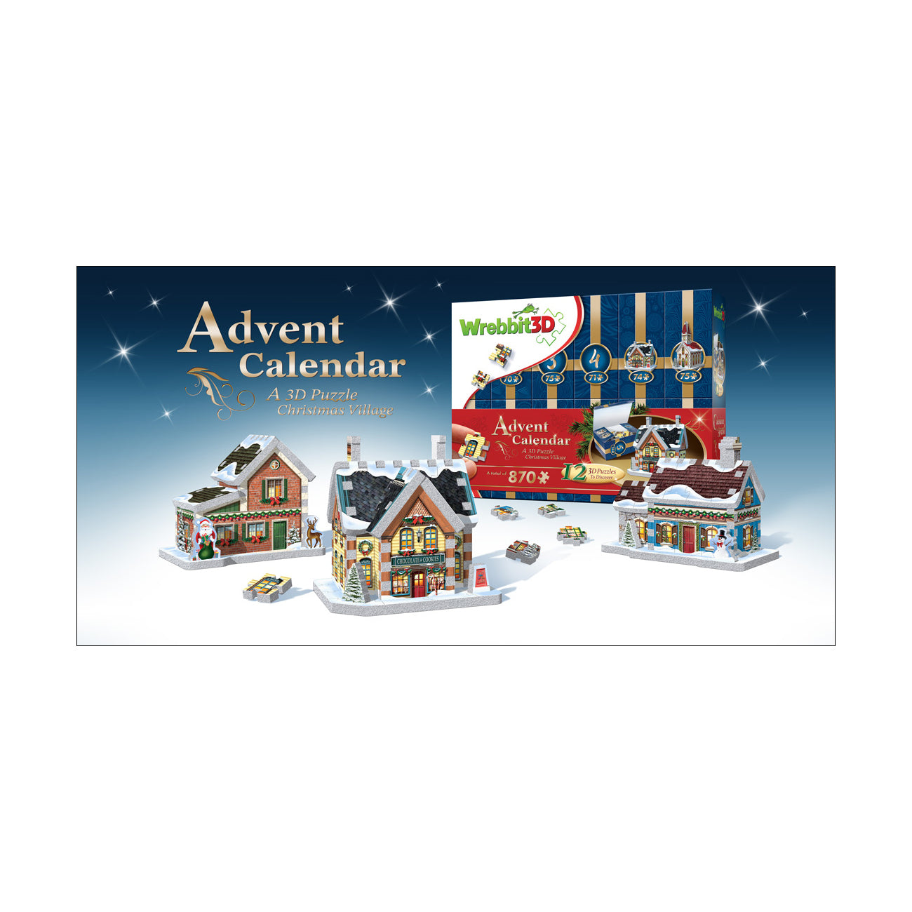 Each day reveals a new mini 3D puzzle (12 in total), offering bite-sized challenges leading up to the Holidays. Complete the set to build a charming Christmas Village, perfect for decorating your home. With 870 high-quality foam-backed pieces, you'll experience the joy and satisfaction of Wrebbit's signature 3D puzzling while bringing a festive scene to life.