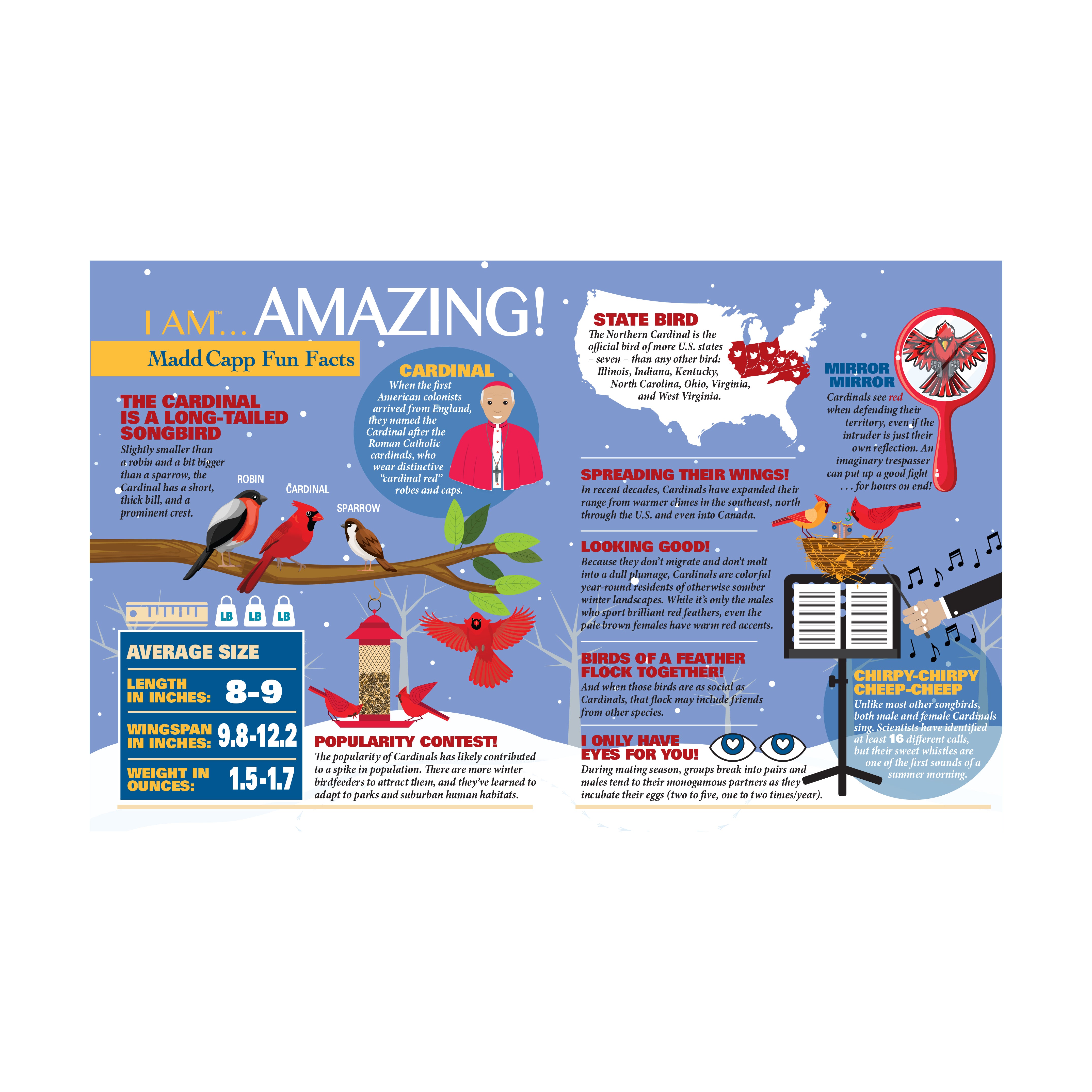 Each set includes more than just a puzzle! Inside the box you'll find a full puzzle image and a Madd Capp Fun Facts booklet. On one side, a fold-out poster can be displayed as decor or used as a helpful guide while puzzling. On the other side, discover amazing bird facts. Did you know that the Northern Cardinal is the official bird of more U.S. states (seven) than any other bird? Once complete, glue and mount your masterpiece to enjoy as wall art.