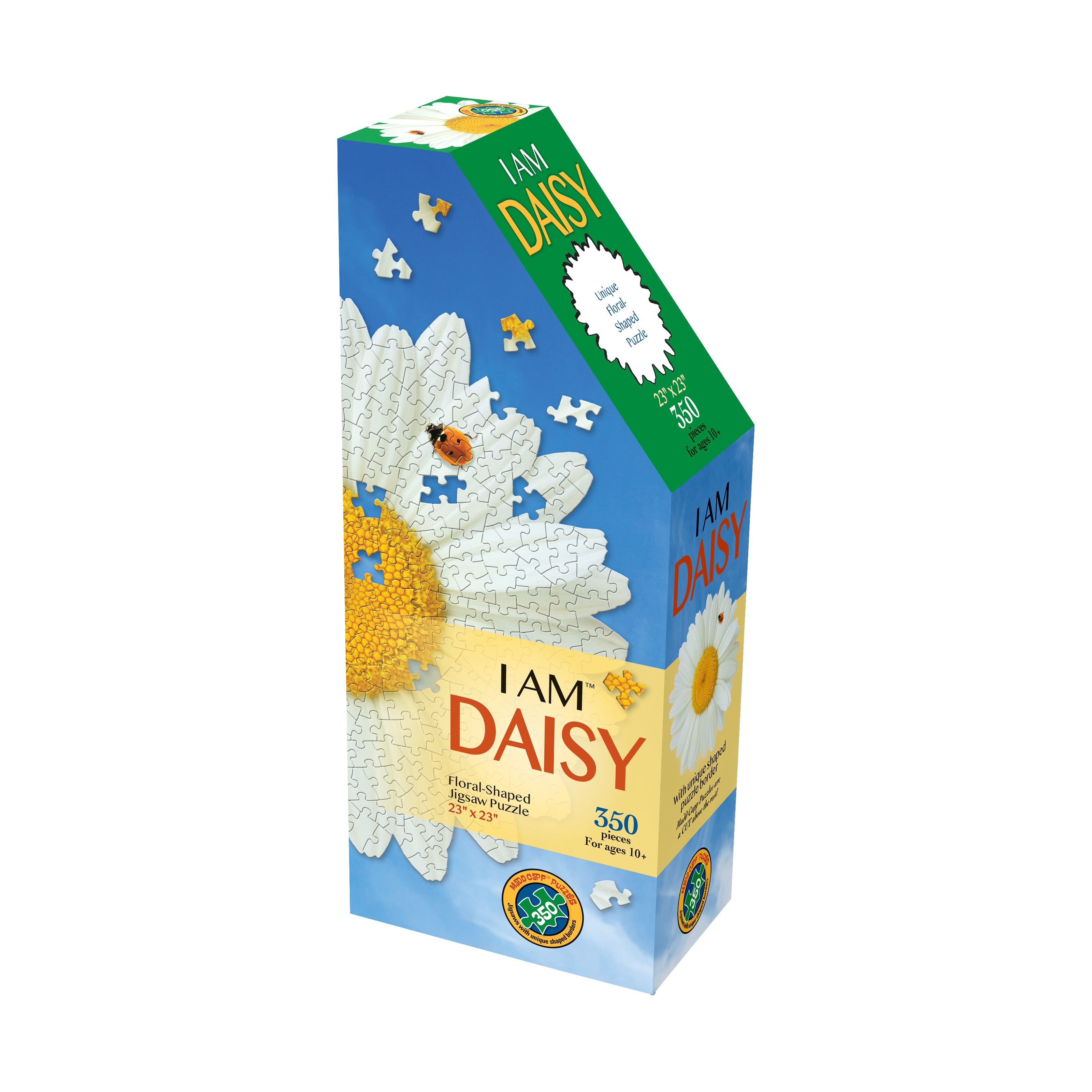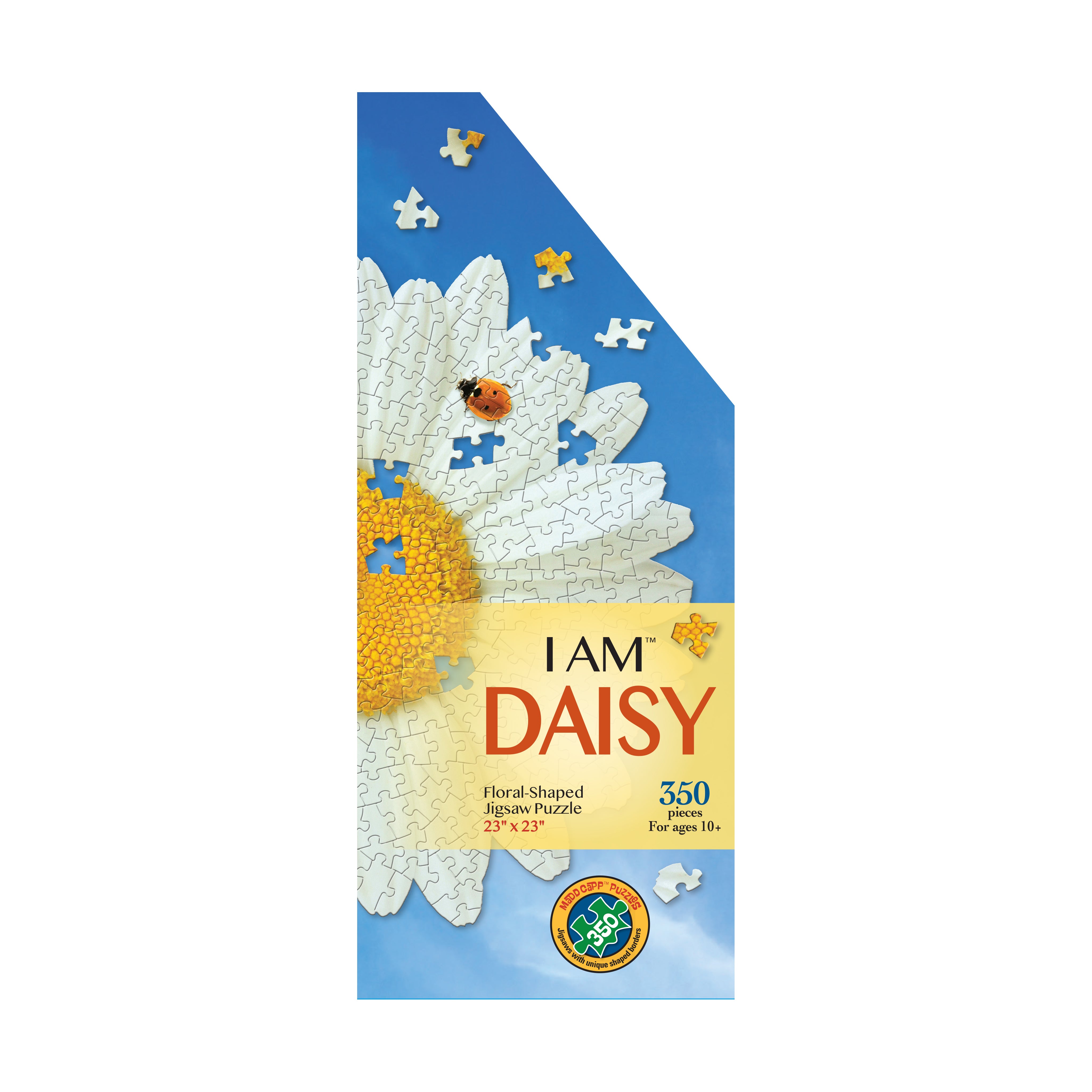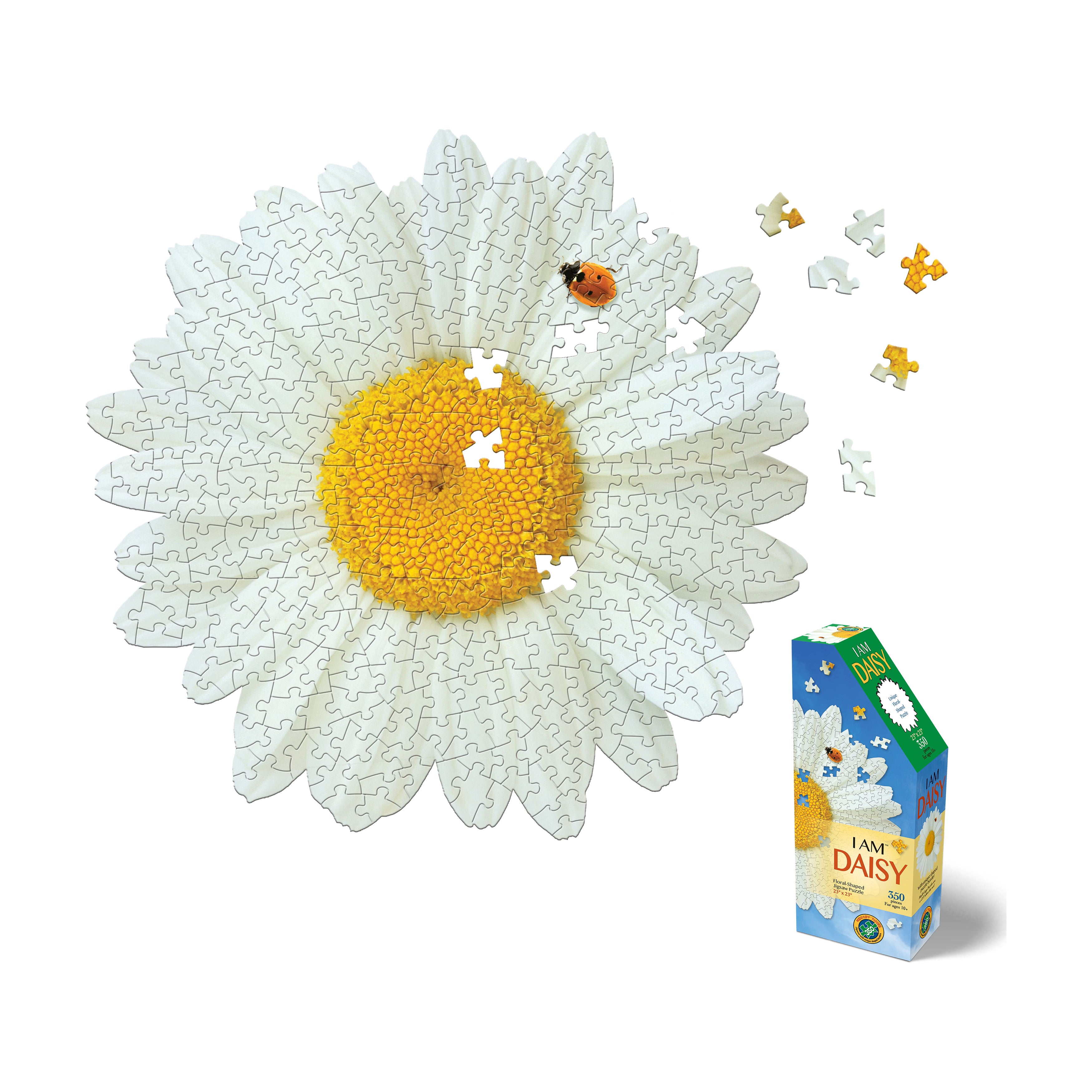 Bring the joy of flower power blooms to your table with the I Am Daisy 350-piece Puzzle! Designed for ages 10 and up, this floral-shaped jigsaw puzzle features 350 semi-gloss, photo-realistic pieces forming a vibrant daisy image. With no square corners or straight edges, it provides a fun, engaging challenge for puzzle enthusiasts.