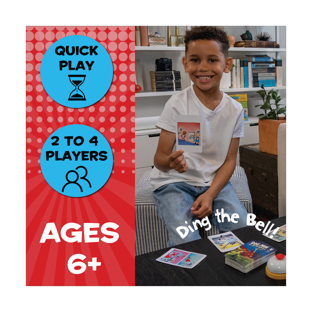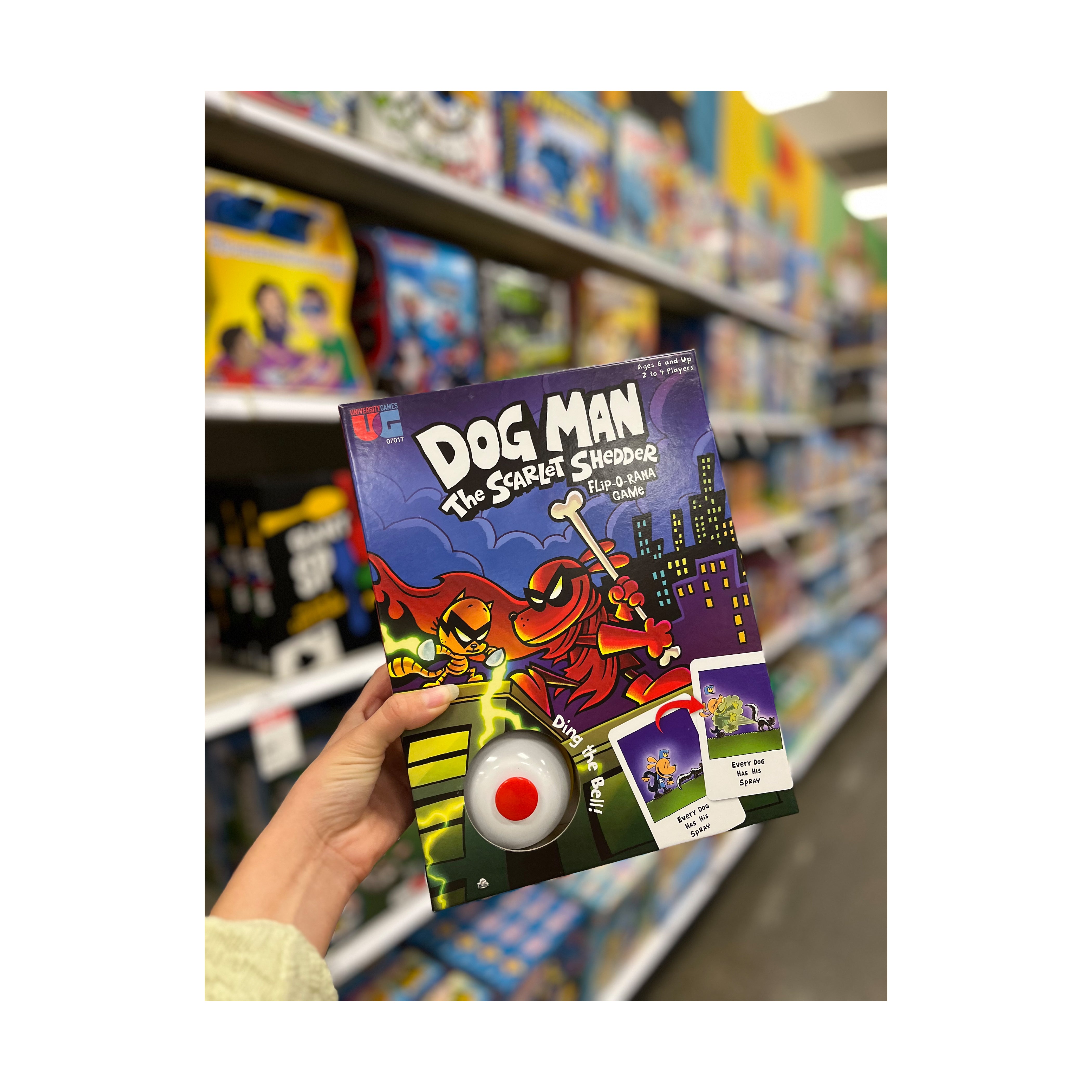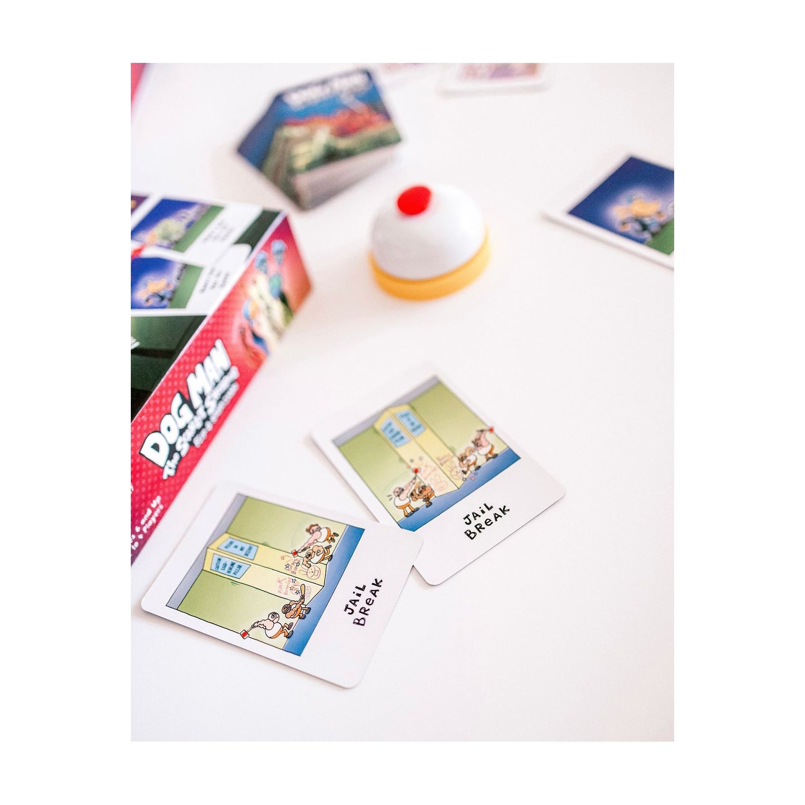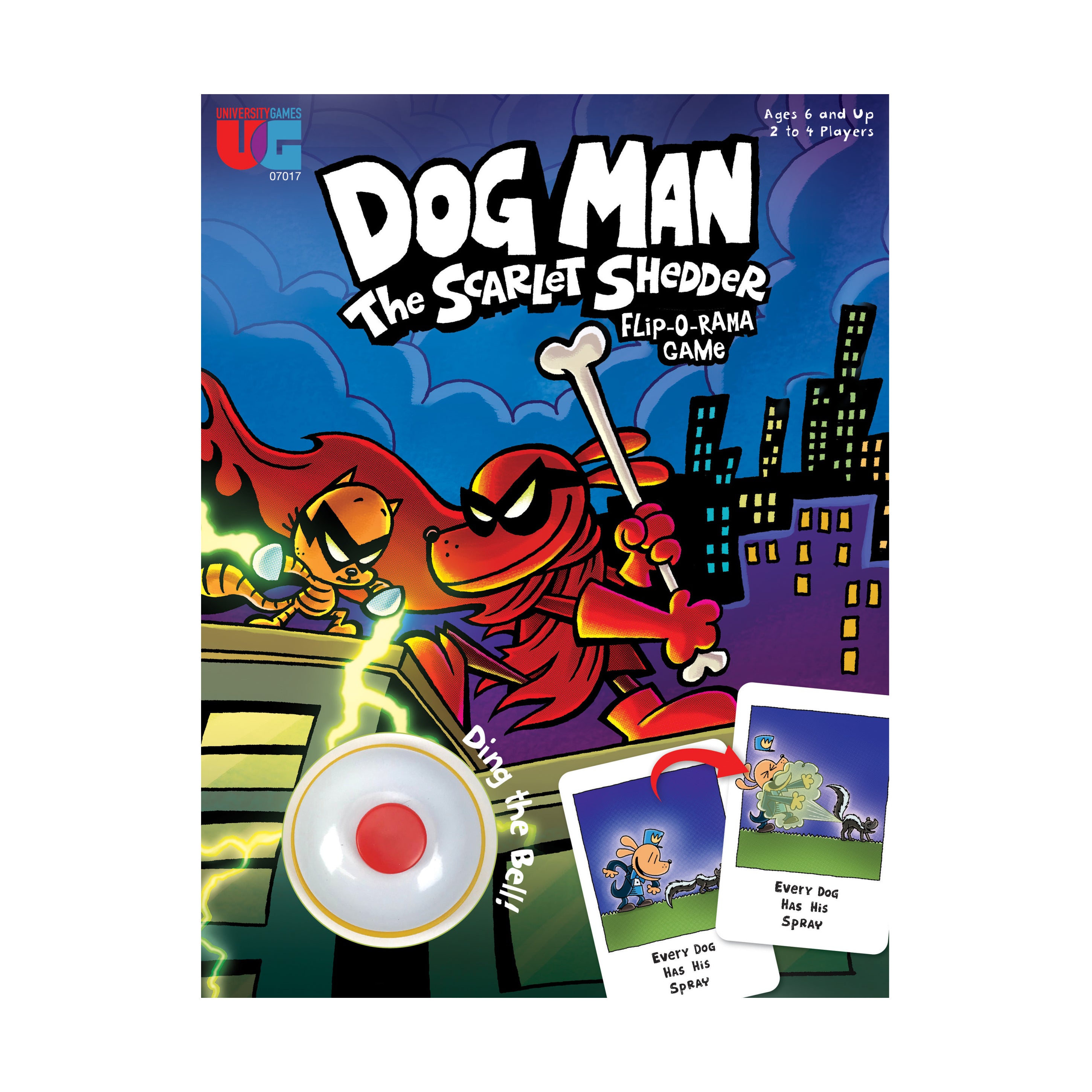Everyone loves the Flip-O-Ramas from Dav Pilkey's best-selling Dog Man books, and now they're a game! In Dog Man - The Scarlet Shedder Flip-O-Rama Game, players stack Flip-O-Rama cards in the middle of the play area and take turns flipping them over. The first player to spot a Flip-O-Rama match dings the Bell to claim the cards. The player who collects the most Flip-O-Rama cards wins!