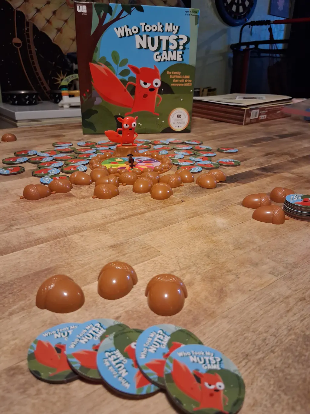I received the "Who Took My NUTS? " game a while back ago now, I applied to receive the game for free hoping to play with my Family as it sounded really fun, but, SADLY/UNFORTUNATELY, We never actually played it and still haven't! It's just been sitting around Our Home this ENTIRE TIME!!........(I'd still like to try it eventually though...........)🙁😡😊