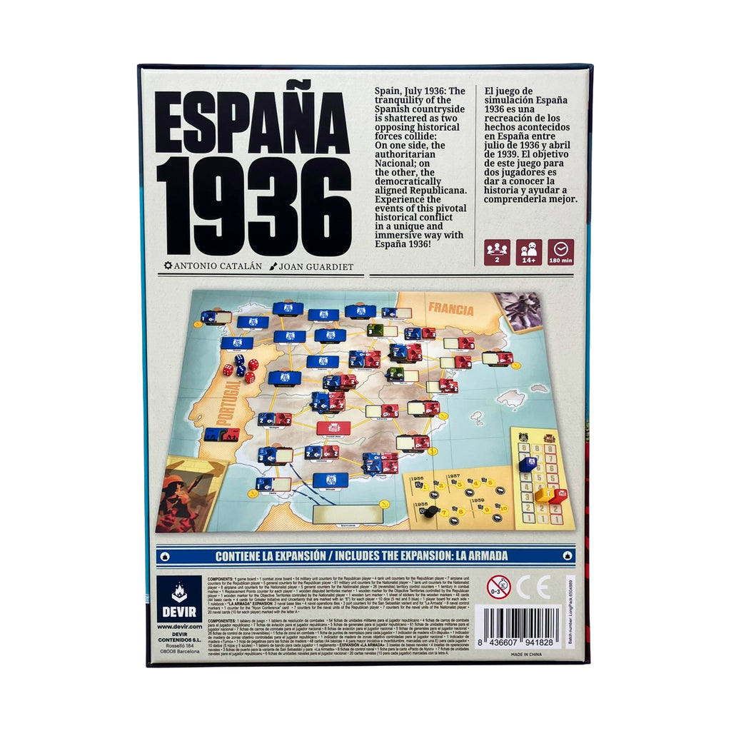 Espana 1936 is one of BoardGameGeek's top 300 war games and a nominee for multiple awards. This immersive strategy game recreates the dramatic events of the Spanish Civil War, spanning from July 1936 to April 1939 - a clash between two visions for Spain's future.