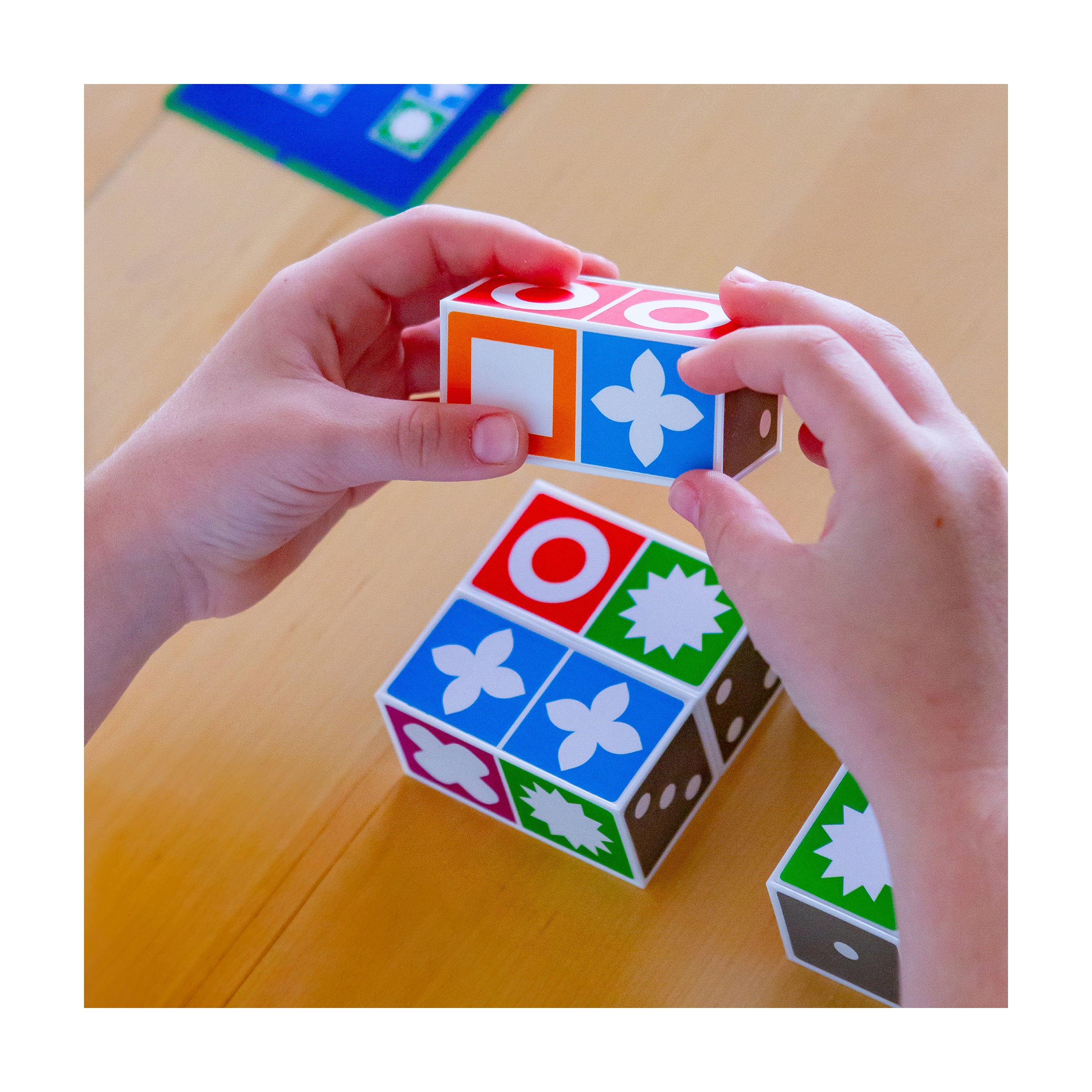 Contents include: 20 Playing Blocks, 60 Pattern Cards, Game Rules