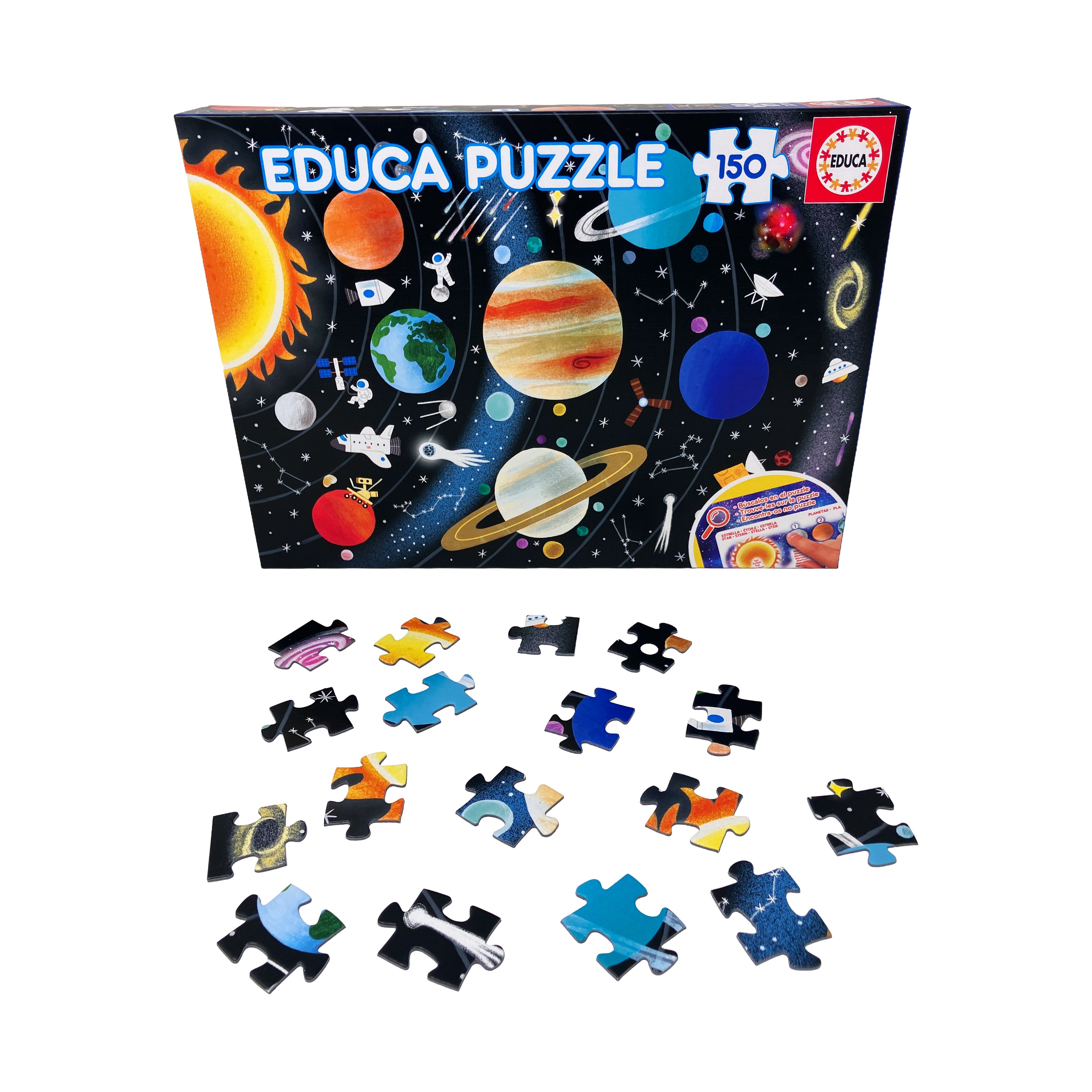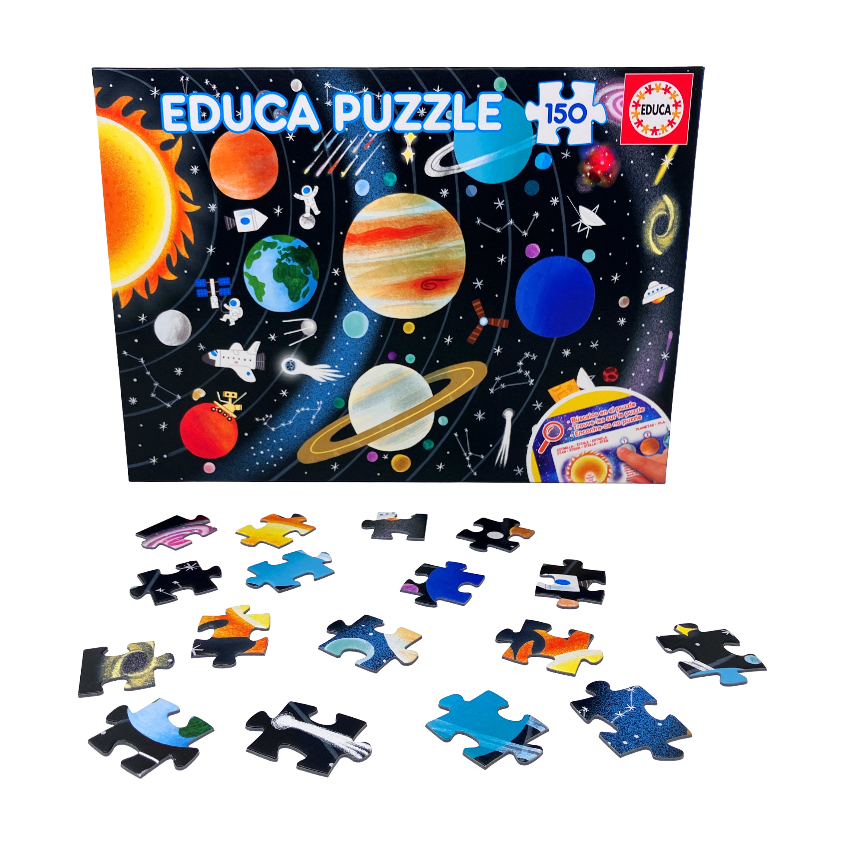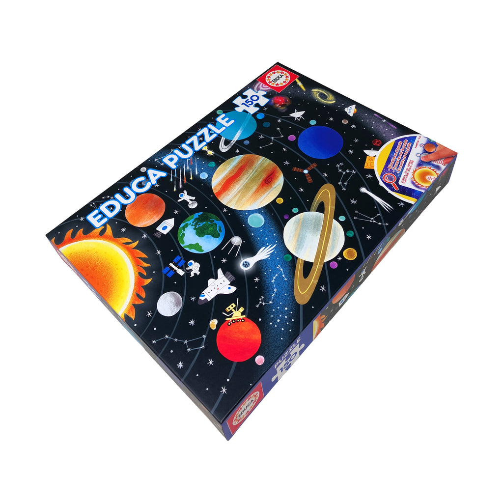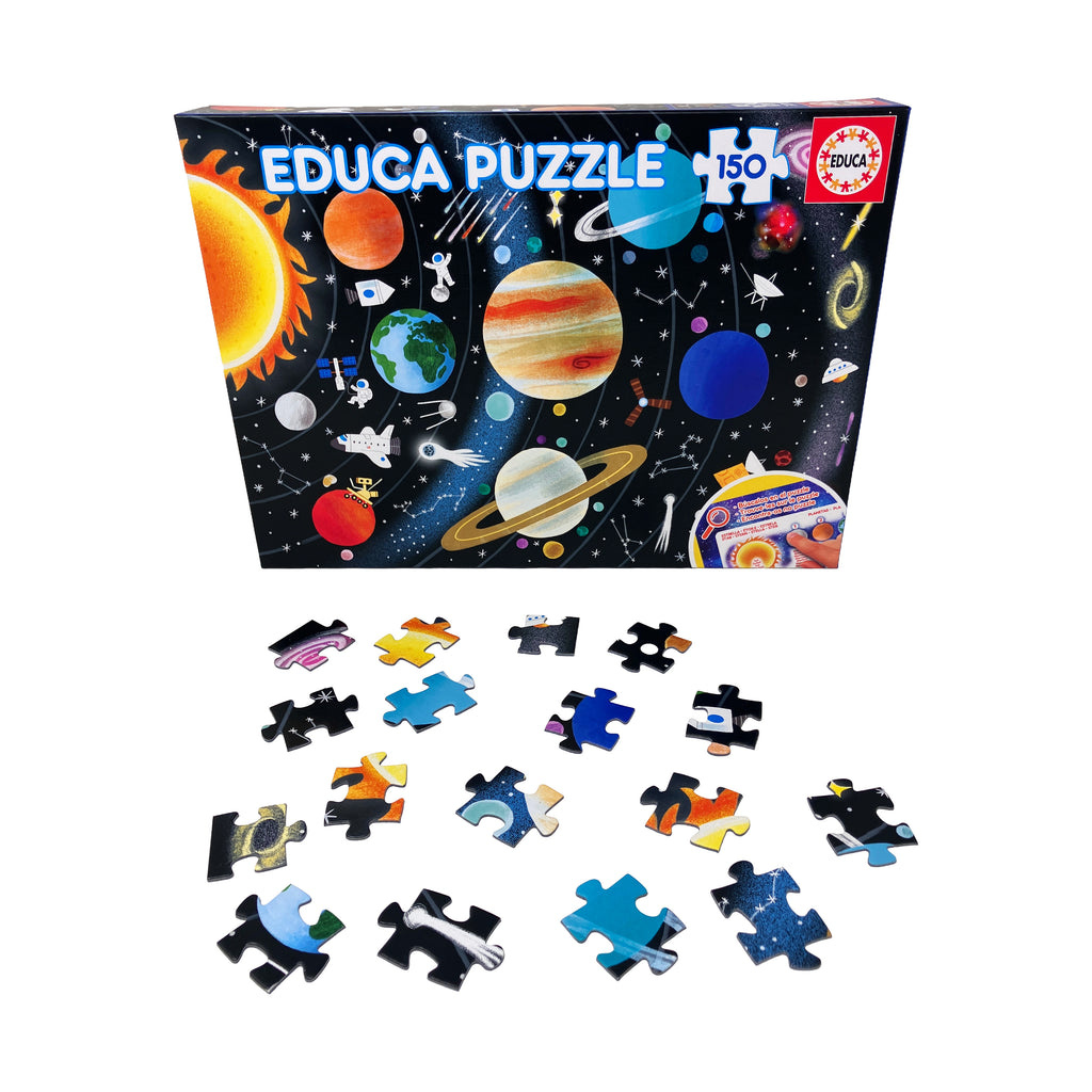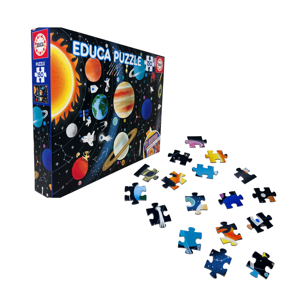 Blast off into learning with the Educa Solar System 150-piece jigsaw puzzle! Designed for children and beginner puzzlers, this vibrant and educational puzzle brings the wonders of outer space to life. Featuring a detailed and colorful illustration of the solar system, it showcases all the planets in their correct order, along with the sun, moons, and other celestial details. As kids assemble the puzzle, they develop problem-solving, hand-eye coordination, spatial reasoning, and fine motor skills in a fun and engaging way.