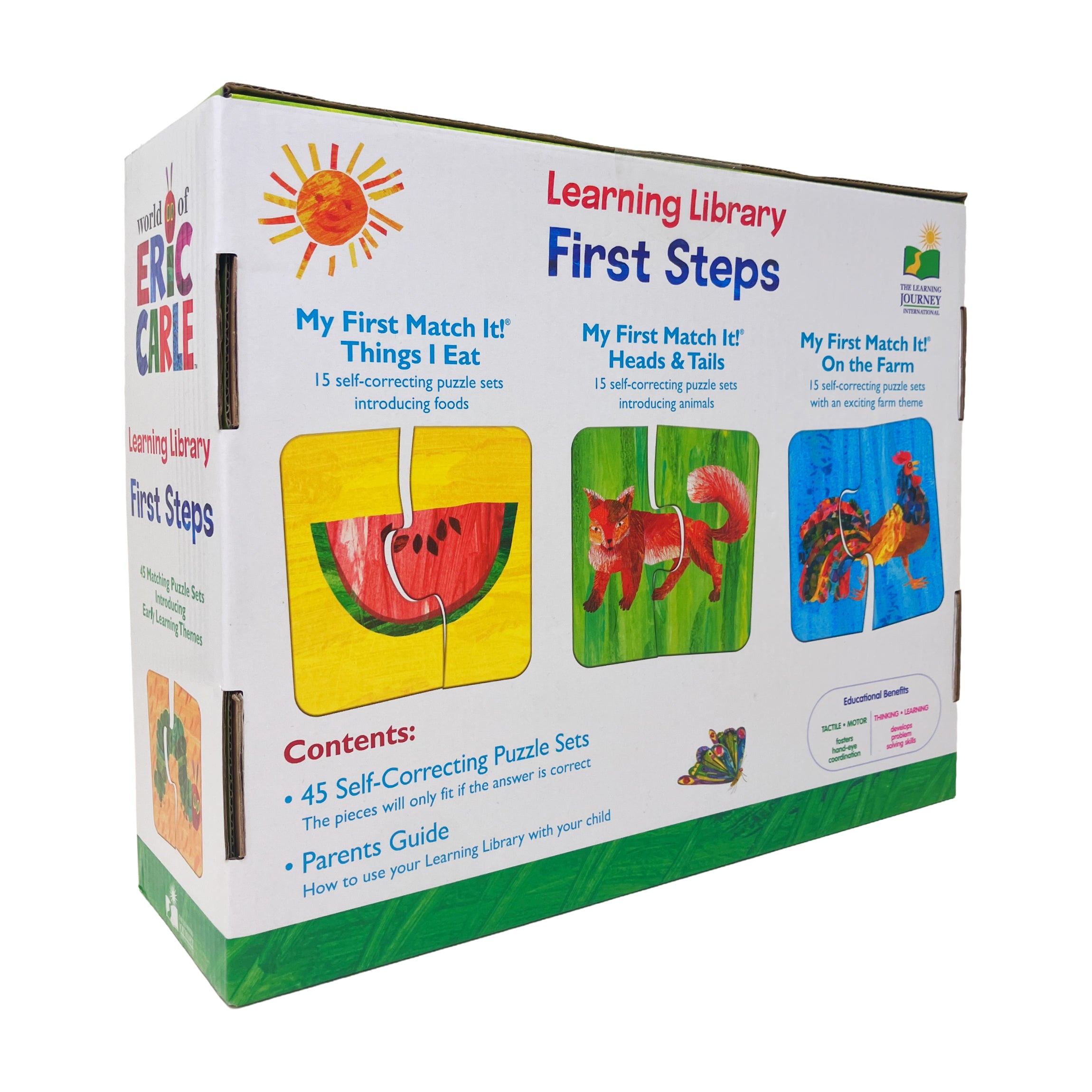 Start your child's educational journey with Learning Library First Steps featuring The World of Eric Carle! This fun and engaging set offers 3 games in 1: Things I Eat, Heads & Tails, and On the Farm. All games are designed to introduce little learners to important early concepts like food, animals, and farm life. With 45 sturdy matching pairs, children will build vocabulary, strengthen memory, and develop critical thinking skills through hands-on play. Perfect for preparing preschoolers for school, this set supports independent learning as well as interactive playtime with parents or teachers.