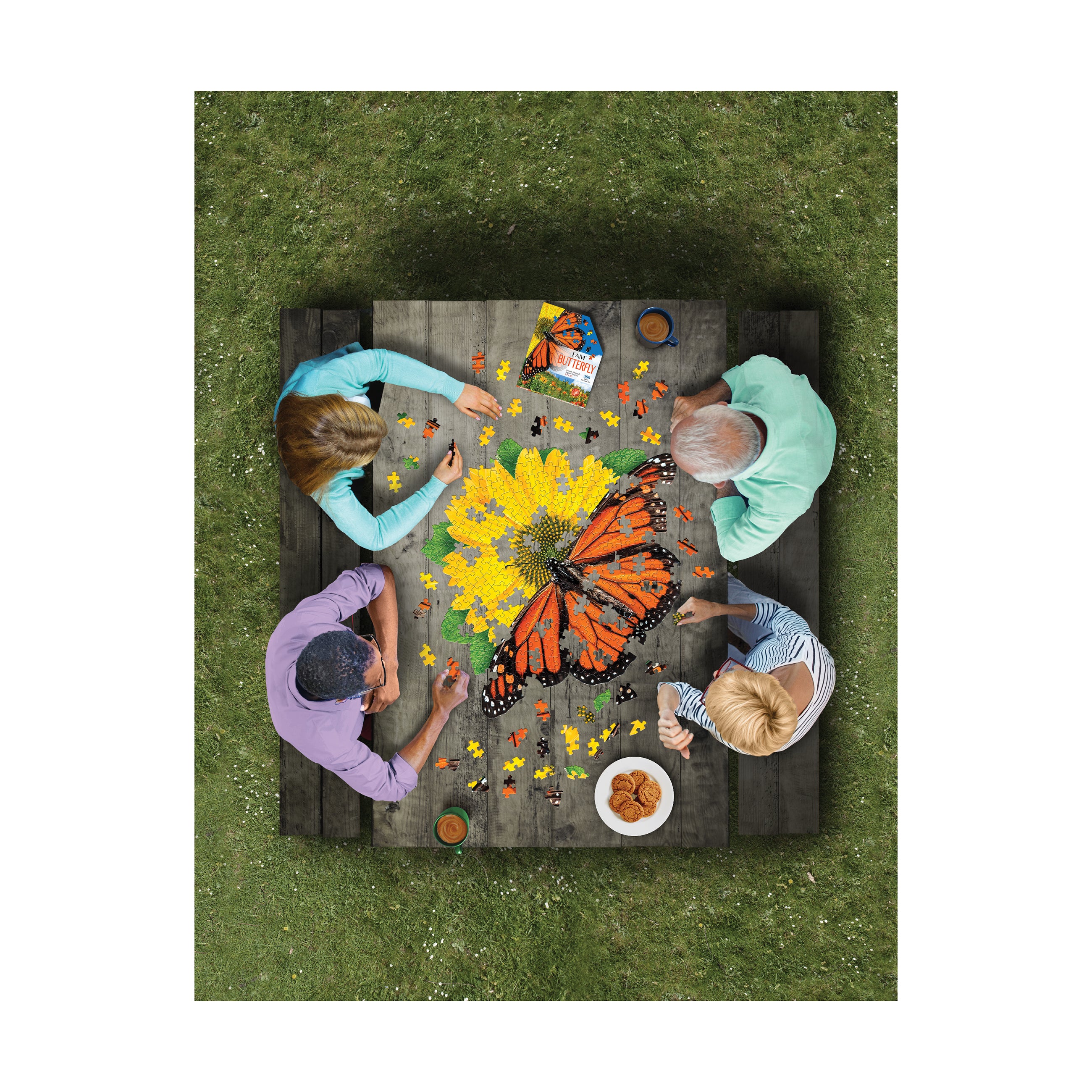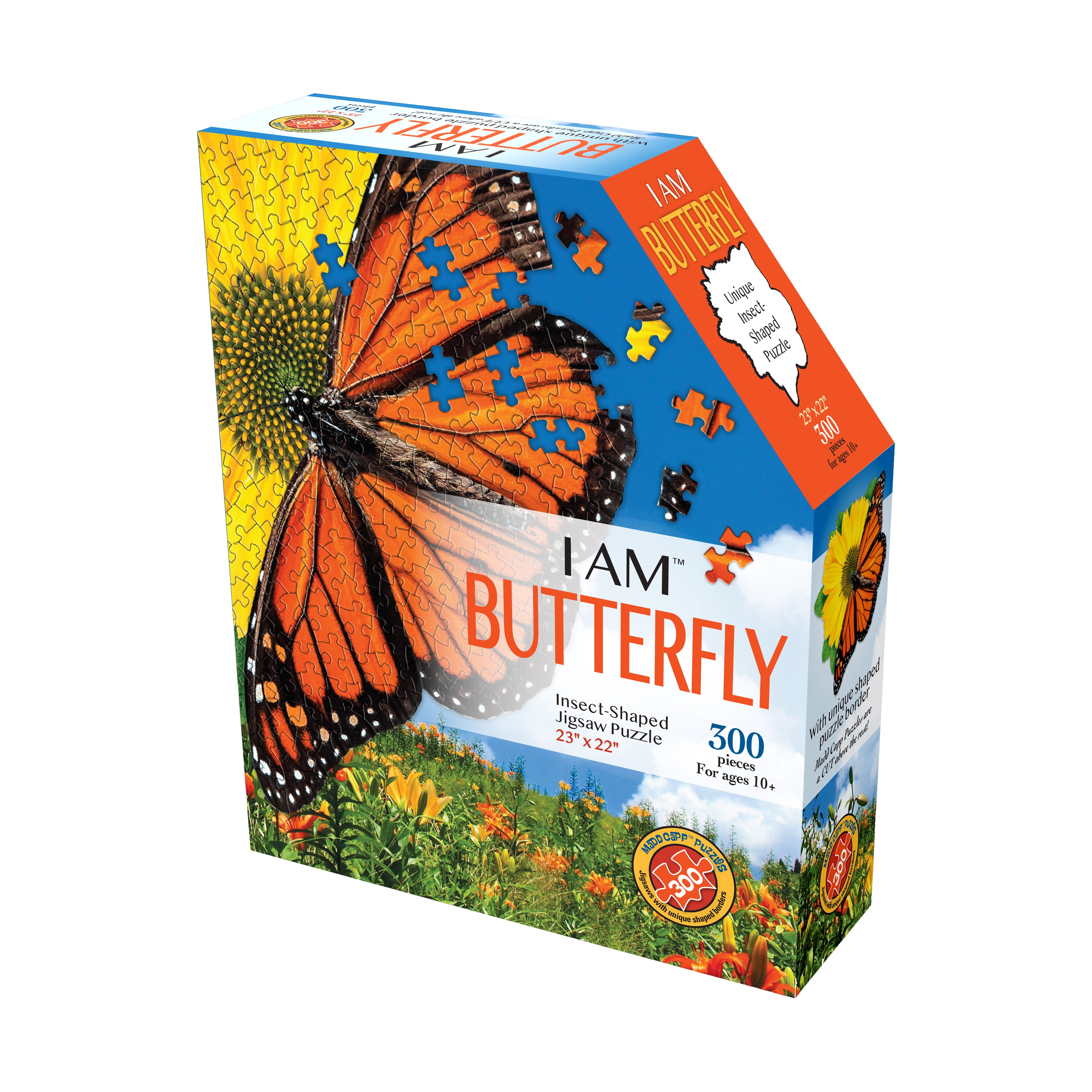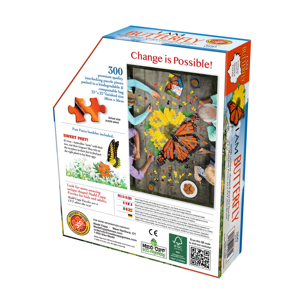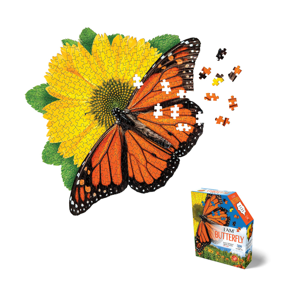 Relax and unwind with this 300-piece butterfly-shaped jigsaw puzzle, designed to challenge and inspire you, your family, and friends. Featuring a bright sunflower design and a unique butterfly silhouette, this puzzle offers a fun twist on traditional jigsaws and is perfect for puzzlers ages 10 and up.