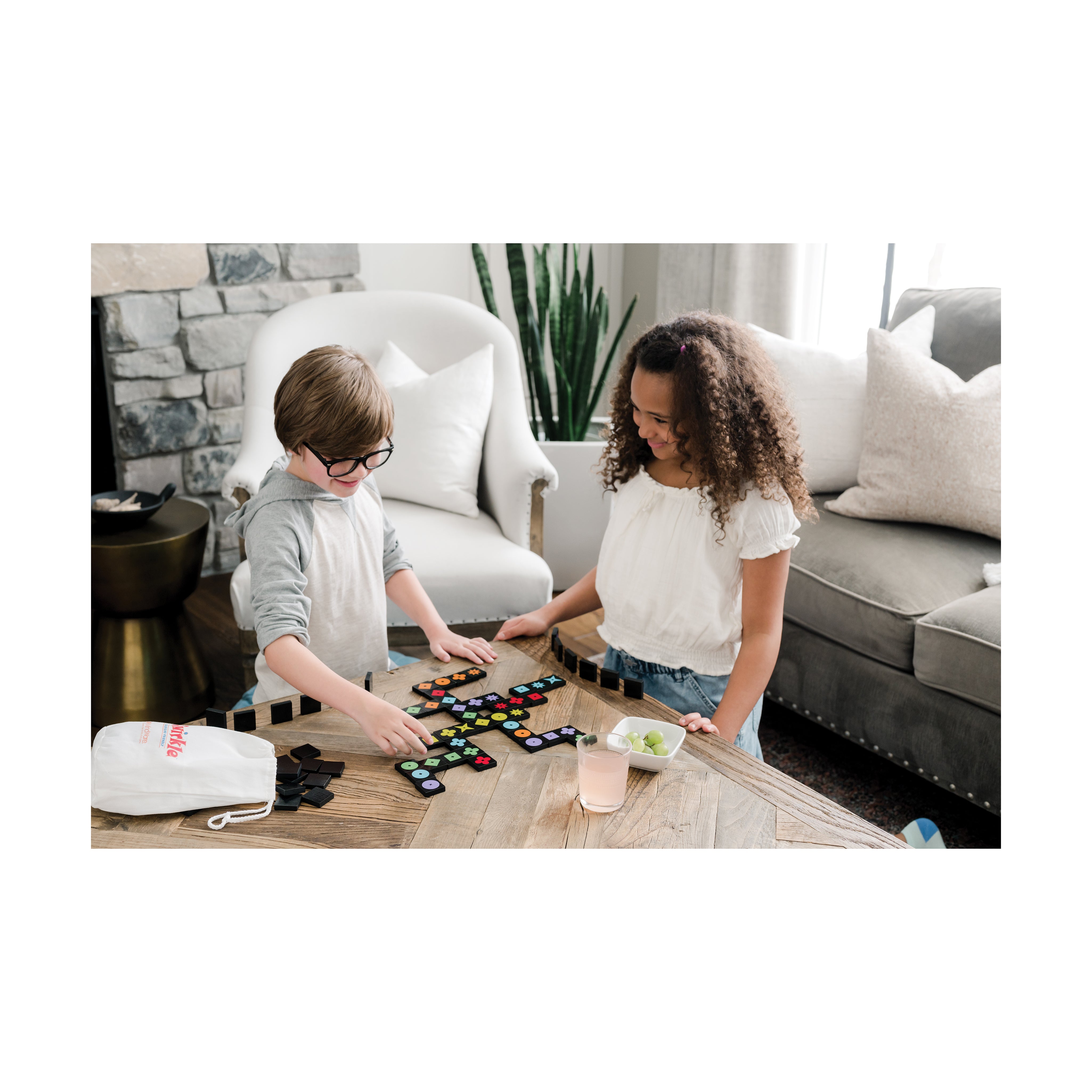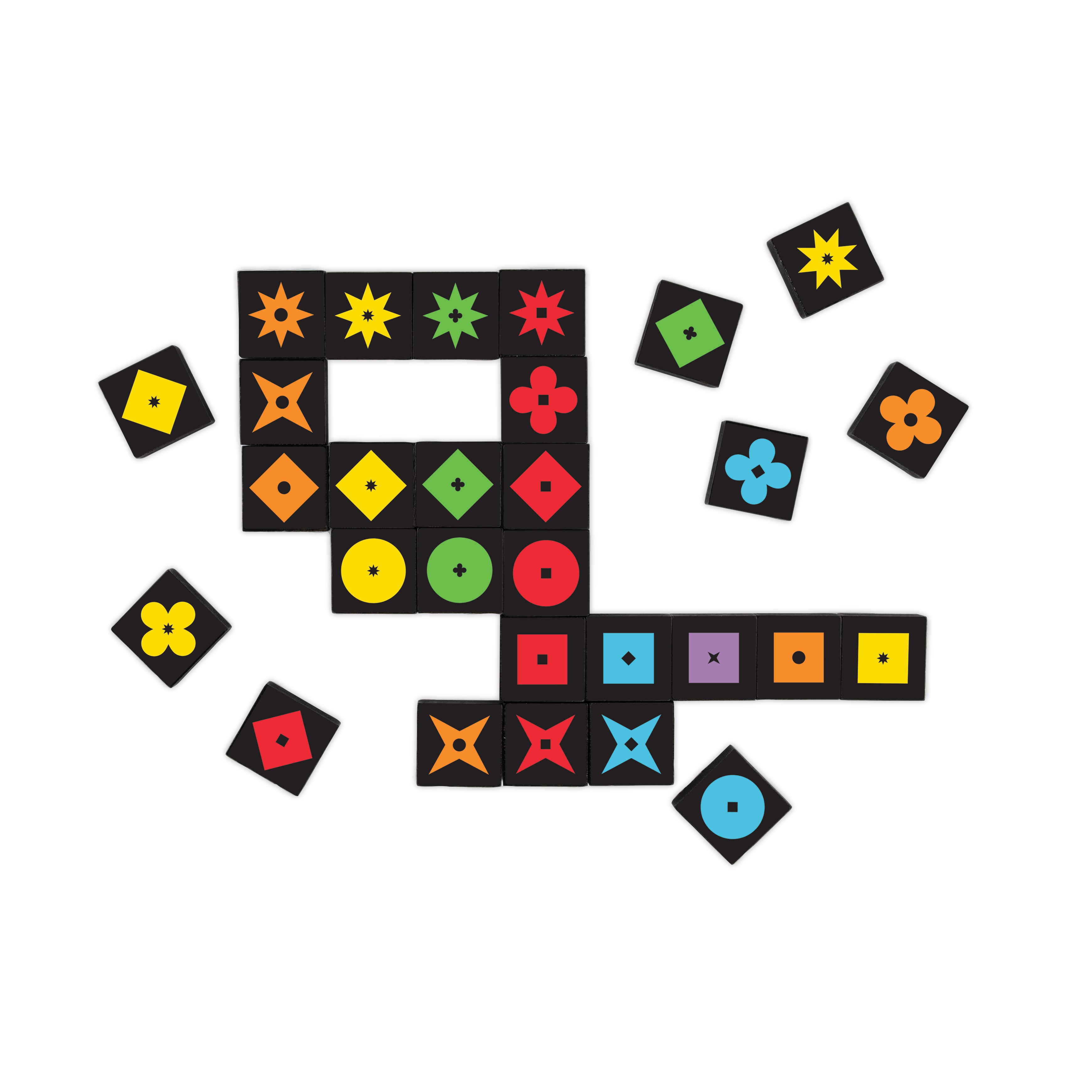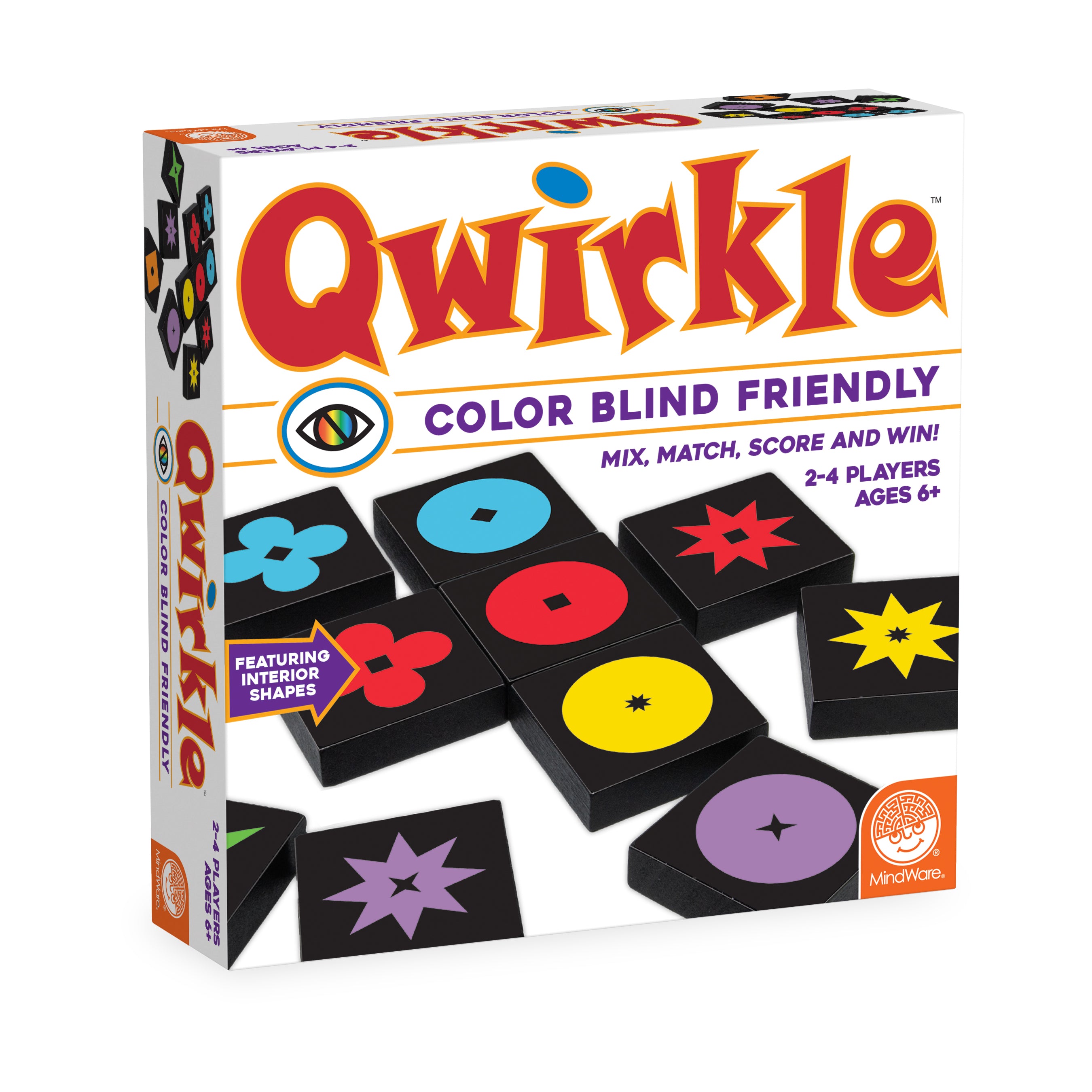 The beloved classic strategy tile game is now color-blind friendly! Simple to learn yet strategic and exciting to play, Qwirkle is a fun family game enjoyed by kids and adults alike. This color-blind friendly edition features tiles with interior shapes that indicate each tile's color, along with an adjusted color scheme that provides enhanced contrast. Players score points by creating lines of tiles that have all the same inner shape/color or all the same outer shape. Create a line of six to score a Qwirkle!