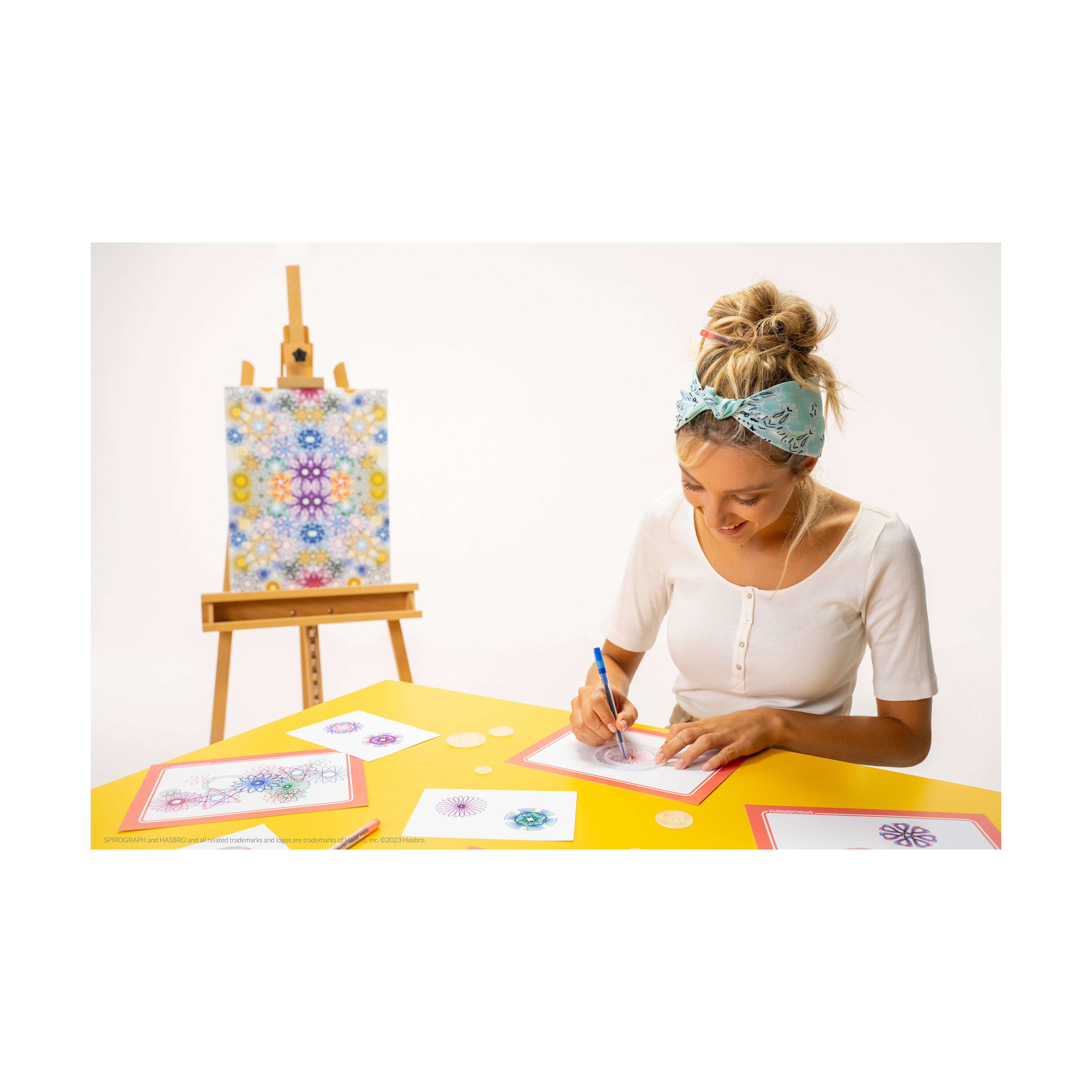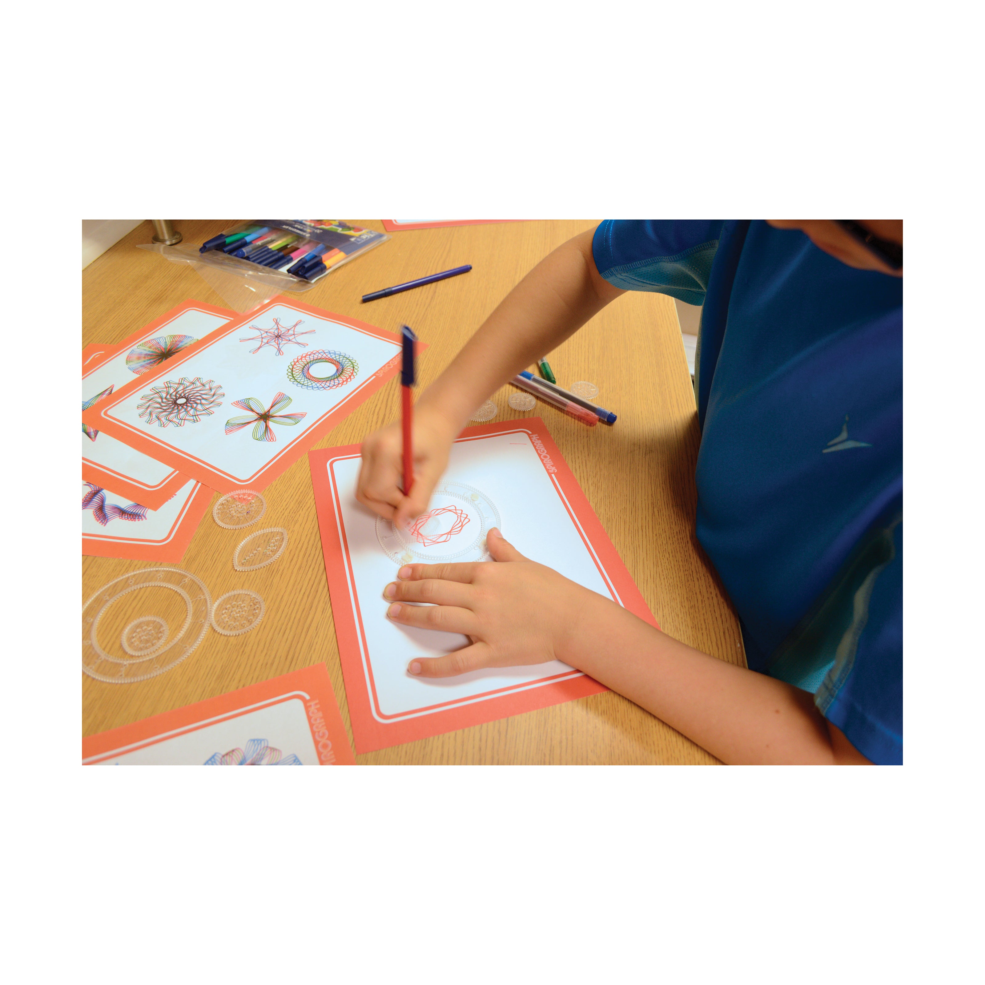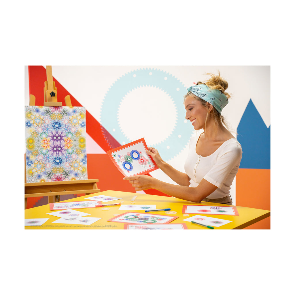 Spirograph is the classic way to make countless amazing designs! This commemorative edition Spirograph Retro Deluxe Set is a reproduction of the original, just like you remember, featuring throwback packaging and retro graphics! With all the iconic wheels and rings of the original, the precision engineered Spirograph gears work with the three design pens included, as well as with most standard pens, markers, and pencils.