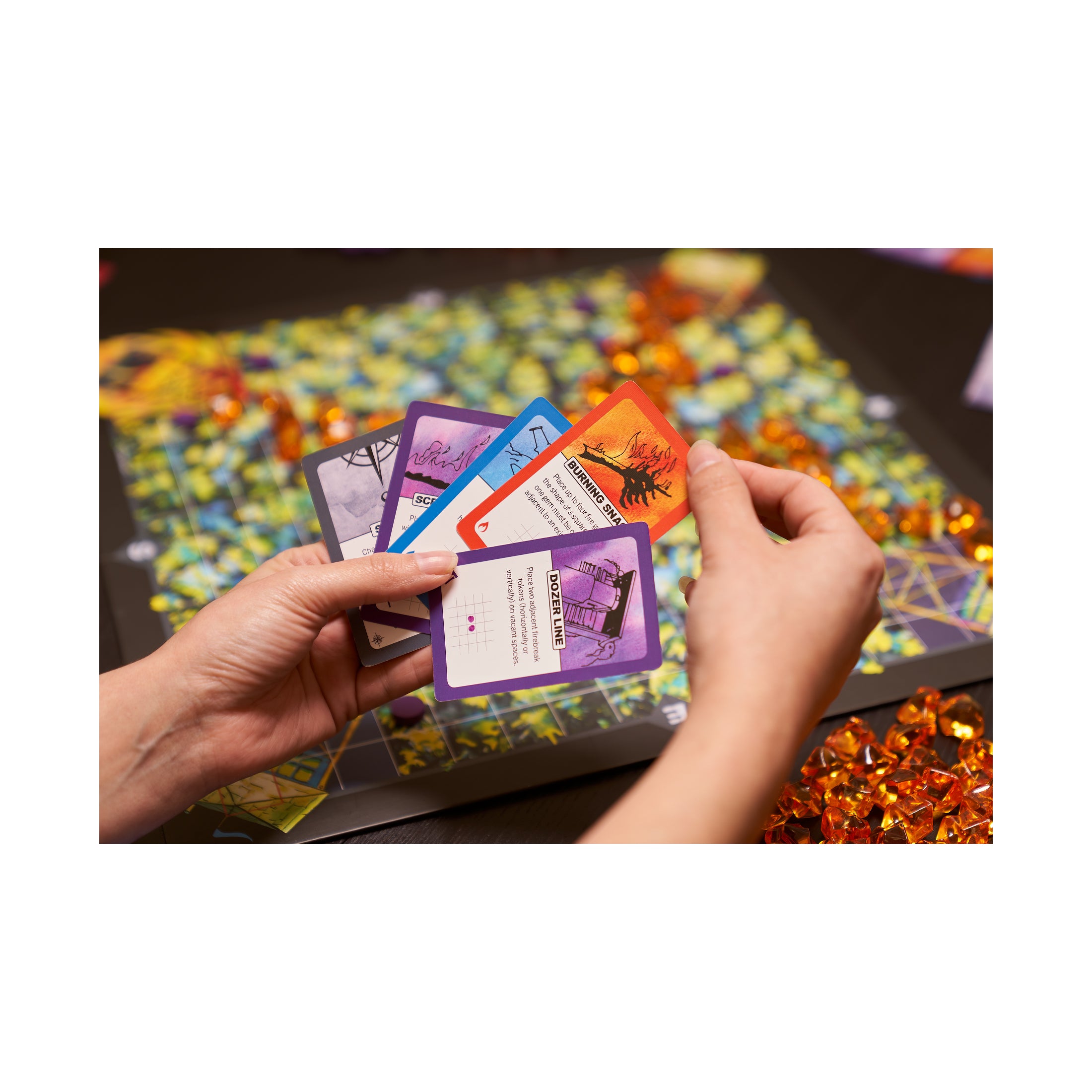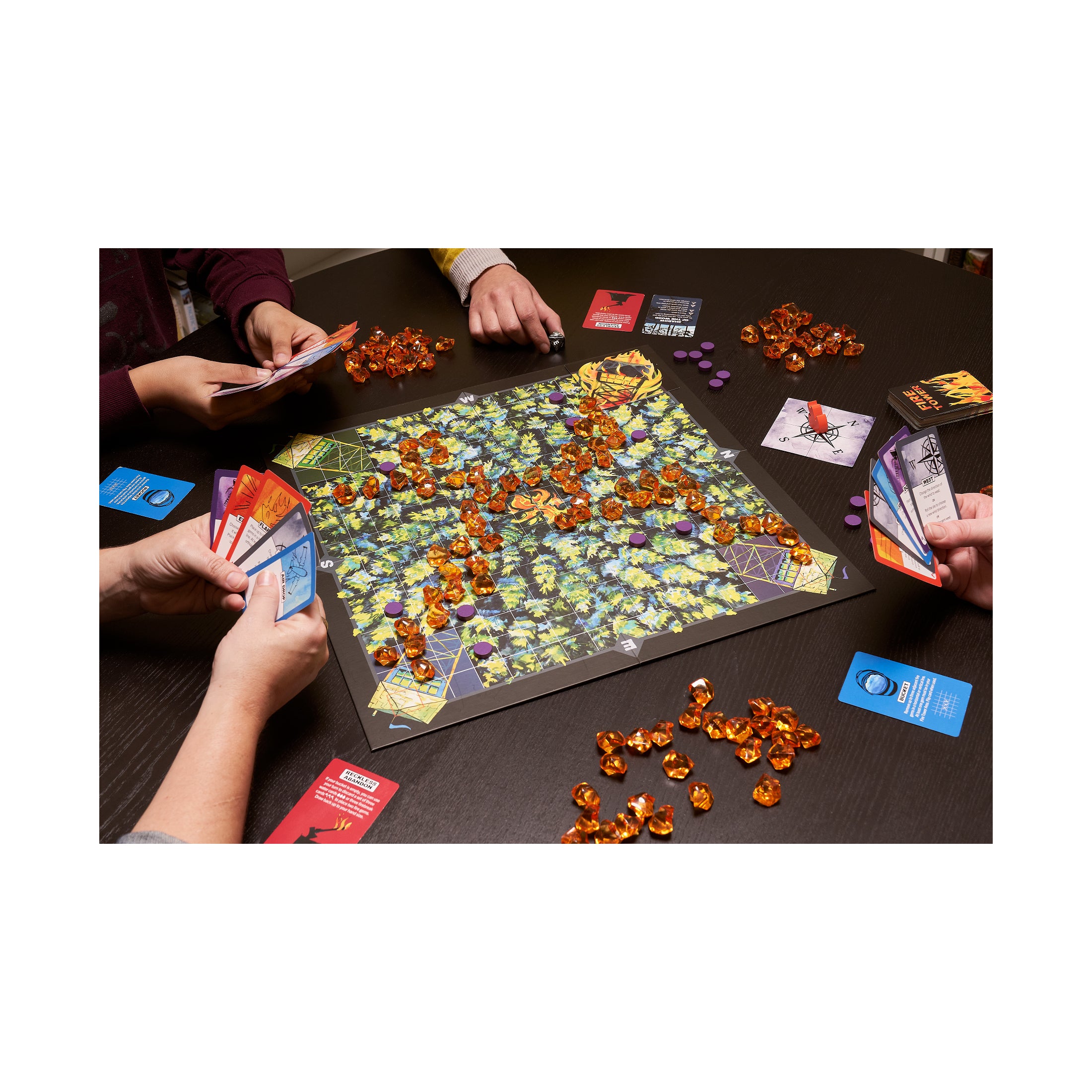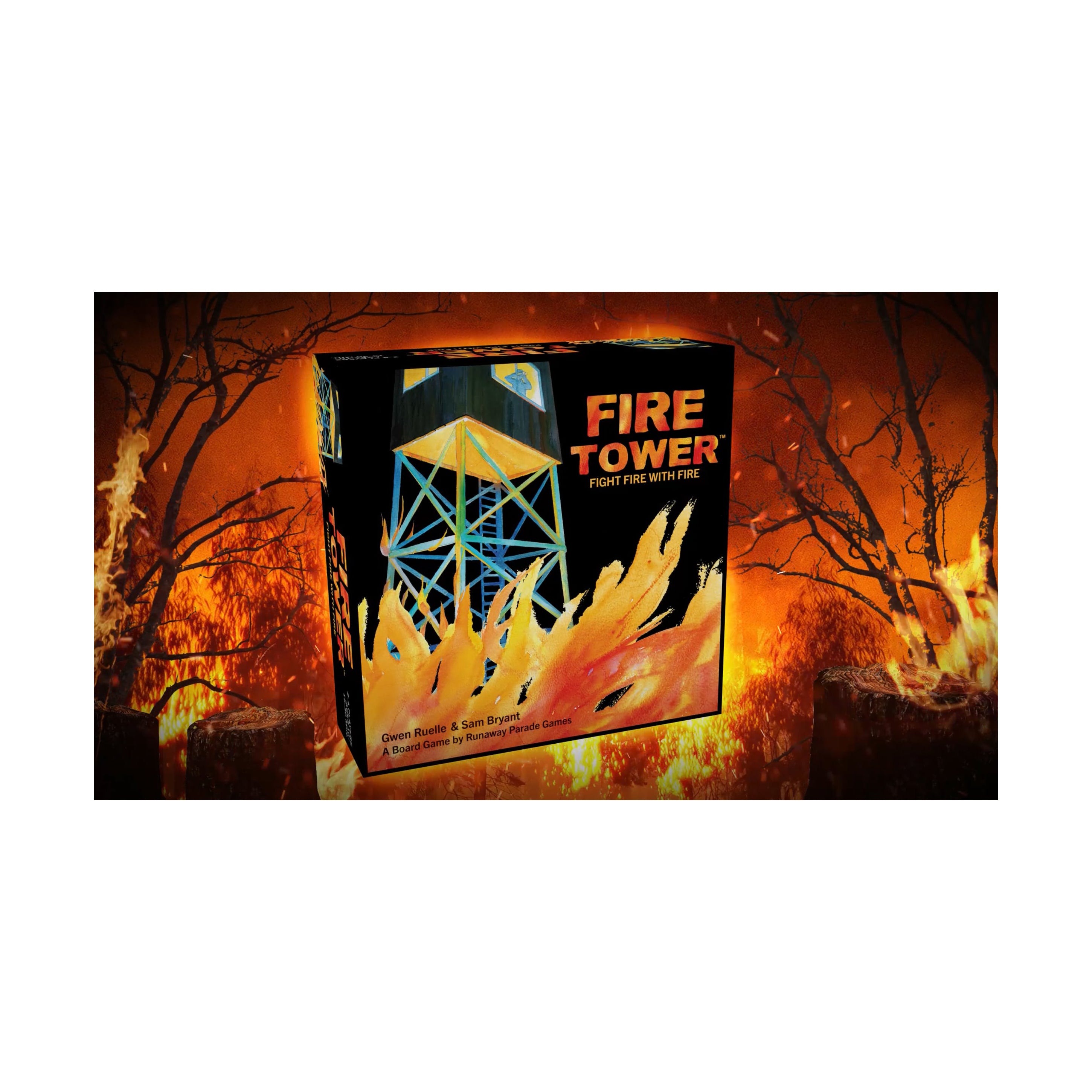 Fight fire with fire in this fast-paced, fiercely competitive strategy game of pattern building and hand management. Smoke rises on the horizon. Protect your fire tower from a rapidly spreading forest fire while setting your opponents' towers ablaze. Dispatch smokejumpers and fire engines to combat the blaze and construct firebreaks to fortify your tower. But there is a twist! In Fire Tower, you also take on the role of nature. Harness the power of the wind and the flames to push the blaze towards your opponents and take down their towers.