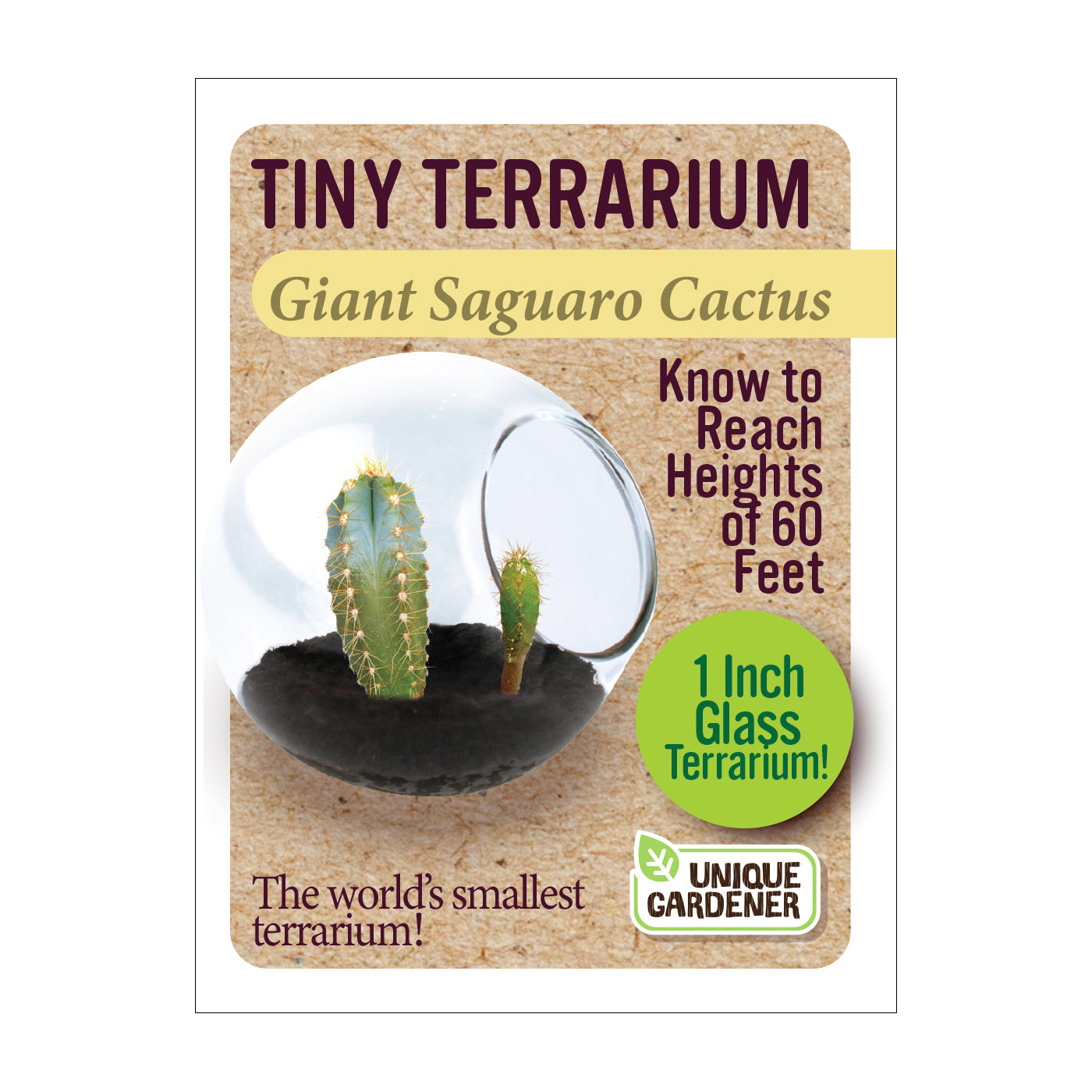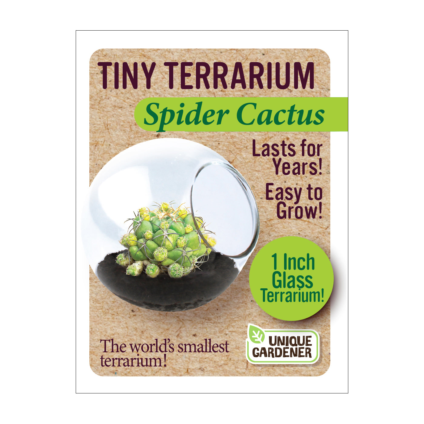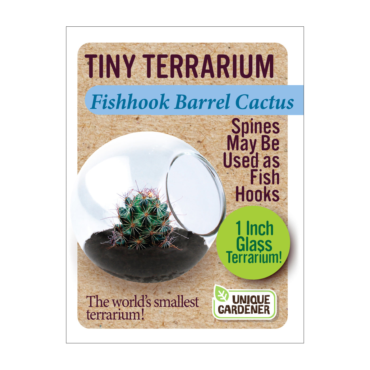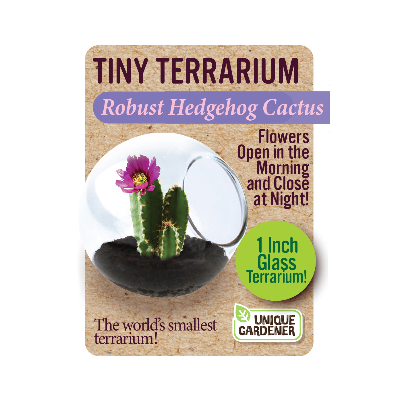 Each high-quality globe is handmade. The cacti will naturally conform to the container and stay small while growing in it. However, they can grow to full size if they are transplanted into progressively larger containers. With proper care, these miniature cactus terrariums become tiny, self-contained ecosystems designed to flourish for years. Cactus varieties include Fishhook Barrel Cactus, Golden Barrel Cactus, Giant Saguaro Cactus, Pincushion Cactus, Robust Hedgehog Cactus, and Spider Cactus.